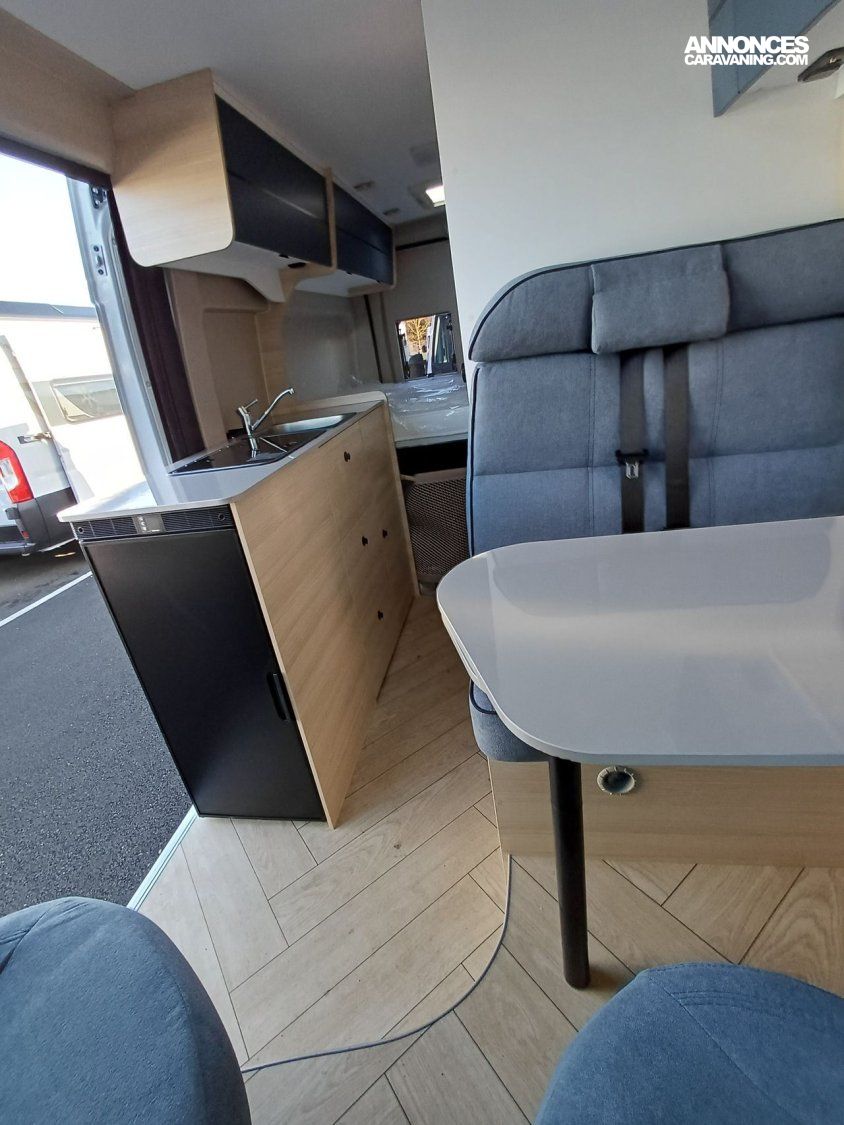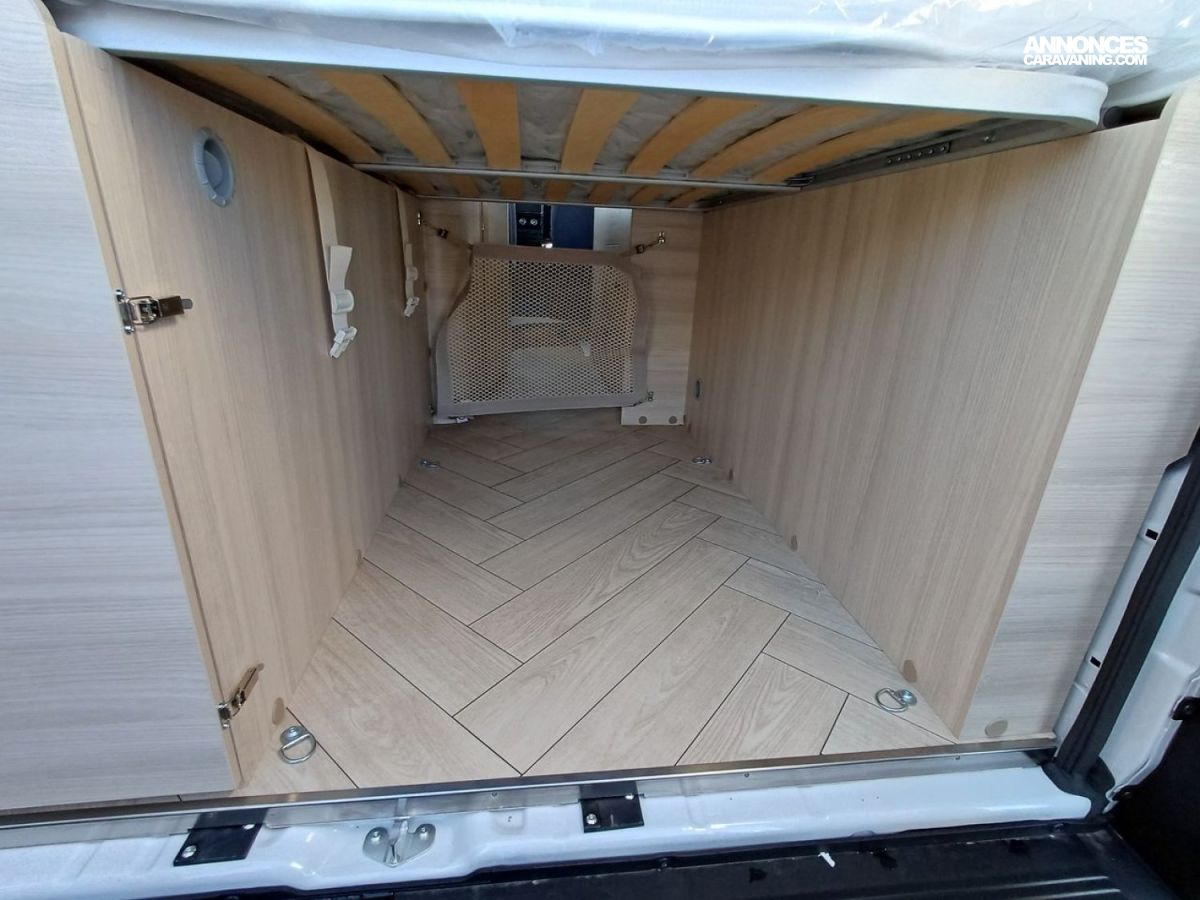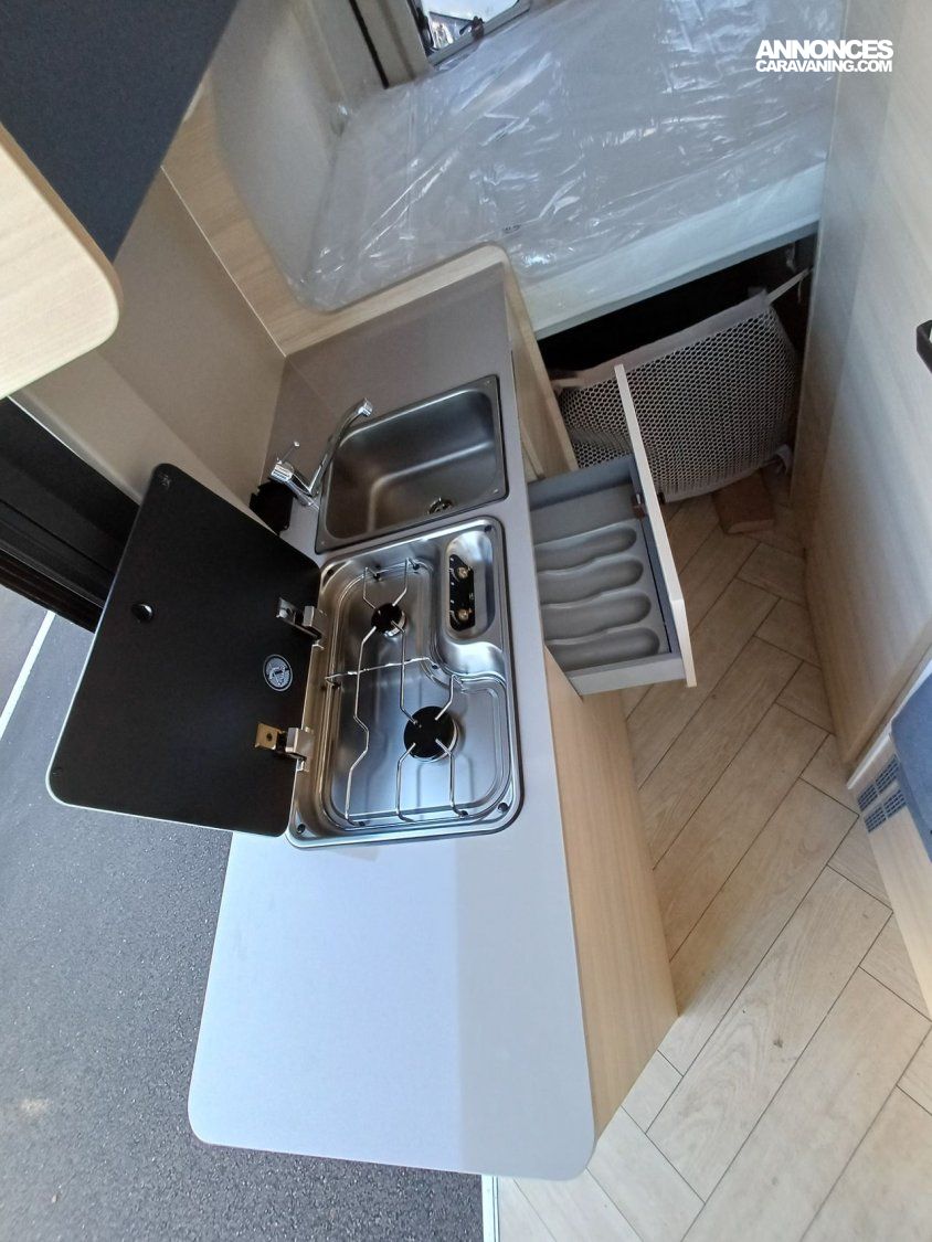 * Pack accessoires : Store extérieur, panneau solaire 200 W, éclairage extérieur, moustiquaire de porte, store cabine, complément couchage dinette, enjoliveurs de baies arrières.