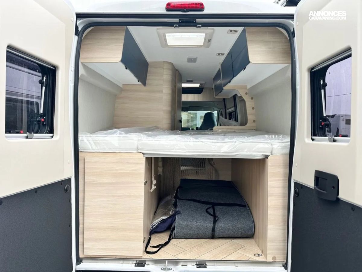– Pack Accessoires : Store extérieur, Panneau solaire 200w, Eclairage ext, moustiquaire de porte cellule, Store Int de cabine, couchage dinette, enjoliveur de baie arrière.
