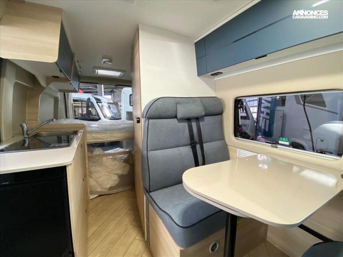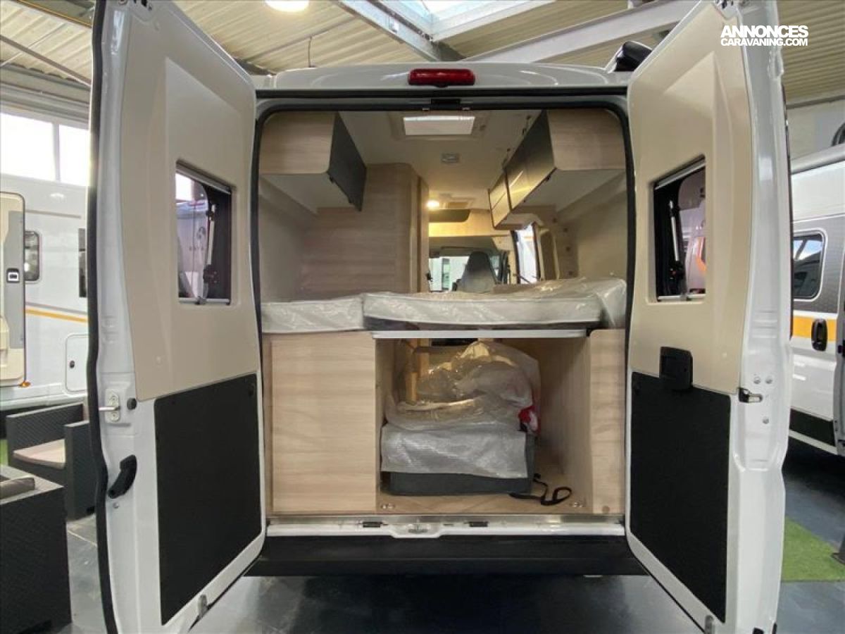 Avec double accoudoirs, Baies arrière ouvrantes, Chauffage au gaz, Climatisation manuelle de cabine, Coloris Blanc, Double airbag, ESP Traction +, Extension table dinette, Fenêtres double-vitrage avec combiné stores moustiquaire, Fix and go, Hill descent control, Jantes acier avec enjoliveurs 15'' gris, Lanterneau panoramique, Marchepied électrique, Mobilier Klein, Pneus 4 saisons, Précâblage caméra de recul, Pré-disposition panneau solaire, Pré-équipement TV, Prises USB/USB-C, Régulateur / limiteur de vitesse, Rétroviseurs électriques dégivrants, Rideaux d’isolation thermique des baies de cabine, Salle d'eau avec fenêtre, Sièges de cabine pivotants réglables en hauteur, VEHICULE NEUF D EXPOSITION