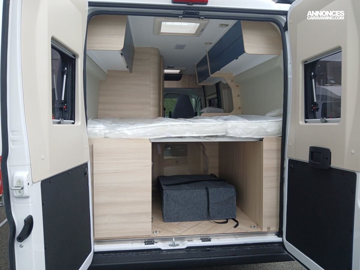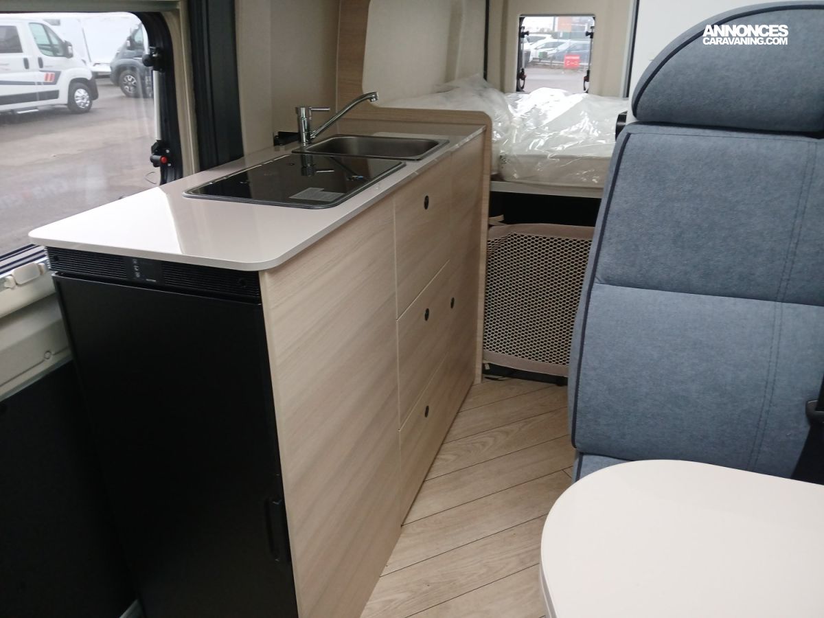 Salle d'eau avec fenêtre, Start & Stop, Précâblage caméra de recul, Rideaux d'isolation thermique des baies de cabine, Régulateur / limiteur de vitesses, Marche pied électrique, Pneus 4 saisons, Traction +, Extension table dinette, Rétroviseurs électrqiues dégivrants, Baies arrières ouvrantes, Chauffage au gaz, Climatisation manuelle de cabine, Double airbag, ESP, Lanterneau panoramique (ou double lanterneau), Prises USB/USB-C, Pré-disposition panneau solaire (MPPT ready), Fenêtres double vitrage avec combiné stores moustiquaire, Sièges de cabine pivotants réglables en hauteur, Fix and go, Hill descent control, Jantes acier 15", Pré-équipement TV