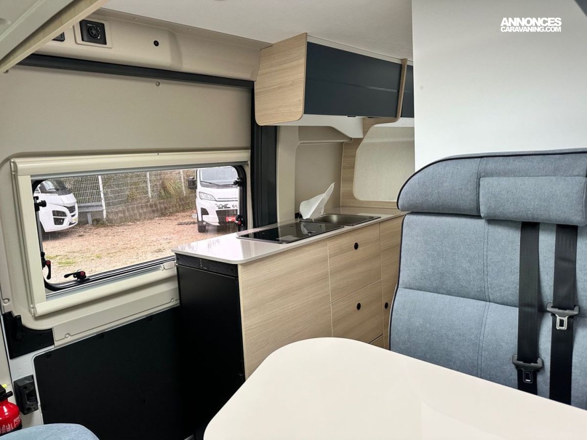 – Pack Accessoires : Store extérieur, Panneau solaire 200w, Eclairage ext, moustiquaire de porte cellule, Store Int de cabine, couchage dinette, enjoliveur de baie arrière.