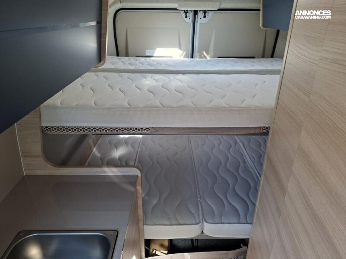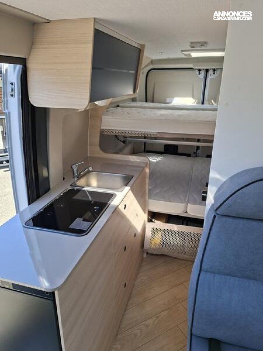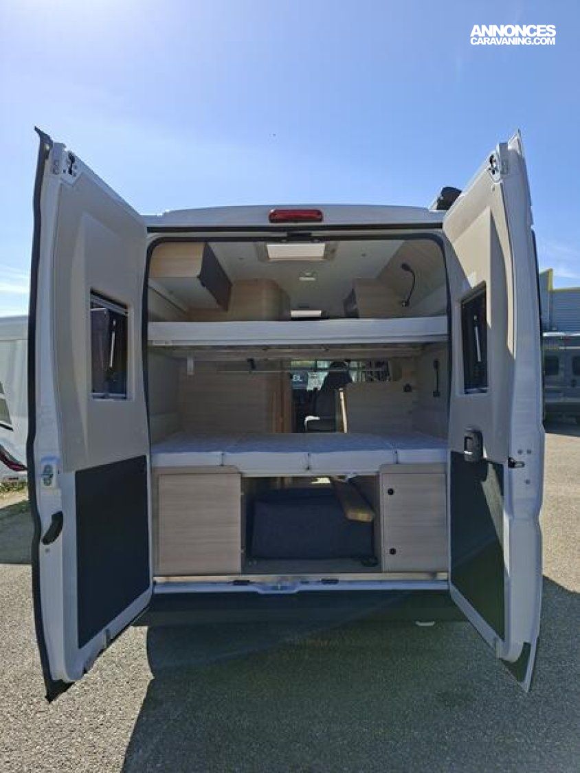 PACK BREAK EDITION Blanc Climatisation manuelle de cabine Double airbag Fix and go Sièges de cabine pivotants réglables en hauteur avec double accoudoir Rétroviseurs électriques dégivrants Régulateur / limiteur de vitesse ESP Traction + Hill descent control Eco pack FIAT : Stop&Start, alternateur intelligent, pompe à carburant à gestion électronique Lanterneau panoramique (ou double lanterneau) Fenêtres double-vitrage avec combiné stores moustiquaire Rideaux d’isolation thermique des baies de cabine Prises USB/USB-C Jantes acier avec enjoliveurs 15'' gris Pneus 4 saisons Pré-équipement TV Salle d'eau avec fenêtre Baies arrière ouvrantes Chauffage au gaz Extension table dinette Marchepied électrique Pré-disposition panneau solaire (MPPT ready) Précâblage caméra de recul : 0 €