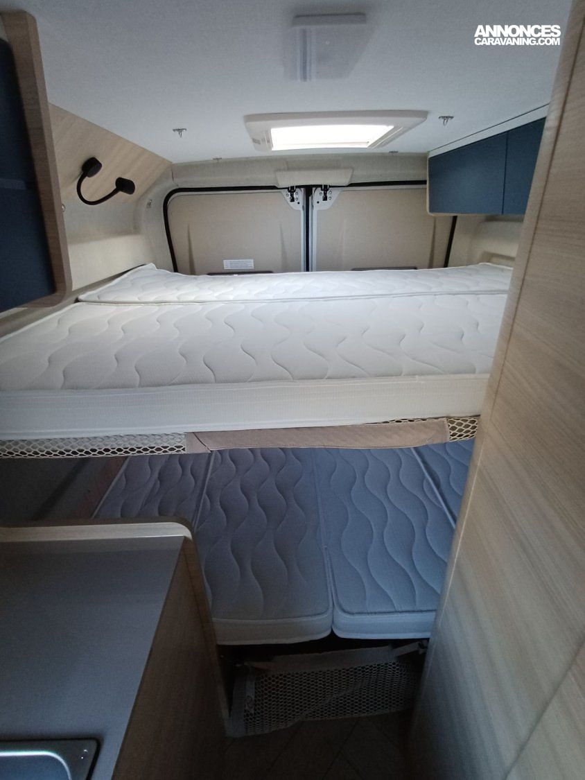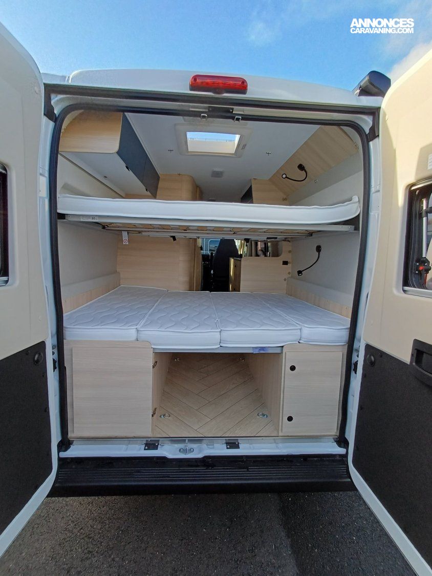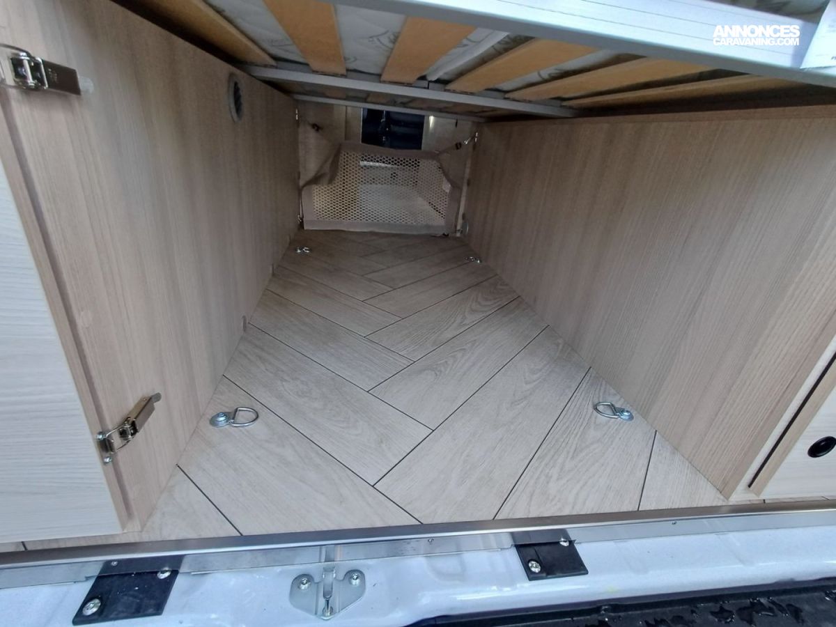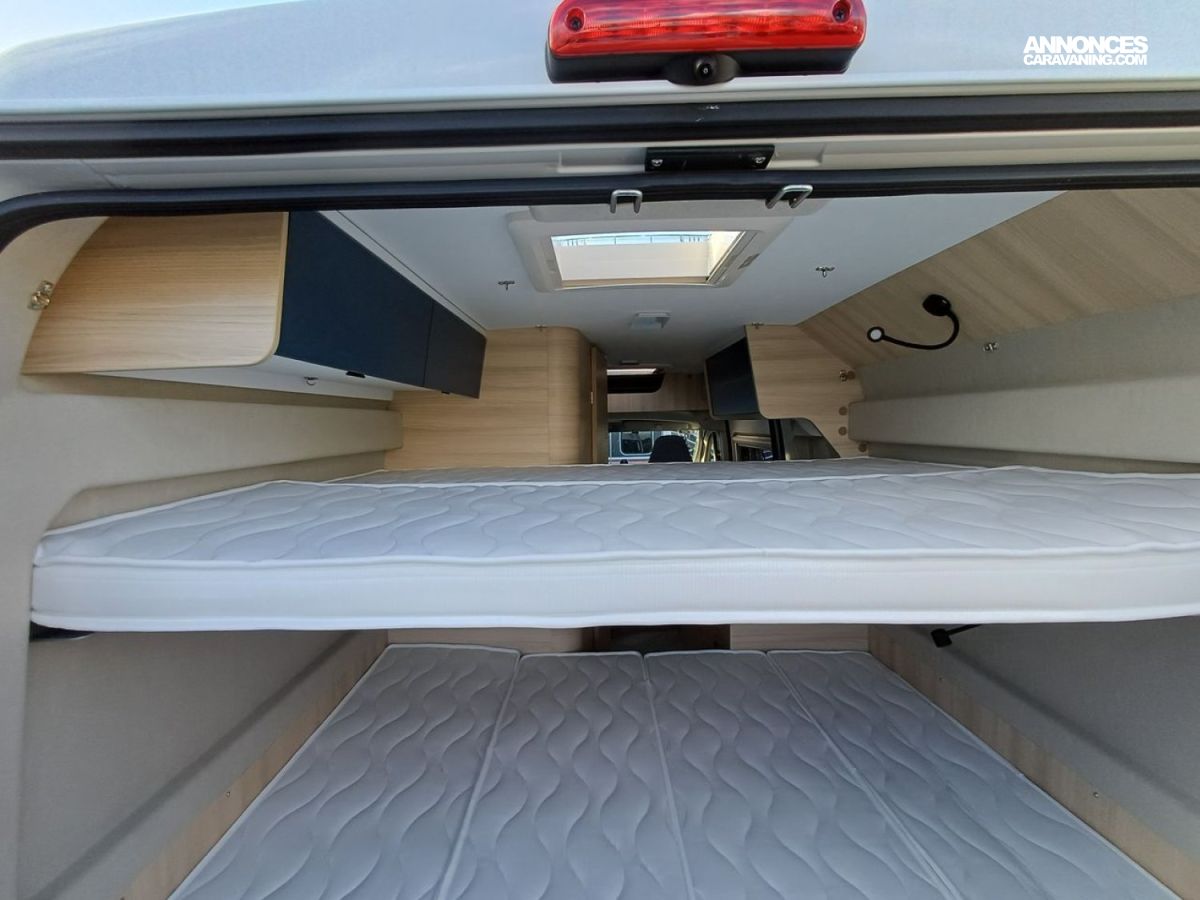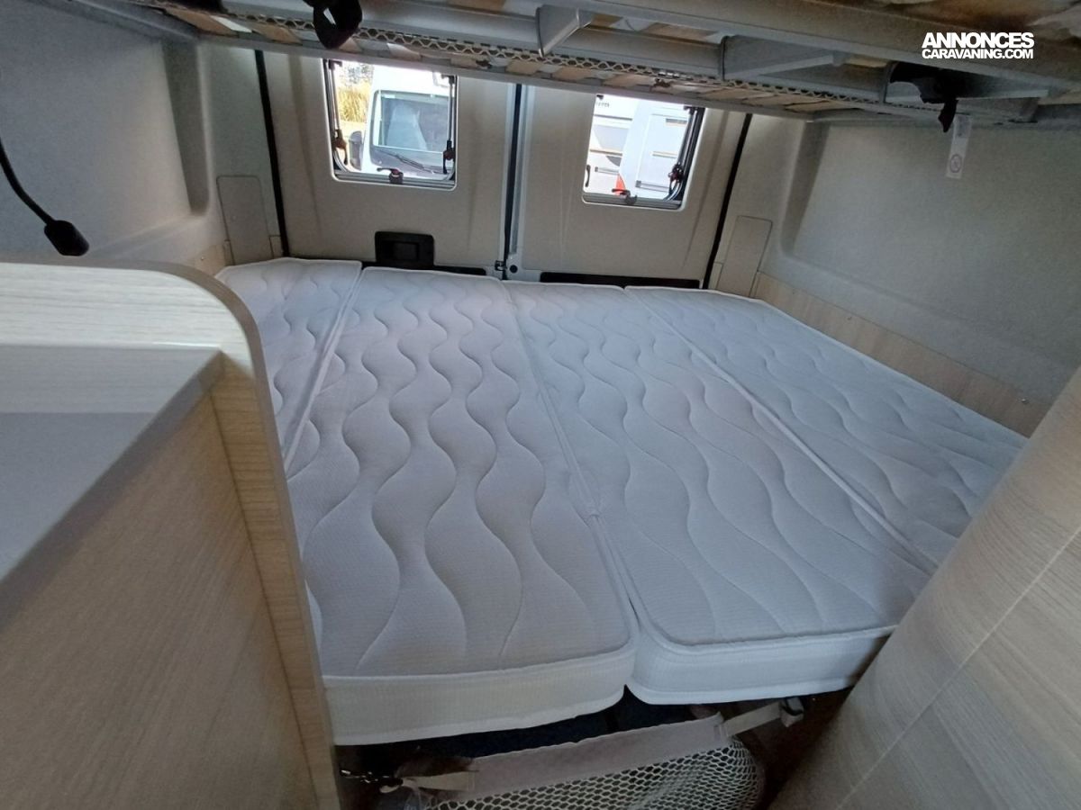 ° Pack accessoires : Store extérieur, panneau solaire 200 W, éclairage extérieur, moustiquaire de porte, store cabine, complément couchage dinette, enjoliveurs de baies arrières.