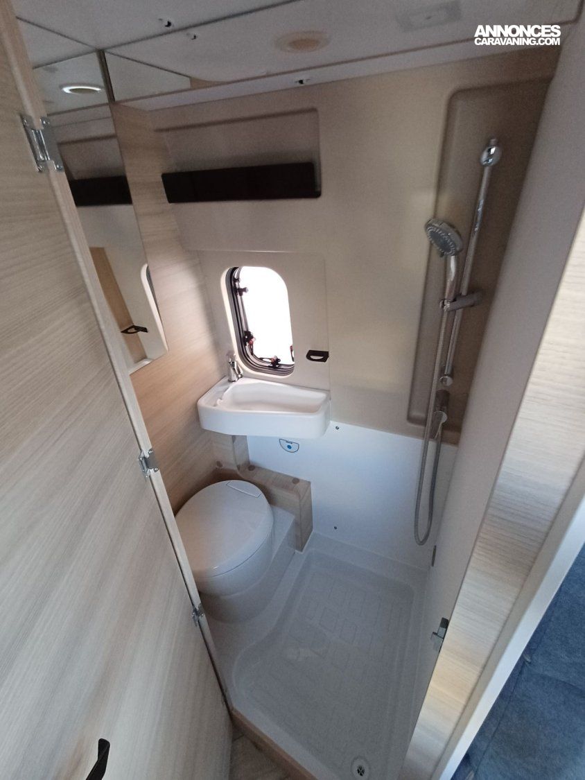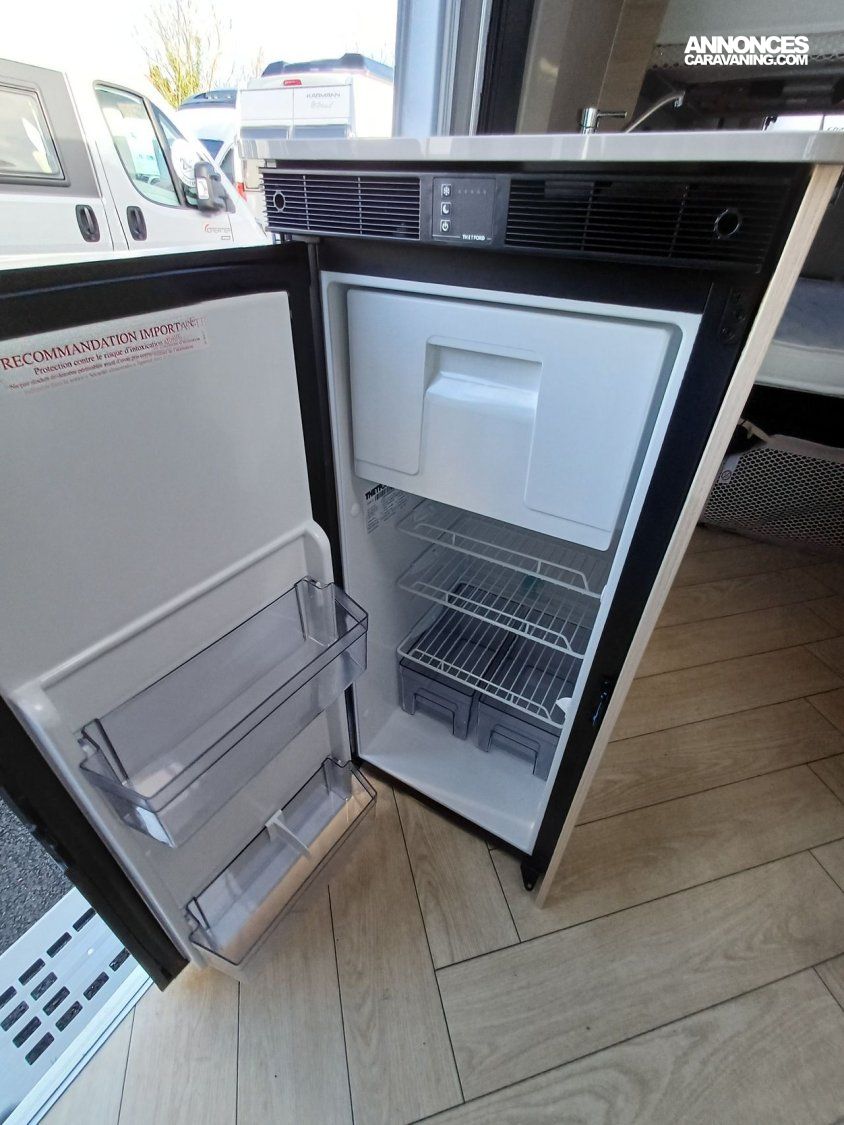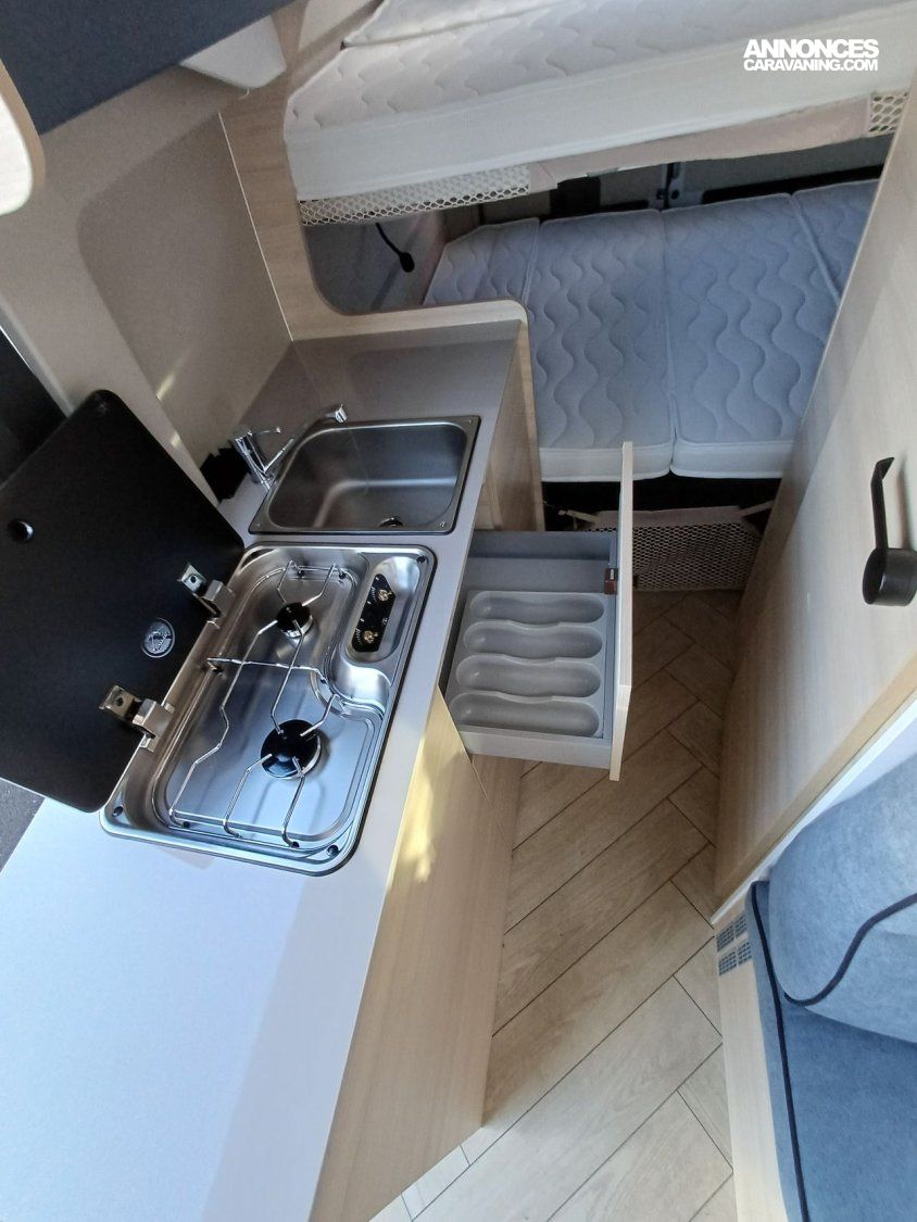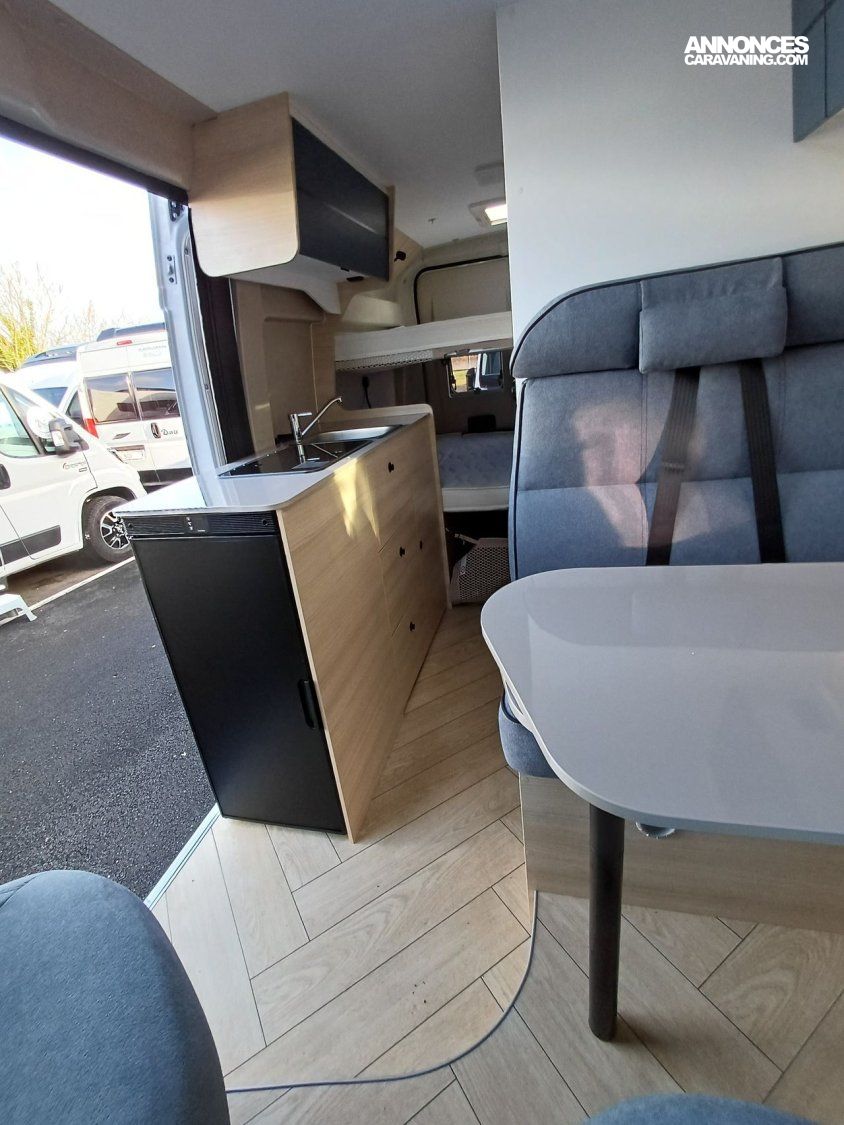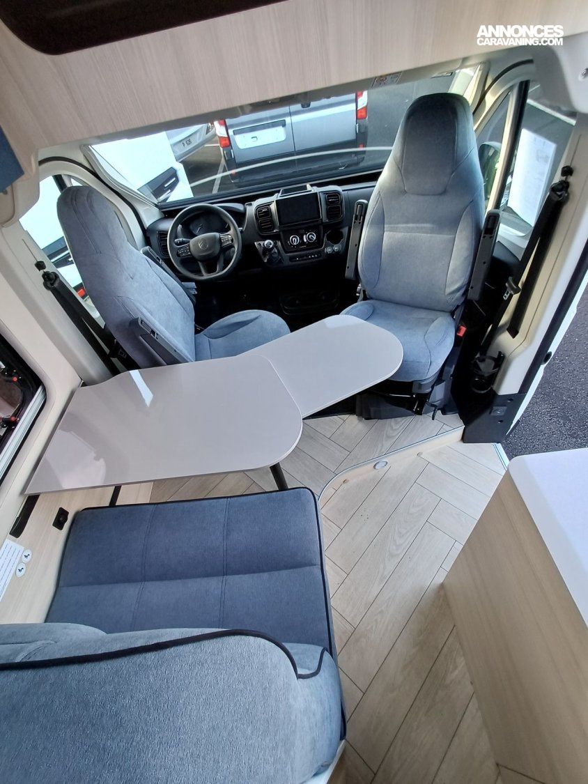 ° Pack accessoires : Store extérieur, panneau solaire 200 W, éclairage extérieur, moustiquaire de porte, store cabine, complément couchage dinette, enjoliveurs de baies arrières.