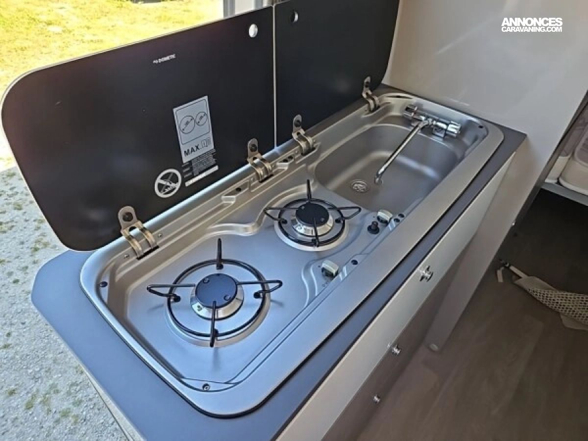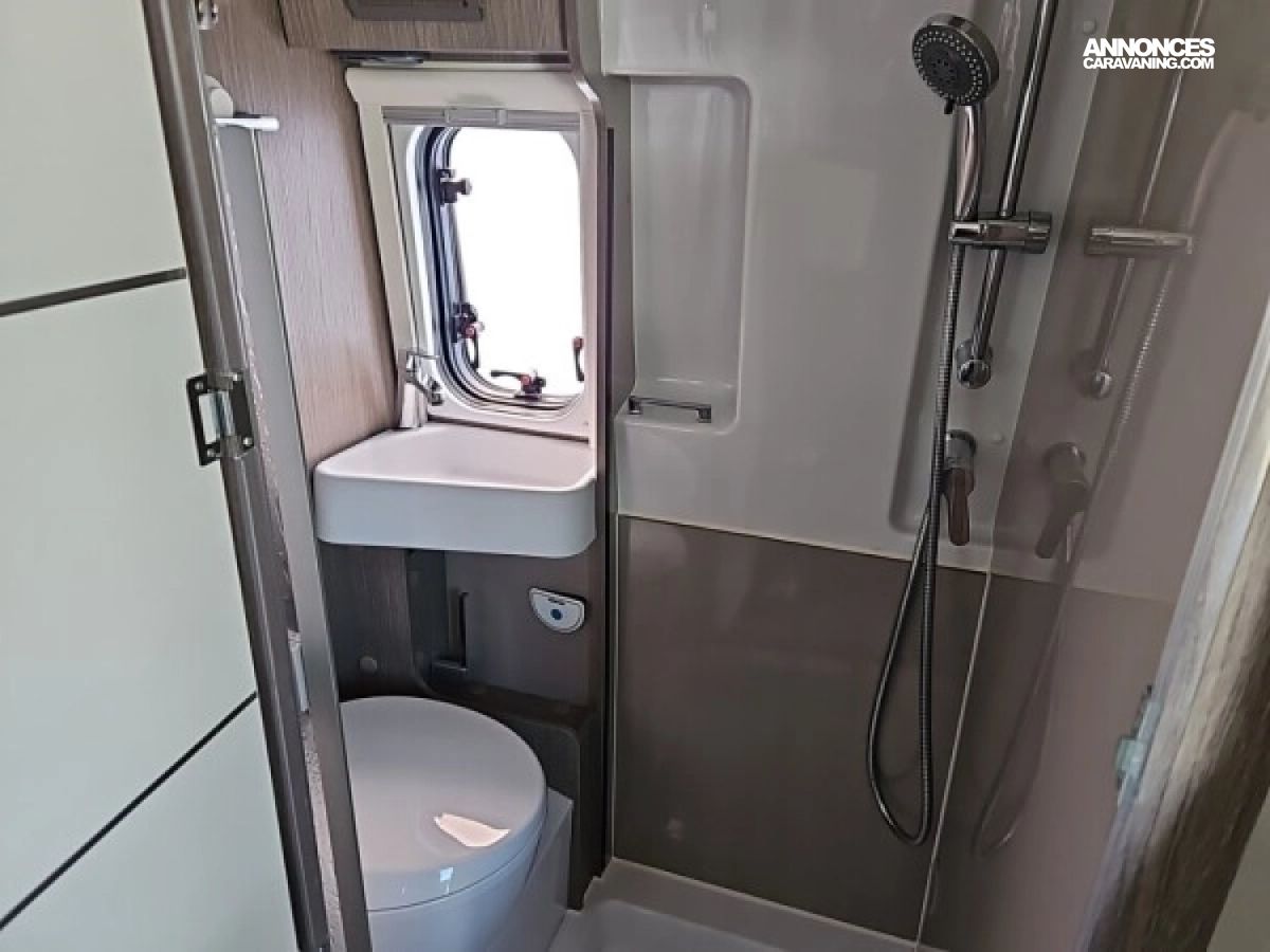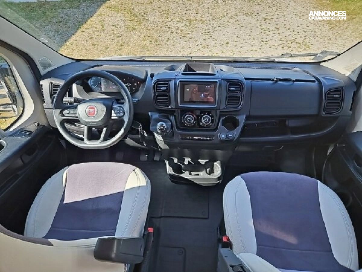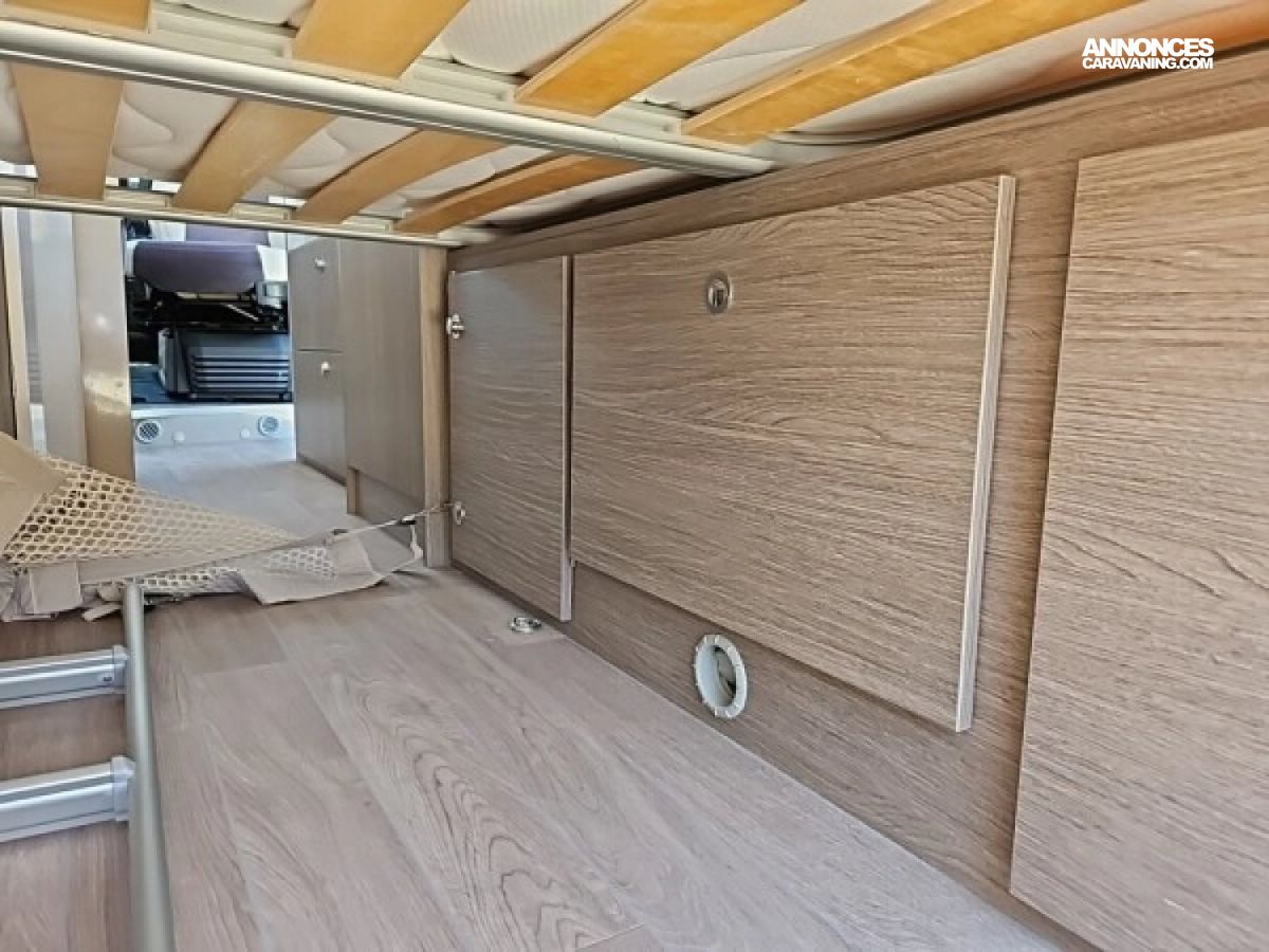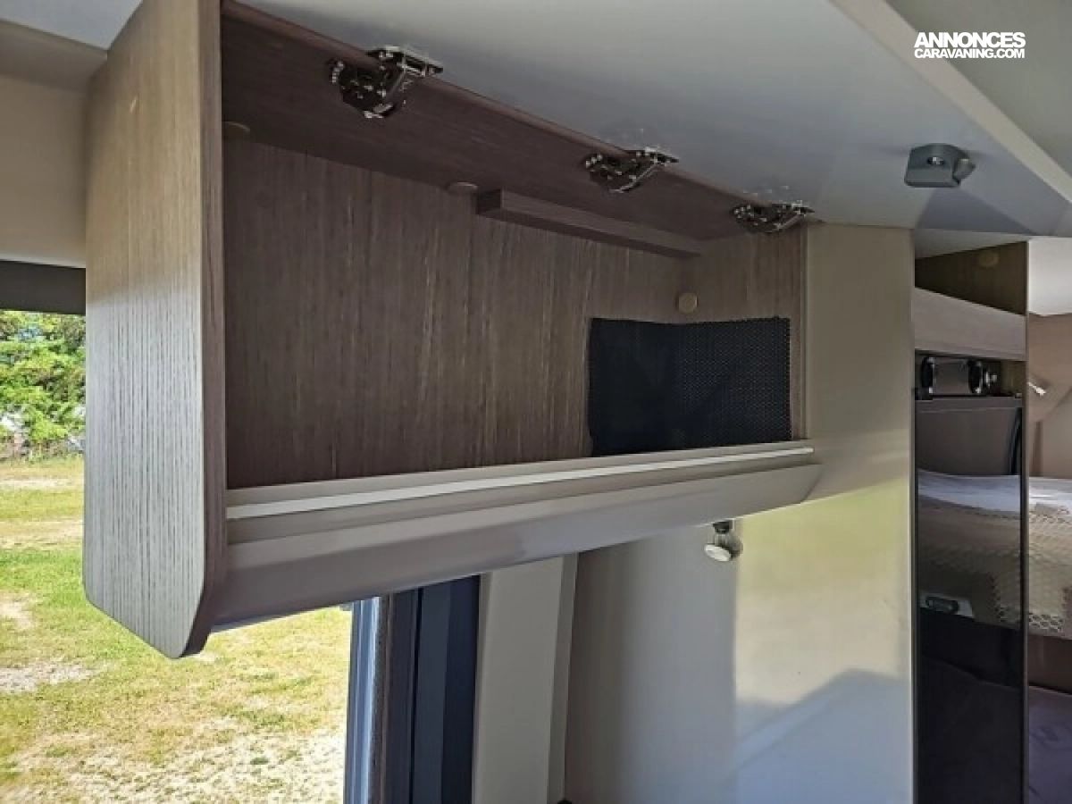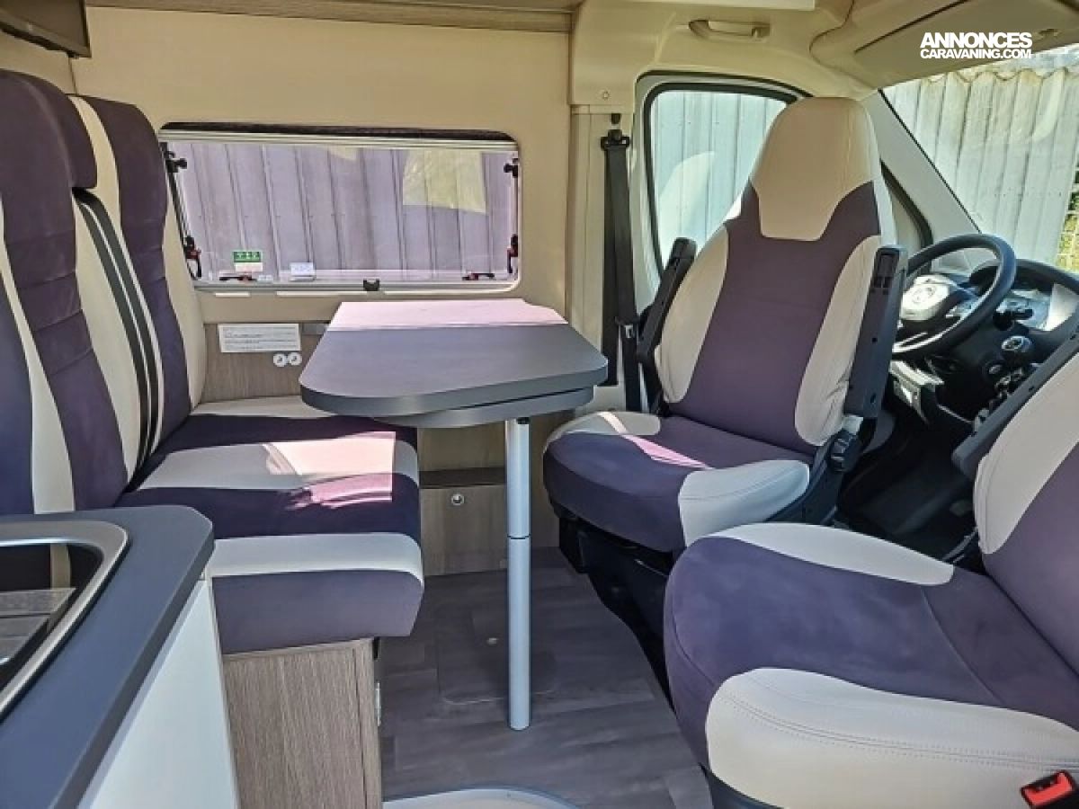 • Climatisation manuelle de cabine • Double airbag • Sièges de cabine pivotants réglables en hauteur avec double accoudoir • Rétroviseurs électriques/dégivrants • Régulateur/limiteur de vitesse • Prédisposition radio avec haut-parleurs cabine • Antenne radio DAB • Traction + • Calandre/contour phares noirs • Prises USB • Jantes alliage 16’’ noires • Salle d'eau avec fenêtre • Baies arrières ouvrantes • Lanterneau panoramique 700x500 mm • Extension table dinette • Support table extérieure • Éclairage intérieur 100 % LED • Panneau solaire • Store extérieur • Marchepied électrique • Eco pack (Stop&Start, alternateur intelligent, pompe à carburant à gestion électronique) • Motorisation 2.2L 140 CH / 103 kW • Housses de siège cabine assorties à l’ambiance cellule • Chauffage sur carburant utilisable en roulant à commande digitale programmable • Moustiquaire de porte • Maxi cab • Grands tiroirs en cuisine • Rangements additionnels arrières • Penderie • Salle d’eau avec paroi repliable • Éclairage extérieur • Décoration extérieure spécifique • Mobilier et tissu spécifique • Isolation renforcée "VPS" • Pack + VIP : Châssis 35L, antibrouillards avec cornering, Système multimédia avec commandes au volant et Caméra de recul • Stores d'occultation cabine