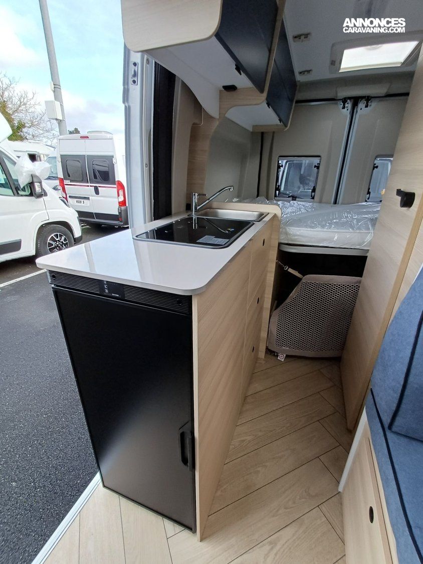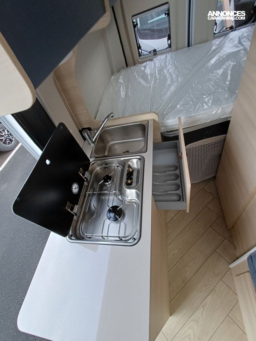 ° Pack accessoires : Store extérieur, panneau solaire 200 W, éclairage extérieur, moustiquaire de porte, store cabine, complément couchage dinette, enjoliveurs de baies arrières.