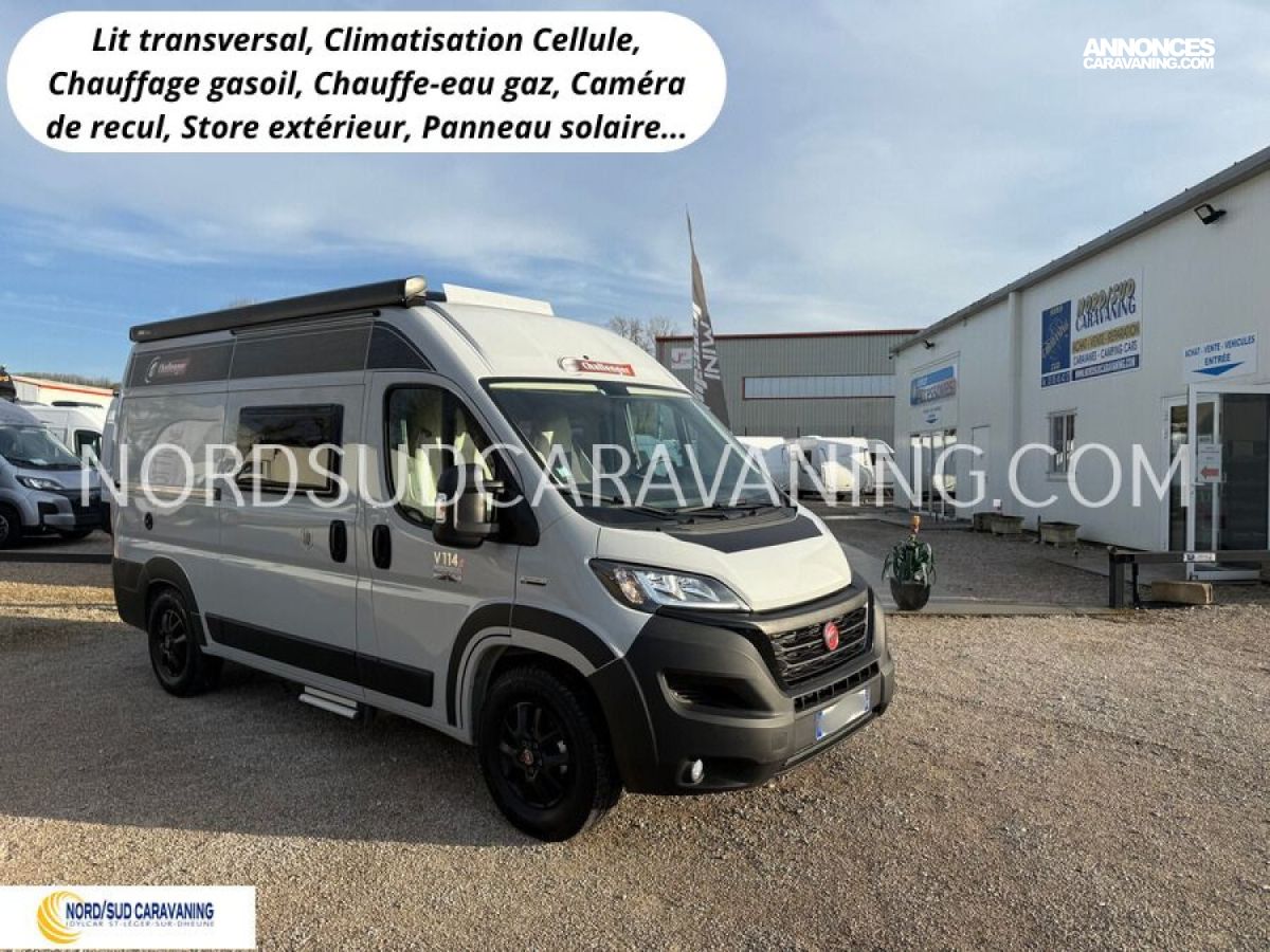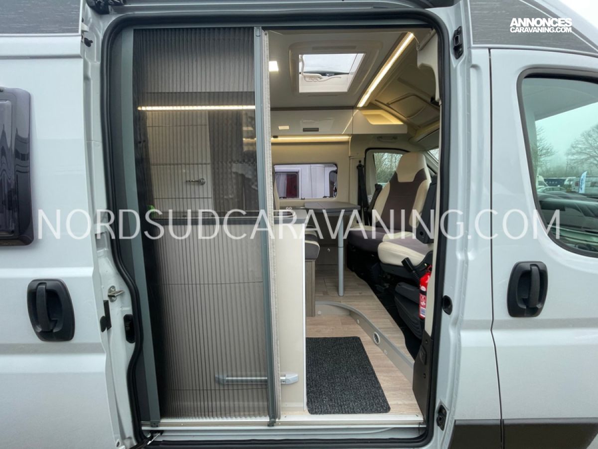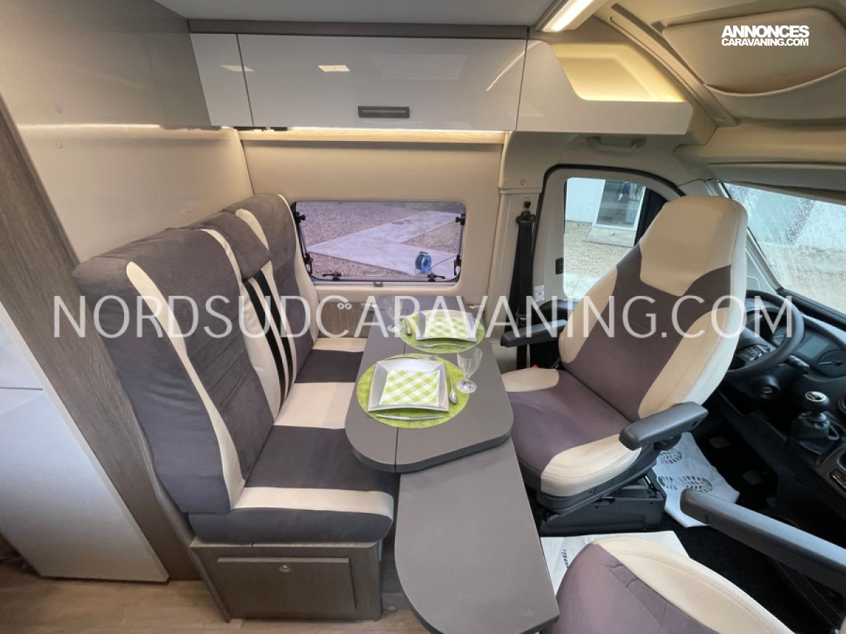 Le V114 S Road Edition est idéal pour se déplacer où on veut, quand on veut. Sa maniabilité vous permettra de circuler ou de vous garer facilement. Vous profiterez d’un lit transversal très confortable. Grâce à son sommier relevable, vous bénéficierez d’un grand espace de rangement à l’arrière. Son espace dinette agréable et convivial vous permettra de passer de beaux moments inoubliables. Sa cuisine fonctionnelle grâce à ses systèmes de rangements optimisés est équipée d’un réchaud 2 feux, d’un évier inox, d’un réfrigérateur à double ouverture. Son coin toilette agréable avec WC, Lavabo escamotable et douchette. Sans oublier sa soute volumineuse idéale pour ranger vos vélos, de retour de balades et ses nombreux rangements astucieux !