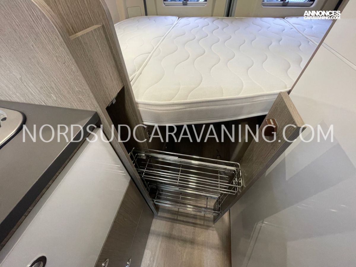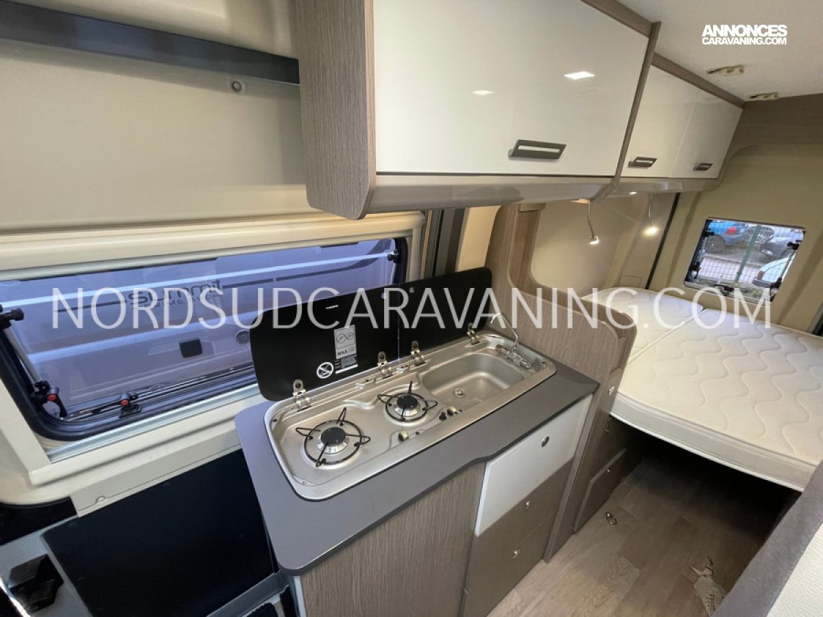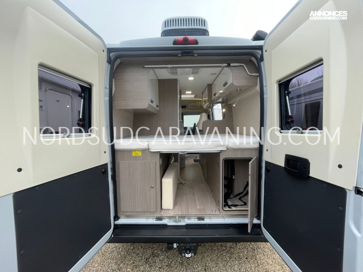 Le V114 S Road Edition est idéal pour se déplacer où on veut, quand on veut. Sa maniabilité vous permettra de circuler ou de vous garer facilement. Vous profiterez d’un lit transversal très confortable. Grâce à son sommier relevable, vous bénéficierez d’un grand espace de rangement à l’arrière. Son espace dinette agréable et convivial vous permettra de passer de beaux moments inoubliables. Sa cuisine fonctionnelle grâce à ses systèmes de rangements optimisés est équipée d’un réchaud 2 feux, d’un évier inox, d’un réfrigérateur à double ouverture. Son coin toilette agréable avec WC, Lavabo escamotable et douchette. Sans oublier sa soute volumineuse idéale pour ranger vos vélos, de retour de balades et ses nombreux rangements astucieux !