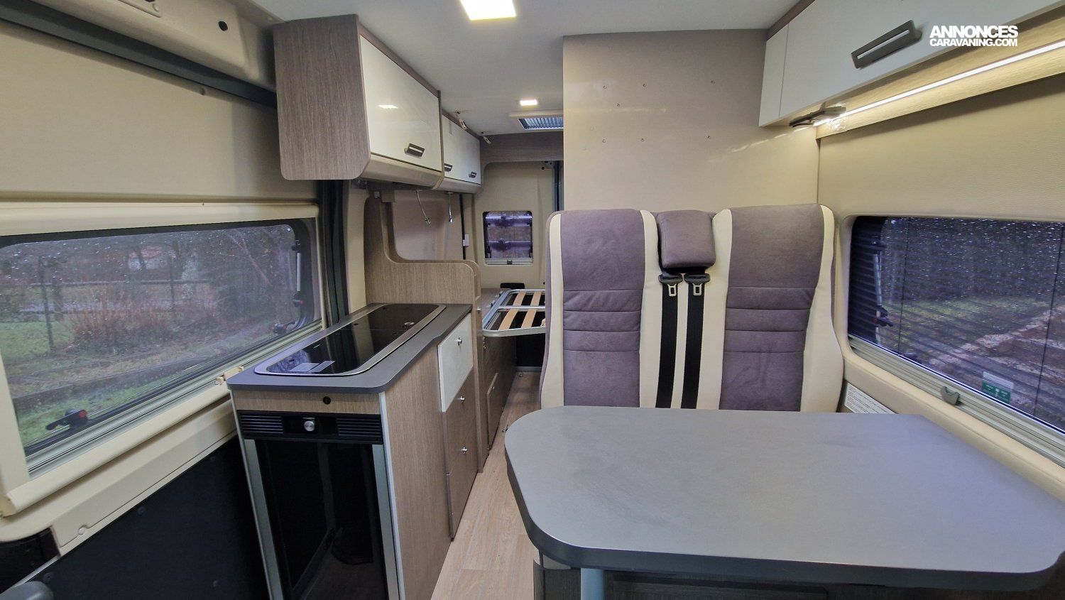 Evadez-vous du quotidien avec ce Van aménagé au gabarit mesuré et profitez d’une implantation idéale pour 2 personnes : confort de couchage du lit double transversal + lit dînette d'appoint transformable, cuisine équipée avec de nombreux rangements et réfrigérateur 12V à compression à ouverture G et D, salon convivial avec belle luminosité, salle d’eau fonctionnelle avec lavabo relevable, douche et cabinet de toilette.