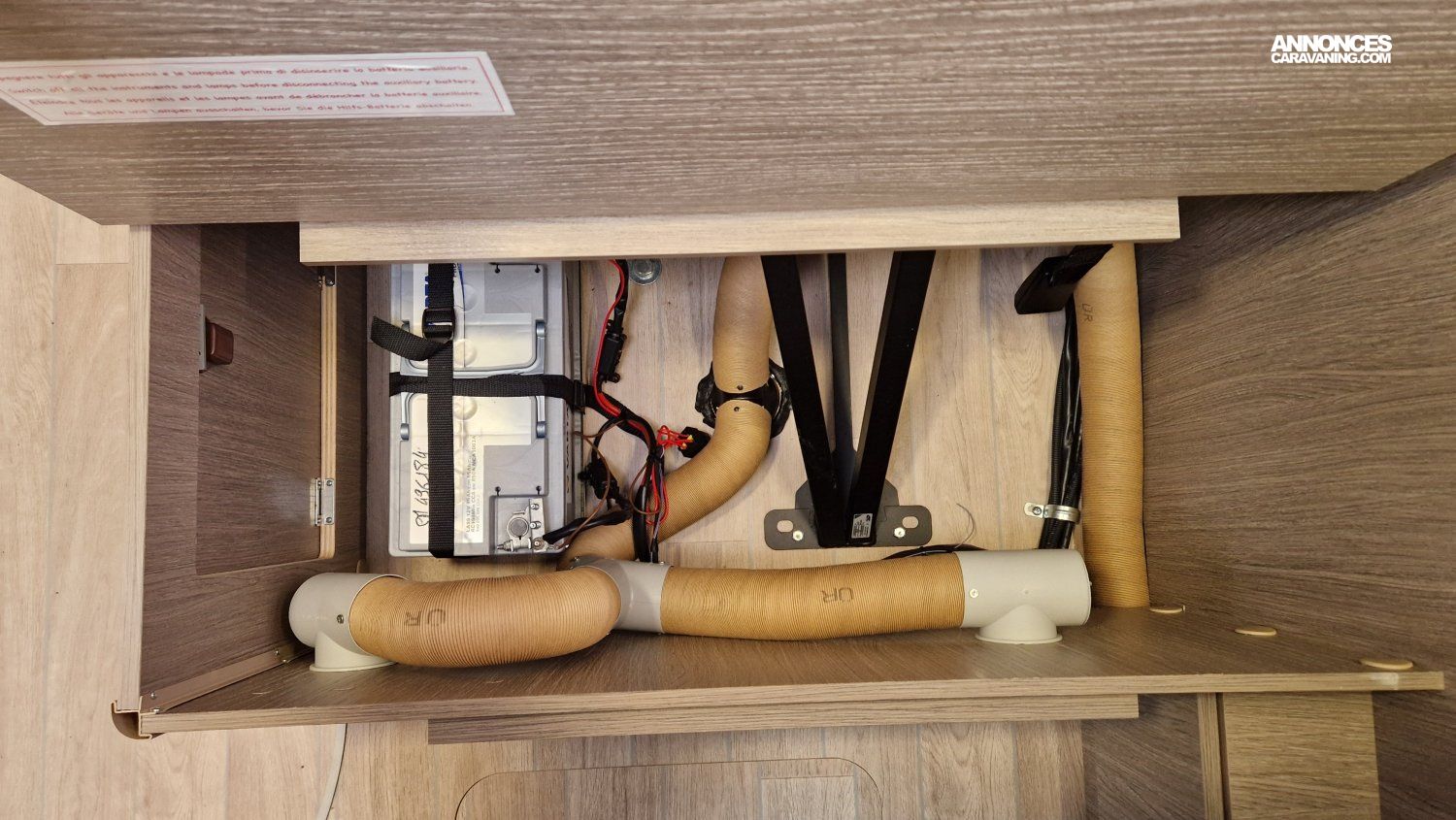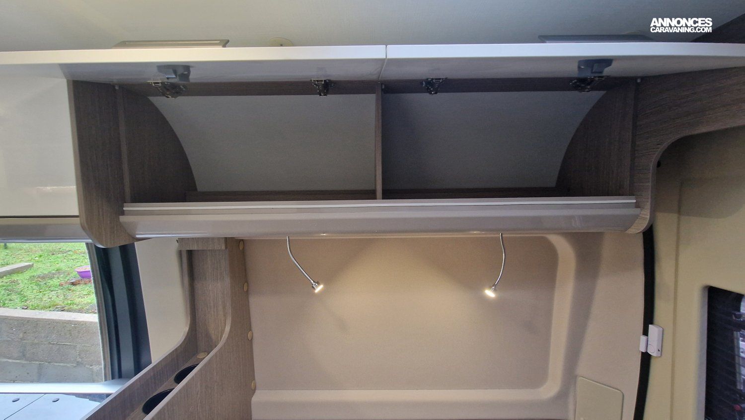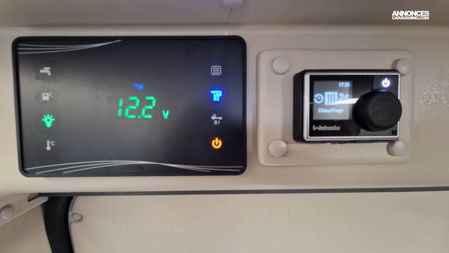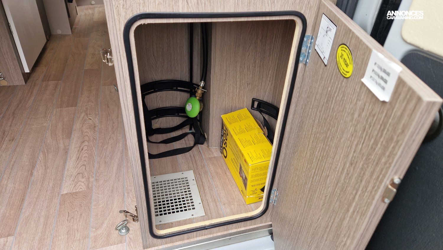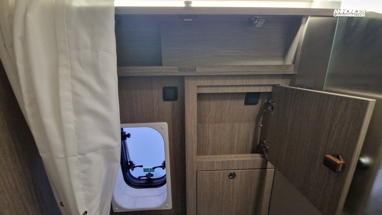 CHAUFFAGE CARBURANT, STORE EXTERIEUR 3M, GAZINIERE 2 FEUX, ECLAIRAGE LED, MOUSTIQUAIRE DE PORTE CELLULE, PORTE VELO, STORES PLISSES DE CABINE, REFRIGERATEUR 12V A COMPRESSION, CHAUFFE-EAU GAZ