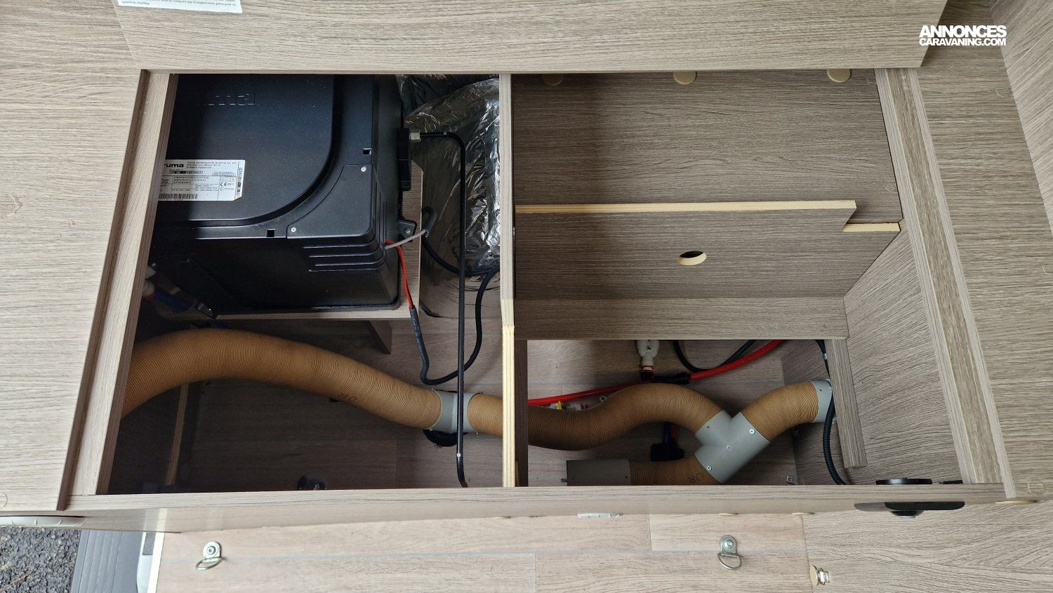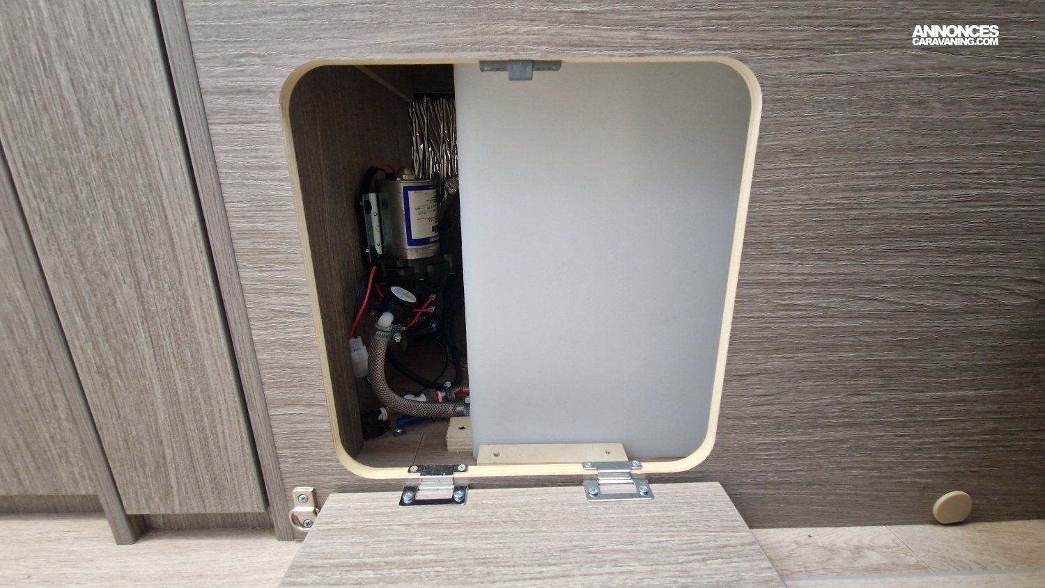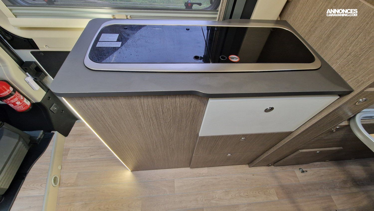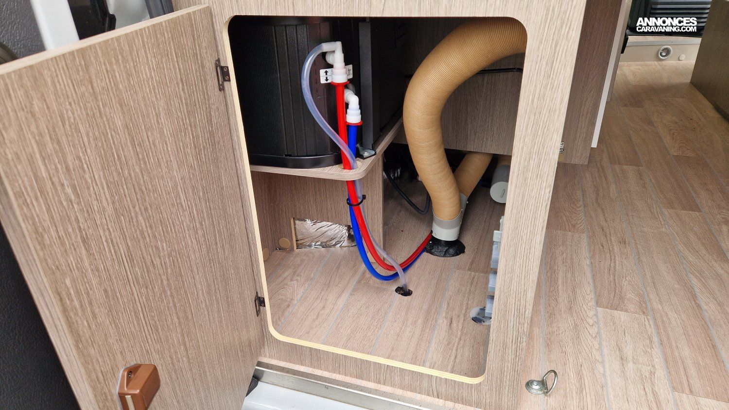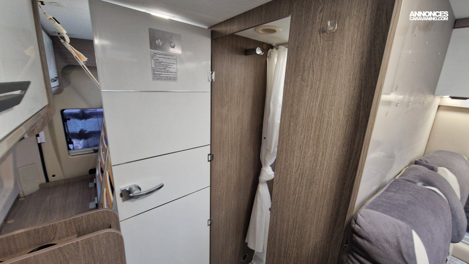 CHAUFFAGE CARBURANT, STORE EXTERIEUR 3M, GAZINIERE 2 FEUX, ECLAIRAGE LED, MOUSTIQUAIRE DE PORTE CELLULE, PORTE VELO, STORES PLISSES DE CABINE, REFRIGERATEUR 12V A COMPRESSION, CHAUFFE-EAU GAZ