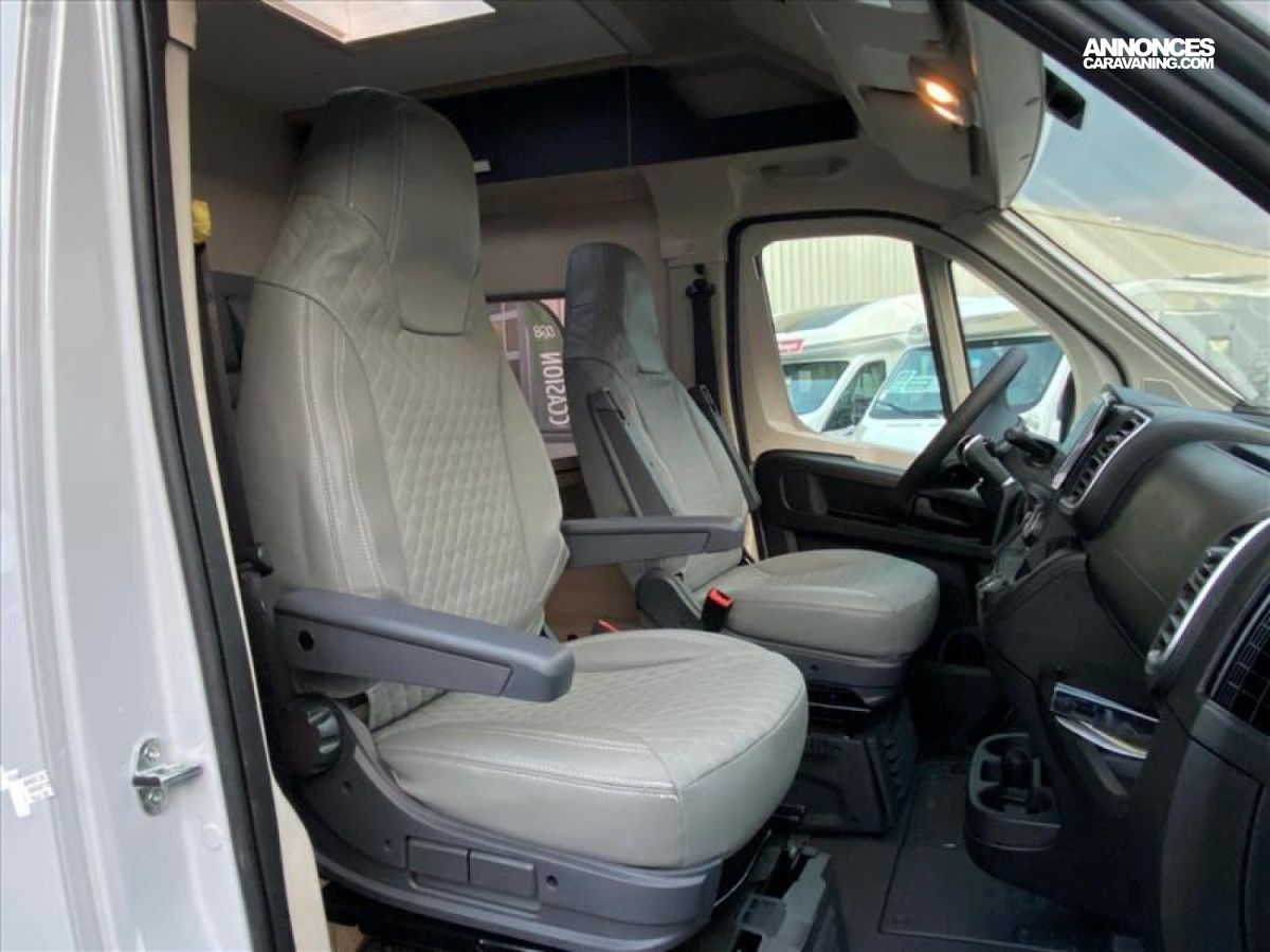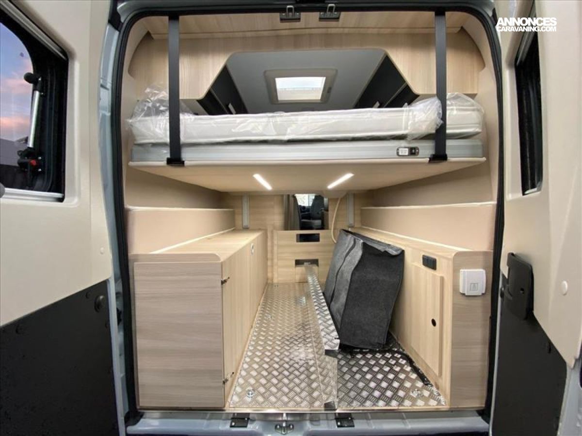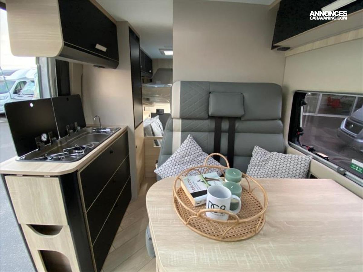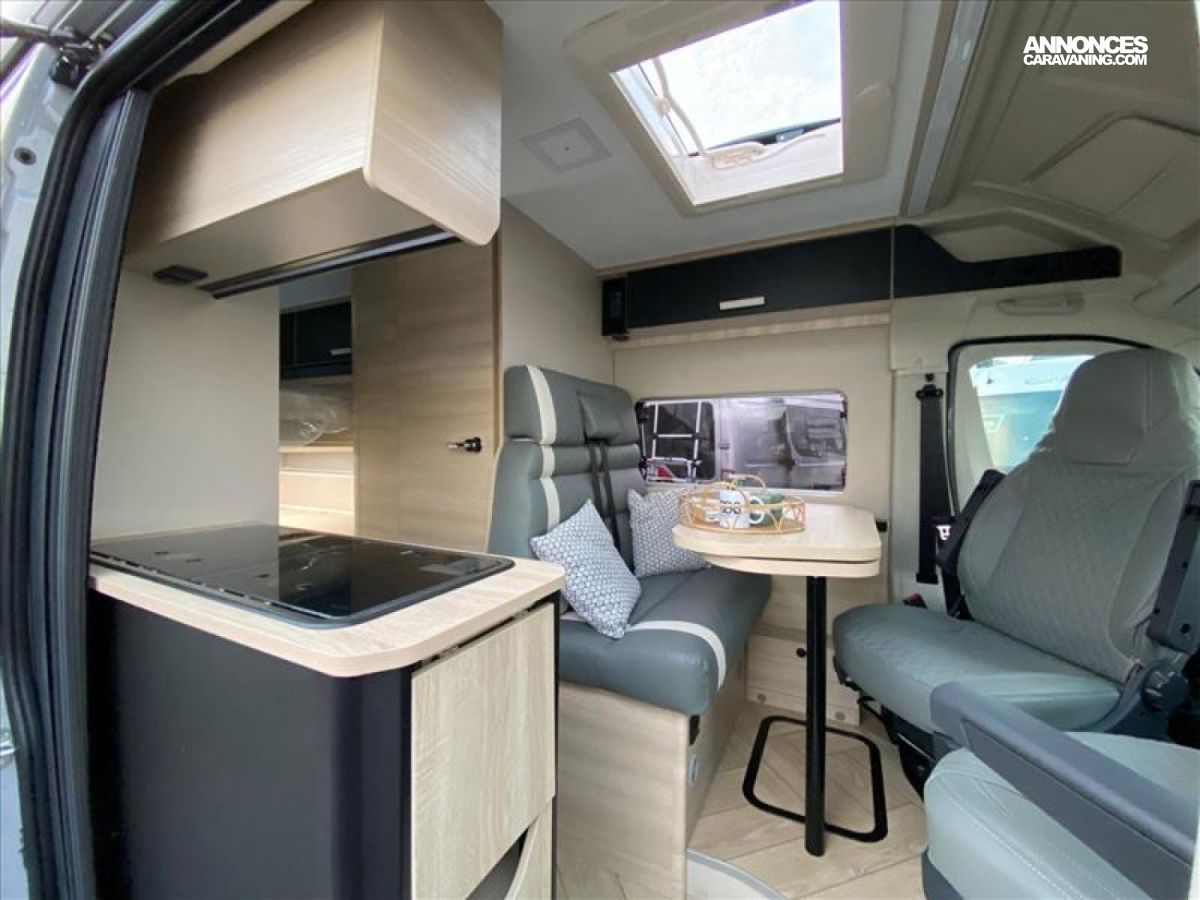 Baies arrières ouvrantes avec enjoliveur de baie, Chauffage sur carburant utilisable en roulant, Climatisation manuelle de cabine, Double air bag, ESP Traction +, Extension table dinette, Fenêtres double-vitrage avec combiné stores moustiquaire, Feux antibrouillard, Fix and Go, GRIS CAMPOVOLO, Hill Descent Control, Housses de sièges cabine assorties à l’ambiance cellule, Isolation renforcée, Jantes alliage 16’’ noires, Lanterneau panoramique (ou double lanterneau), Marche pied électrique, Pare-chocs avant peint, Penderie, Pneus 4 saisons, Pré équipement TV, Prises USB/USB-C, Régulateur / limiteur de vitesse, Rétroviseurs électriques et dégivrants, Rideaux d’isolation thermique des baies de cabine, Salle d'eau avec fenêtre, Sièges cabine pivotants réglables en hauteur + accoudoirs, Support table extérieure