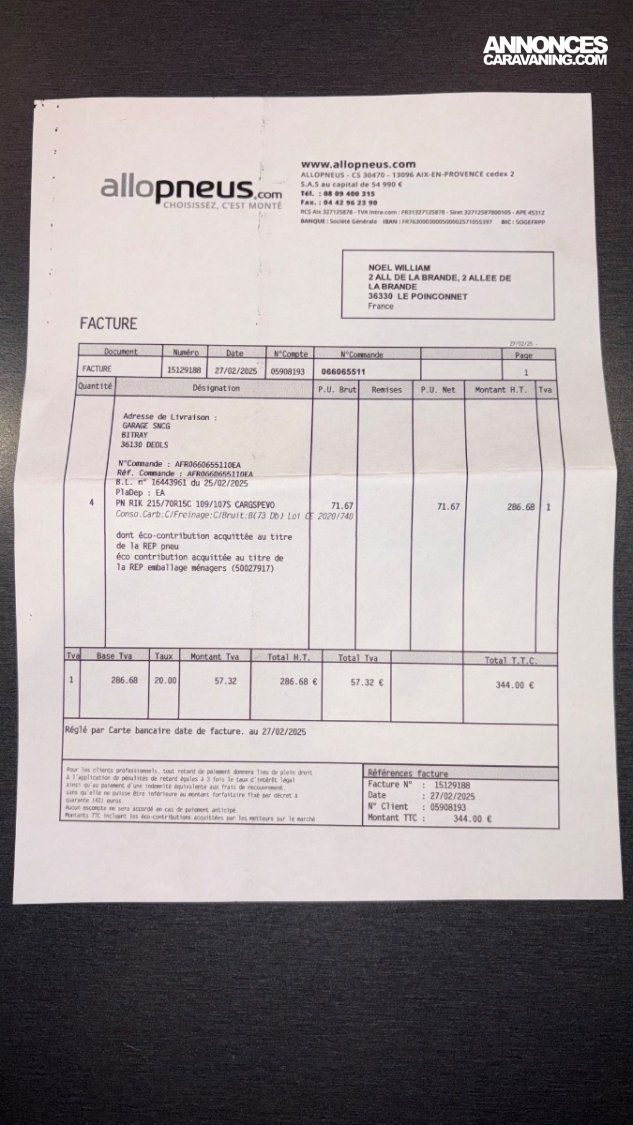 ☑️ VASP Caravane (assurance env. 40 € / mois en tous risques)