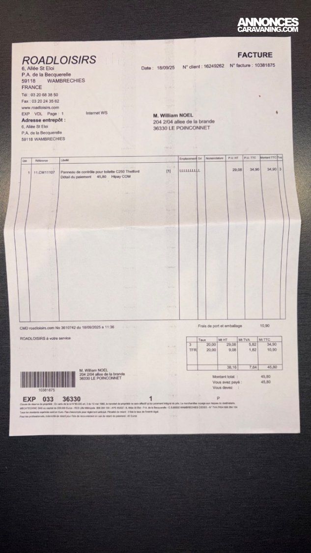 🚽 Panneau de contrôle WC Thetford remplacé (09/2025)