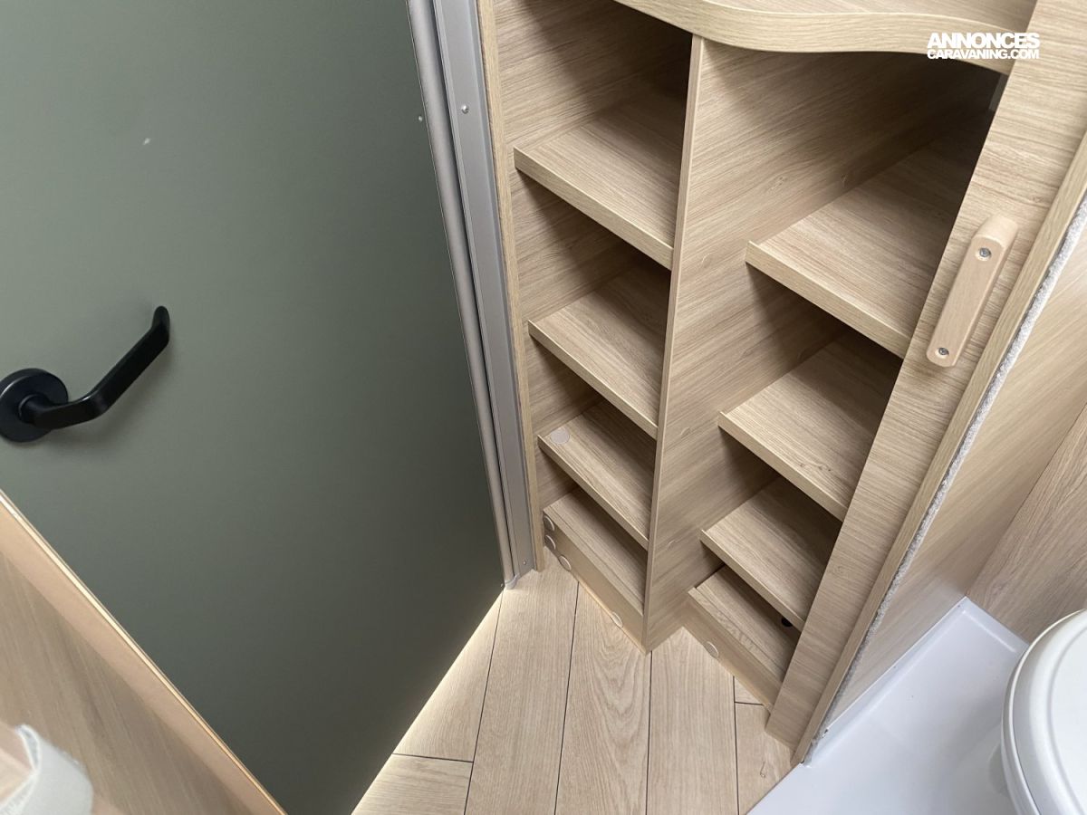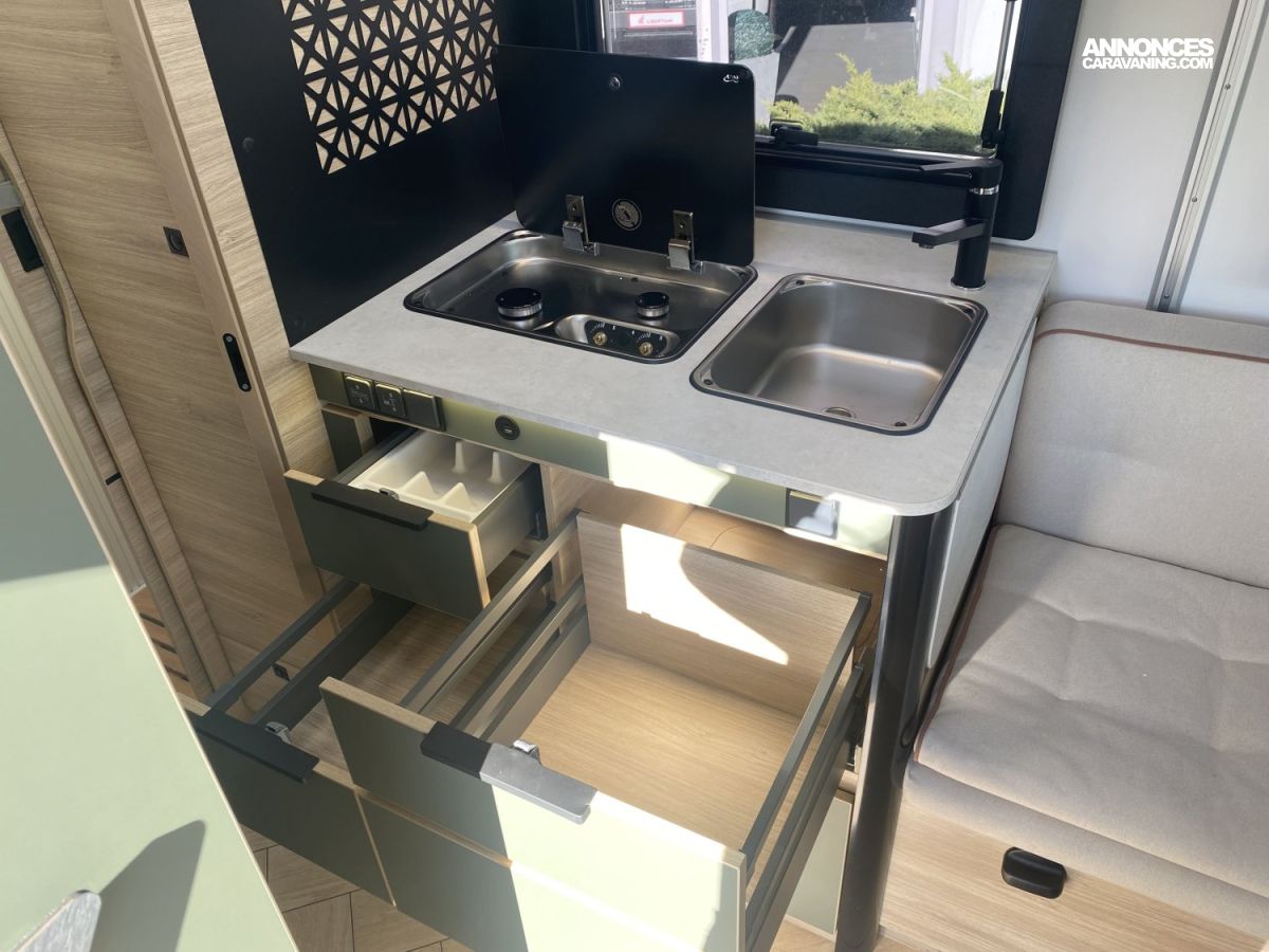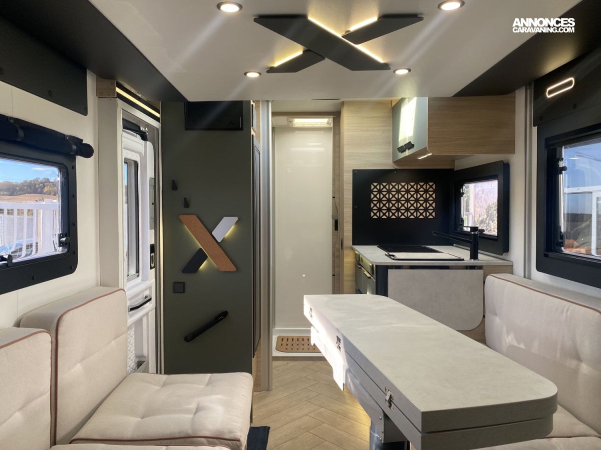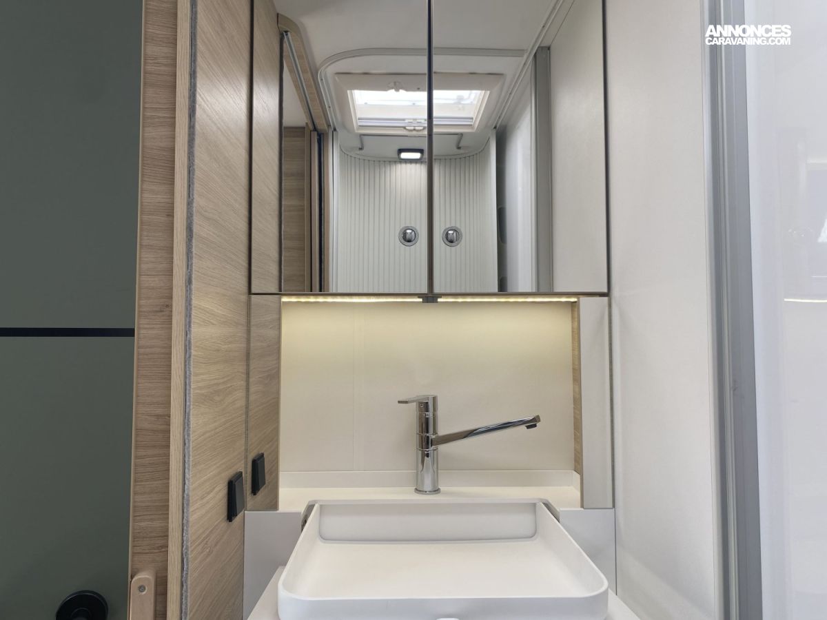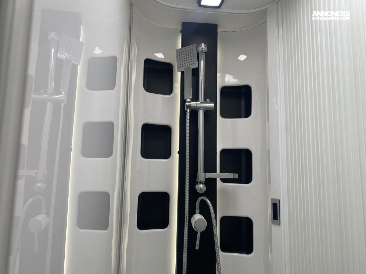 HOUSSES DE SIEGES CABINE, CAILLEBOTIS DOUCHE, CLIMATISATION CABINE, ECLAIRAGE EXTERIEUR, GARANTIE ETENCHEITE 7 ANS, ISOLATION GRADE 3, CHAUFFAGE DIESEL UTILISABLE EN ROULANT, BAIES DOUBLE VITRAGE AVEC ENCADREMENT EN POLYURETHANE, JANTES ALU 16", PRISE GAZ EXTERIEURE, SMART DRESSING ROOM