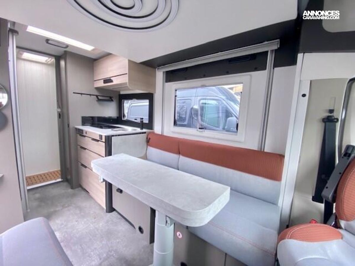 OPEN EDITION Climatisation manuelle de cabine Double airbag Fix and go Sièges de cabine pivotants réglables en hauteur avec double accoudoir Housses de siège cabine assorties à l’ambiance cellule Rétroviseurs électriques dégivrants Régulateur / limiteur de vitesse ESP Traction + Hill Descent control Eco pack FIAT : Stop&Start, alternateur intelligent, pompe à carburant à gestion électronique Isolation Marche d'entrée Eclairage marche d'entrée Porte cellule avec fenêtre Toit panoramique cabine ouvrant Lanterneau panoramique (ou double lanterneau) Balisage LED au sol Charnières placards amorties Prises USB/USB-C Prise eau extérieure Conception IRP : toit plancher parois polyester, plancher 64 mm Technibox Pare-chocs avant peint Jantes alliage 16’’ noires Prise de gaz extérieure Feux antibrouillard Porte d’entrée avec fermeture centralisée porteur cellule Matelas couchage principal Premium Caillebotis de douche Range-chaussures Pré-équipement TV Chauffage sur carburant utilisable en roulant Eclairage de auvent Penderie Vérin de porte Pré-disposition panneau solaire (MPPT ready) Précâblage caméra de recul Fixations Isofix : 0 €