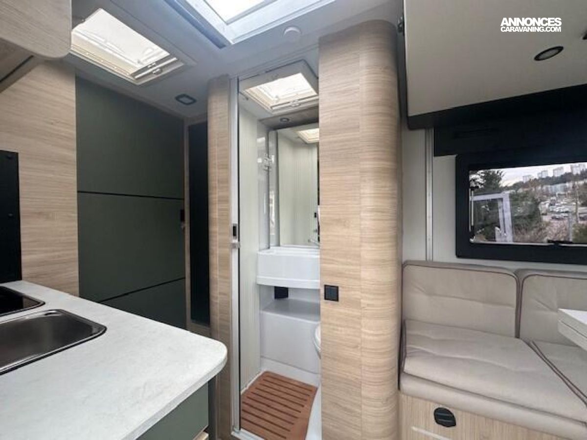 OPEN EDITION Porte d’entrée avec fermeture centralisée porteur cellule Technibox Feux antibrouillard Pneus 4 saisons Prise de gaz extérieure Jantes alliage 16’’ noires Pare-chocs avant peint Pré-disposition panneau solaire (MPPT ready) Matelas couchage principal Premium Caillebotis de douche Pré-équipement TV Chauffage sur carburant utilisable en roulant Eclairage d'auvent Penderie Vérin de porte Précâblage caméra de recul Fixations Isofix Régulateur / limiteur de vitesse + Housses de sièges cabine assorties à l’ambiance cellule Sièges de cabine pivotants réglables en hauteur avec double accoudoir Fix and go Double airbag Conception IRP : toit plancher parois polyester Climatisation manuelle de cabine Châssis blanc Rétroviseurs électriques dégivrants ESP Traction + Hill descent control Isolation marche d'entrée Prise eau extérieure Prises USB/USB-C Charnières placards amorties Balisage LED au sol Rideaux d’isolation thermique des baies de cabine Lanterneau panoramique (ou double lanterneau) Toit panoramique cabine ouvrant Porte cellule avec fenêtre Eclairage marche d'entrée Eco pack FIAT : Stop&Start, alternateur intelligent, pompe à carburant à gestion électronique : 0 €