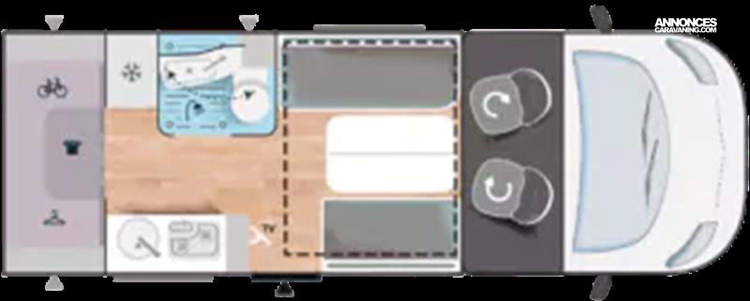 Fixations Iso, Caillebotis de douche, Chauffage sur carburant utilisable en roulant, Jantes alliage 16’’ noires, Pack look : Volant en cuir, bouches d'aération chromées, jan, Prise eau extérieure, Double airbag, ESP, Climatisation manuelle de cabine, Régulateur / limiteur de vitesse, Prise de gaz extérieure, Hill Descent control, Rétroviseurs électriques dégivrants, Traction +