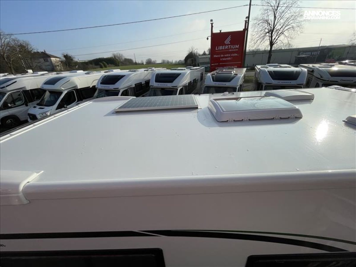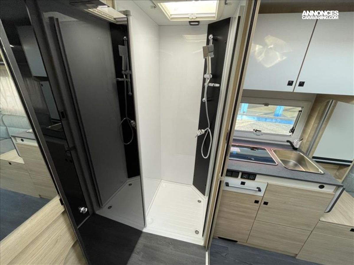 Feux antibrouillard, Jantes acier avec enjoliveurs 16'' gris, Lanterneau panoramique (ou double lanterneau), Climatisation automatique de cabine, Frein à main électrique, Sièges de cabine pivotants réglables en hauteur avec double, Fenêtres double-vitrage avec combiné stores moustiquaire, Feux et essuie-glaces automatiques, Toit panoramique cabine ouvrant, Pré-équipement TV, Rétroviseurs électriques dégivrants, Régulateur / limiteur de vitesse, Charnières placards amorties, Prises USB/USB-C, Pare-chocs avant peint, Chauffage sur carburant utilisable en roulant, Eclairage de auvent, Précâblage caméra de recul, Fixations Isox, Isolation Marche d'entrée, START & STOP, ESP, Porte cellule XL (60 cm) avec fenêtre, Rideaux de séparation cabine/cellule