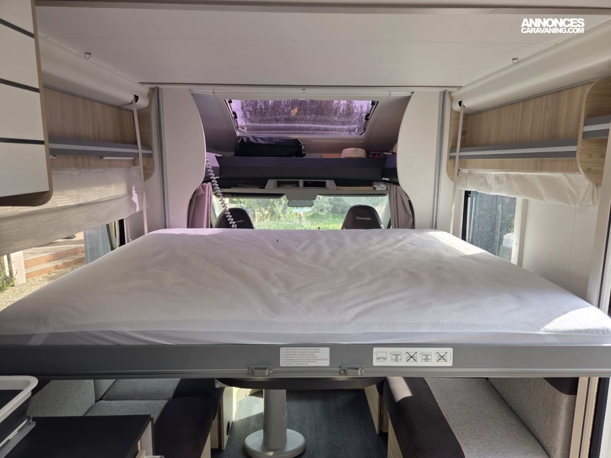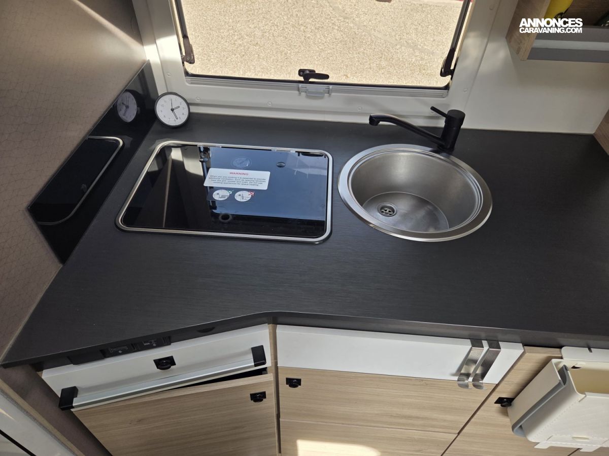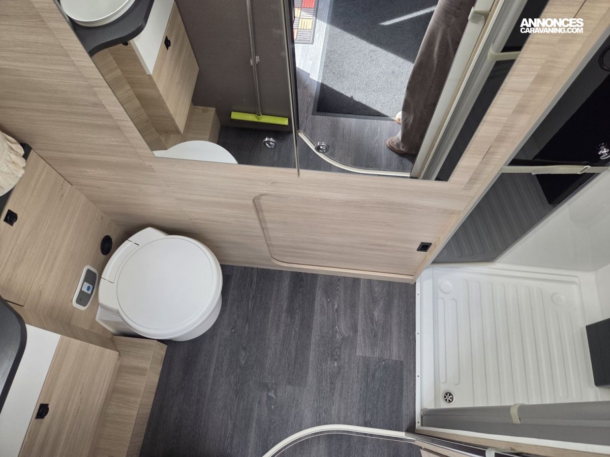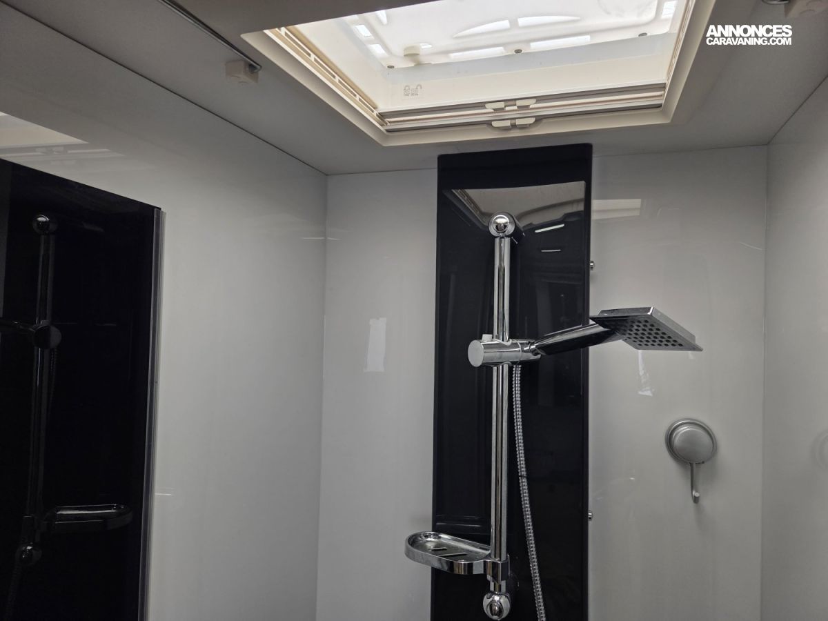 Ce modèle très recherché offre un maxi salon face-face lumineux et convivial, un grand lit pavillon électrique (160 x 190) pour un confort optimal, ainsi qu’une salle de bain spacieuse avec espace douche indépendant.