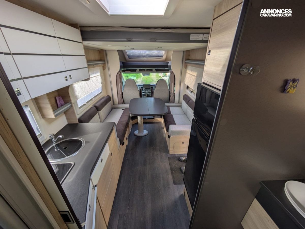 Le Chausson 640 First Line est le compagnon idéal pour ceux qui veulent vivre la route autrement. Son vaste salon face à face crée un véritable espace de vie, tandis que le lit pavillon électrique libère un intérieur modulable et prêt pour l’aventure. Motorisé par le puissant Ford 170 ch Euro 6, il offre une conduite sûre et agréable sur tous les terrains. Avec son panneau solaire 155 W, son store F45S et sa TV 19 pouces, il est autonome et confortable pour partir loin, longtemps et librement. Un camping‑car pensé pour explorer, découvrir et profiter sans contrainte