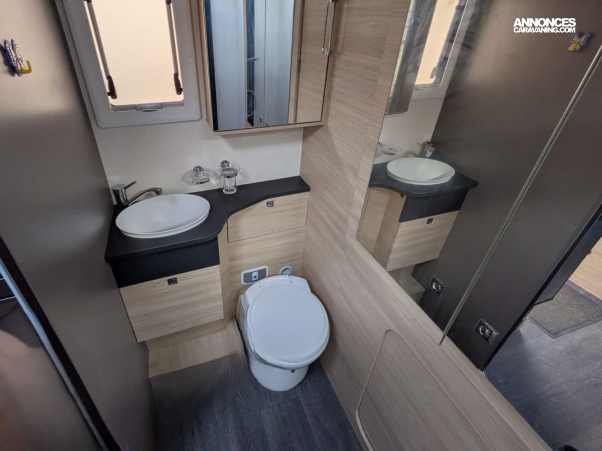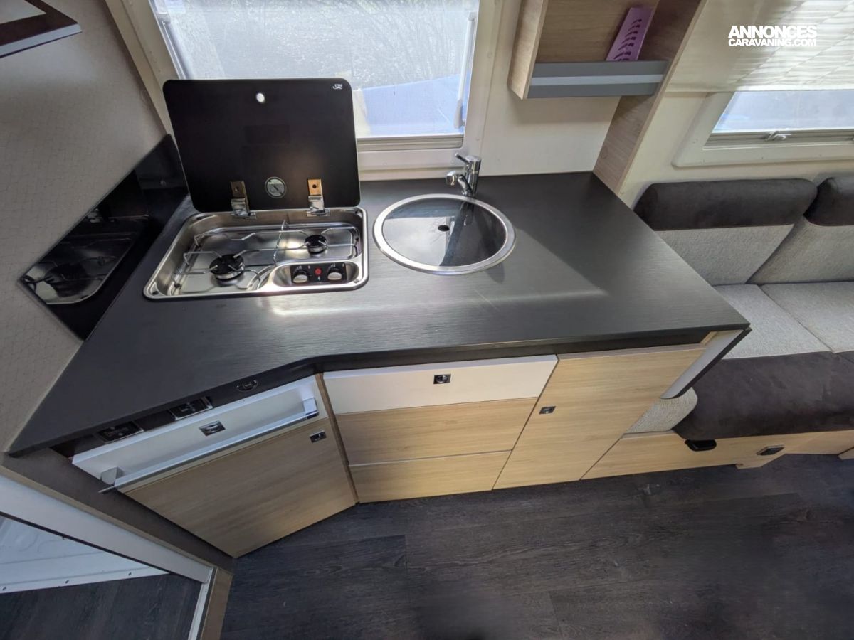 STORE EXTERIEUR 4M, GAZINIERE 2 FEUX, FENETRE SDB, DOUCHE ET WC SEPARES, ECLAIRAGE LED, PORTE VELO, REFRIGERATEUR TRI MIX, DOUBLE CLOISON DE SEPARATION, SALON FACE A FACE