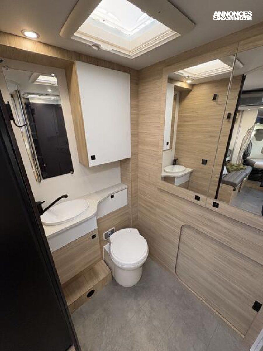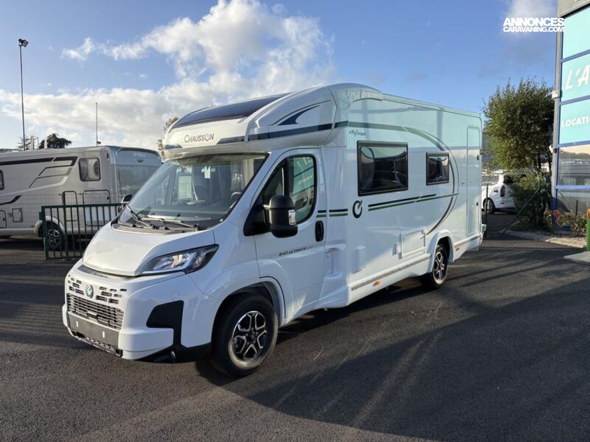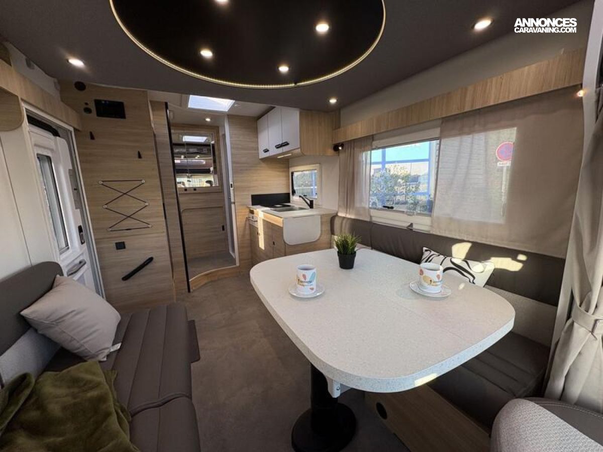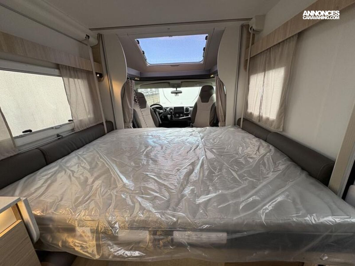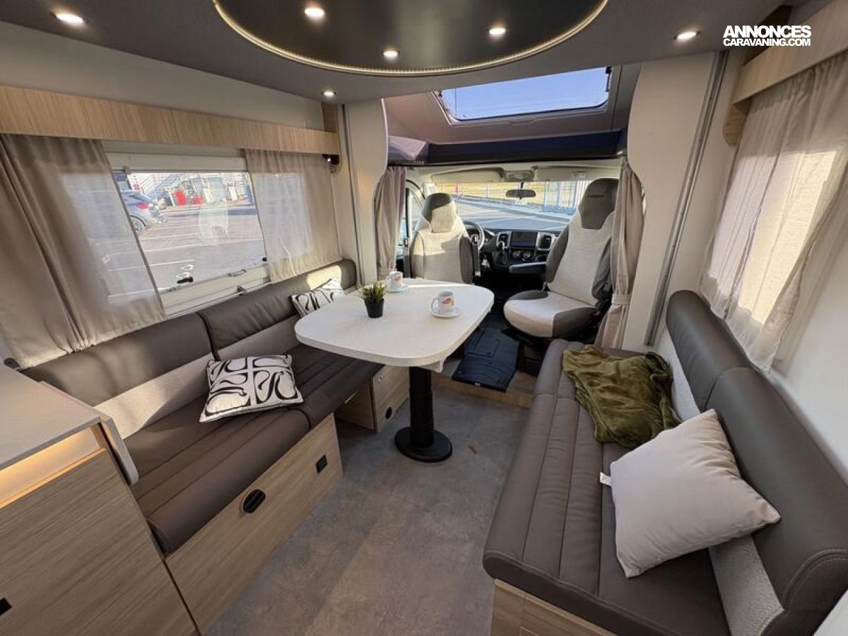 SERIE SPECIALE Ultimate Line Châssis blanc, Climatisation manuelle de cabine, Double airbag, Fix and go, Sièges de cabine pivotants réglables en hauteur avec double accoudoir, Housses de sièges cabine assorties à l’ambiance cellule, Rétroviseurs électriques dégivrants, Régulateur / limiteur de vitesse, ESP, Traction +, Hill descent control, Eco pack FIAT : Stop&Start, alternateur intelligent, pompe à carburant à gestion électronique, Isolation marche d'entrée, Toit panoramique cabine ouvrant, Lanterneau panoramique (ou double lanterneau), Rideaux de séparation cabine/cellule, Fenêtres double-vitrage avec combiné stores moustiquaire, Voilages, Charnières placards amorties, Prises USB/USB-C, Conception IRP : toit plancher parois polyester, Technibox, Pare-chocs avant peint, Pneus 4 saisons, Feux antibrouillard, Porte d’entrée avec fermeture centralisée porteur cellule, Pré-équipement TV, Chauffage sur carburant utilisable en roulant, Eclairage d'auvent, Penderie, Pré-disposition panneau solaire (MPPT ready), Précâblage caméra de recul, Fixations Isofix : 0 €