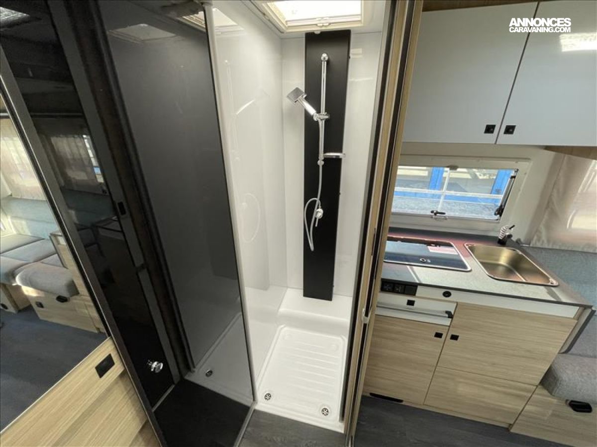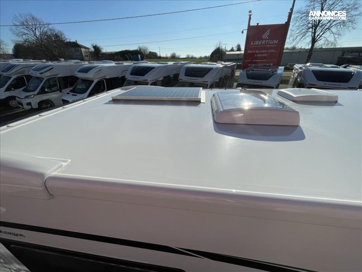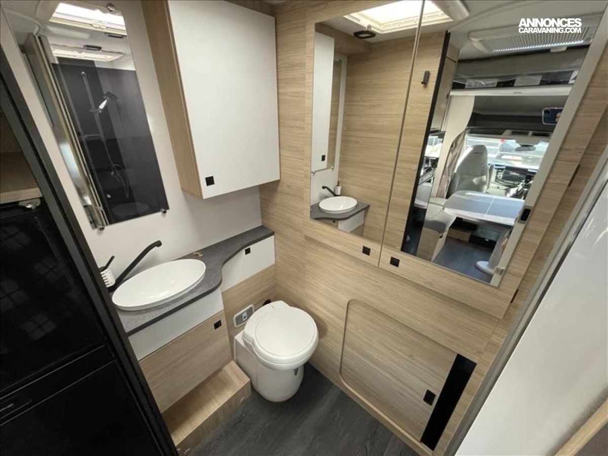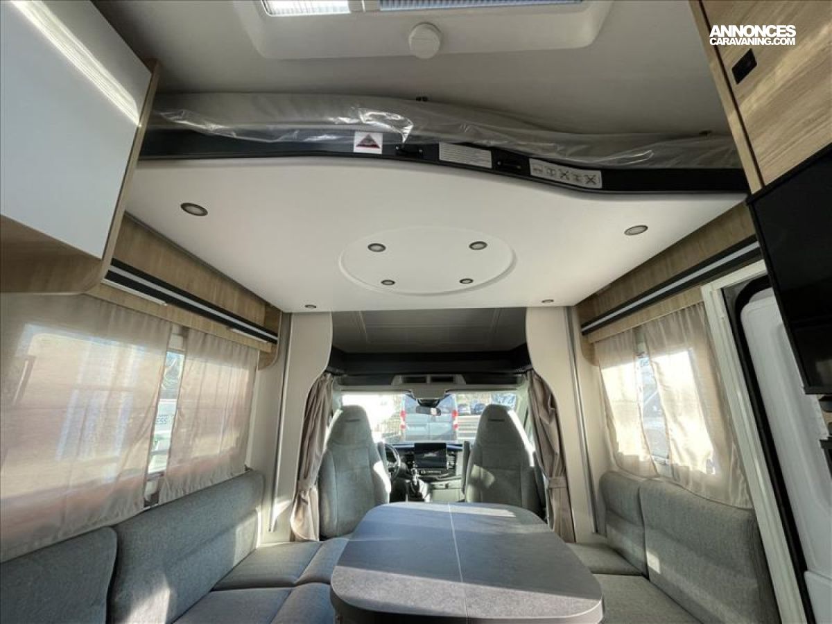 START & STOP, Isolation Marche d'entrée, • Rideaux de séparation cabine/cellule, Fenêtres double-vitrage avec combiné stores moustiquaire, Prises USB/USB-C, Climatisation automatique de cabine, ESP, Porte cellule XL (60 cm) avec fenêtre, Jantes acier avec enjoliveurs 16'' gris, Feux et essuie-glaces automatiques, • Feux antibrouillard, Chauage sur carburant utilisable en roulant, Toit panoramique cabine ouvrant, Lanterneau panoramique (ou double lanterneau), Fixations Isox, Précâblage caméra de recul, Pré-équipement TV, Double airbag, Frein à main électrique, Sièges de cabine pivotants réglables en hauteur avec double, Housses de siège cabine assorties à l’ambiance cellule, Rétroviseurs électriques dégivrants, Régulateur / limiteur de vitesse, Pare-chocs avant peint, Pré-disposition panneau solaire (MPPT ready), Eclairage de auvent