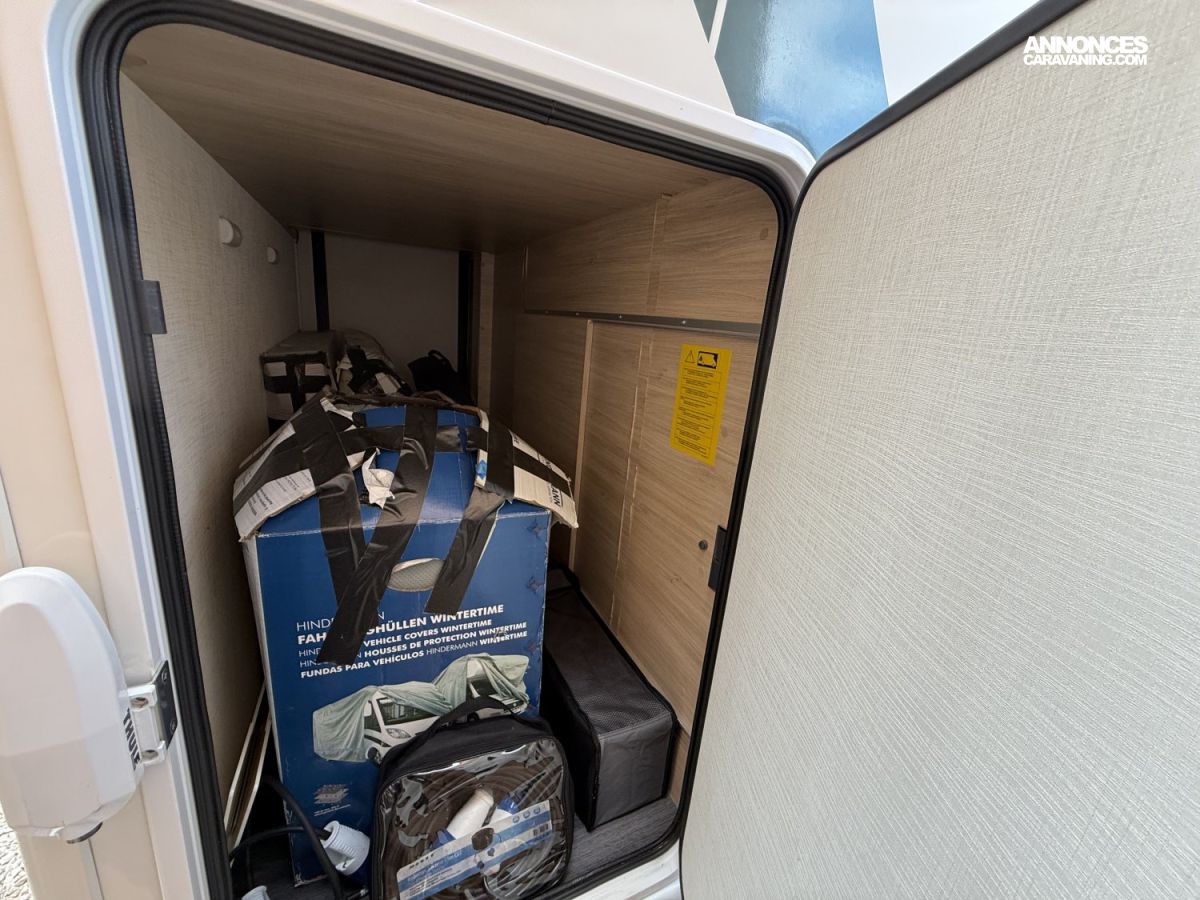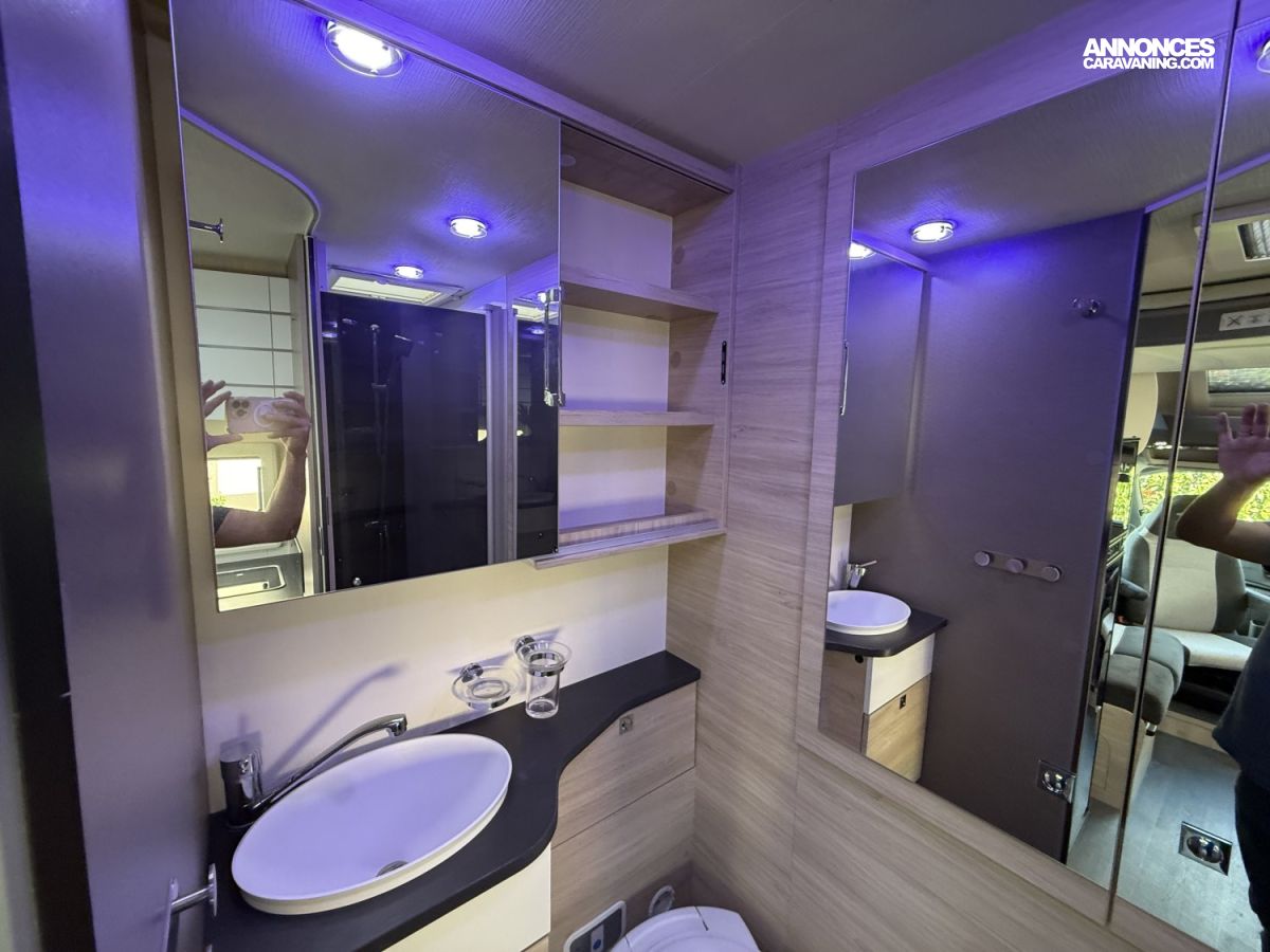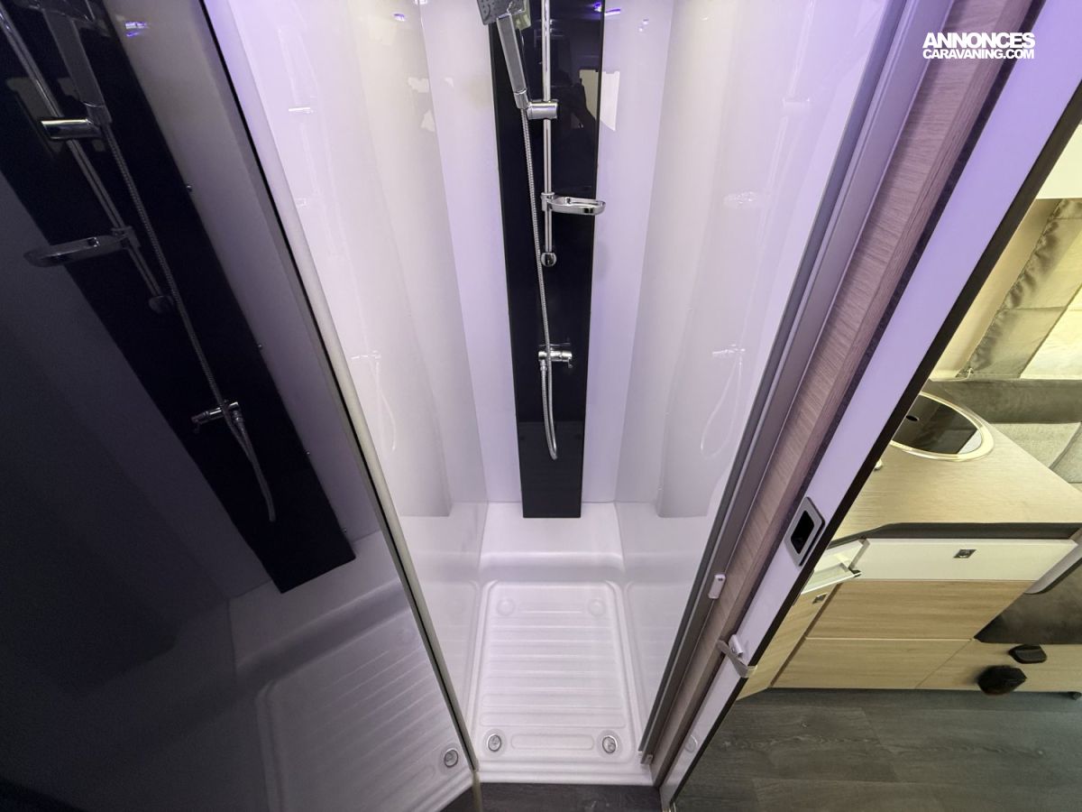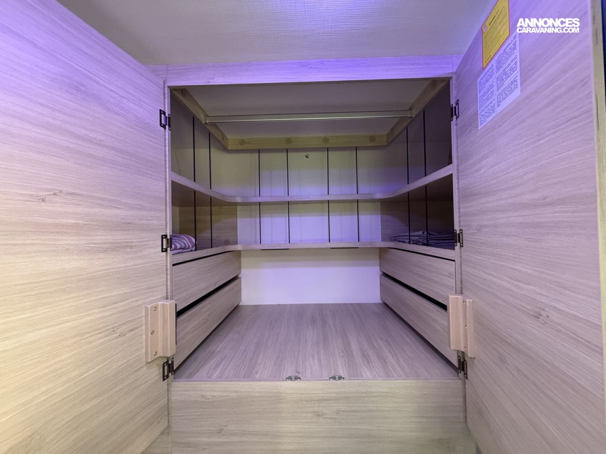 Ce véhicule est également doté d’un store extérieur, d’une TV 24’’ avec antenne satellite automatique, de stores occultants REMIS, et d’un éclairage LED intégral pour une ambiance chaleureuse à bord.