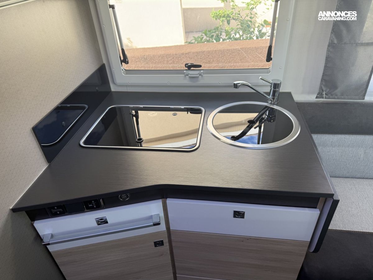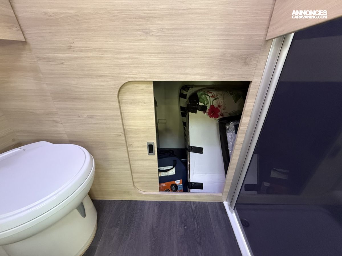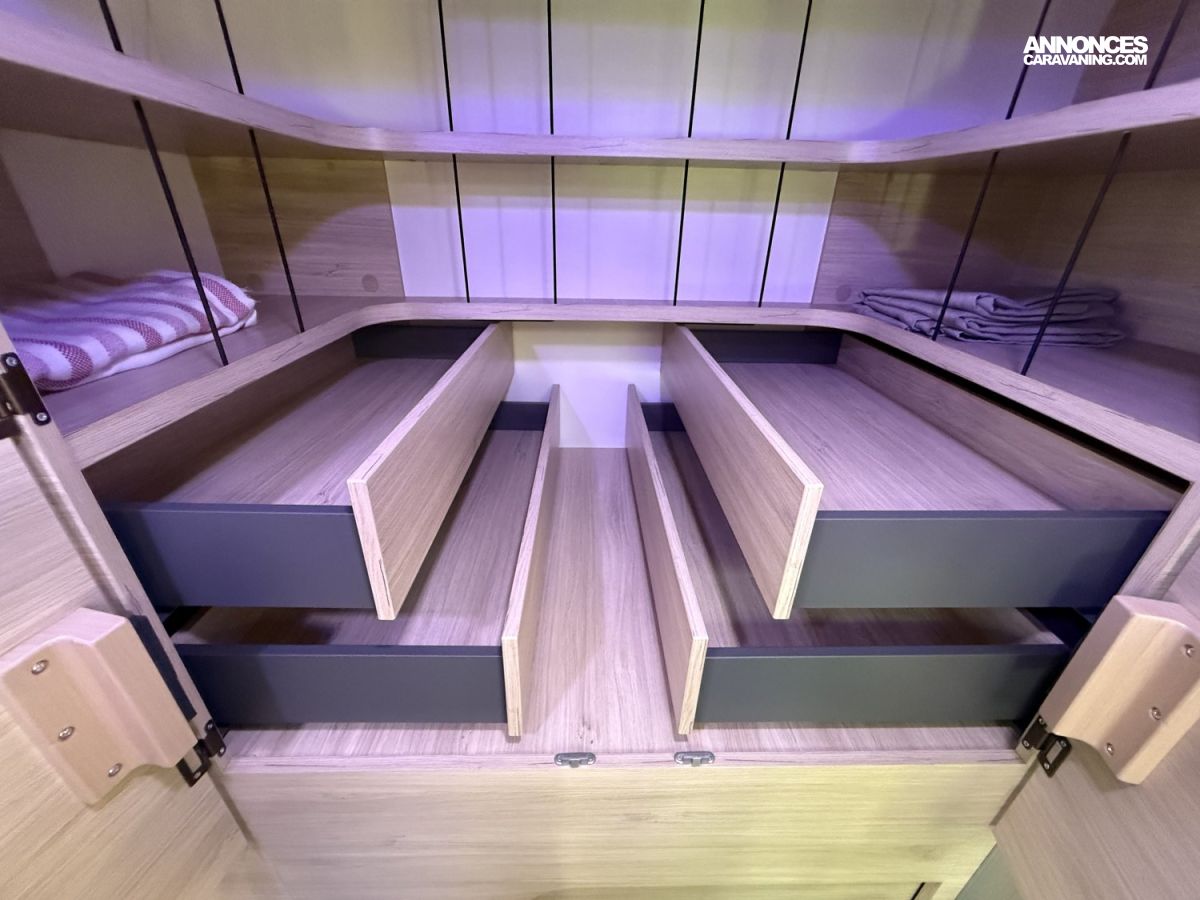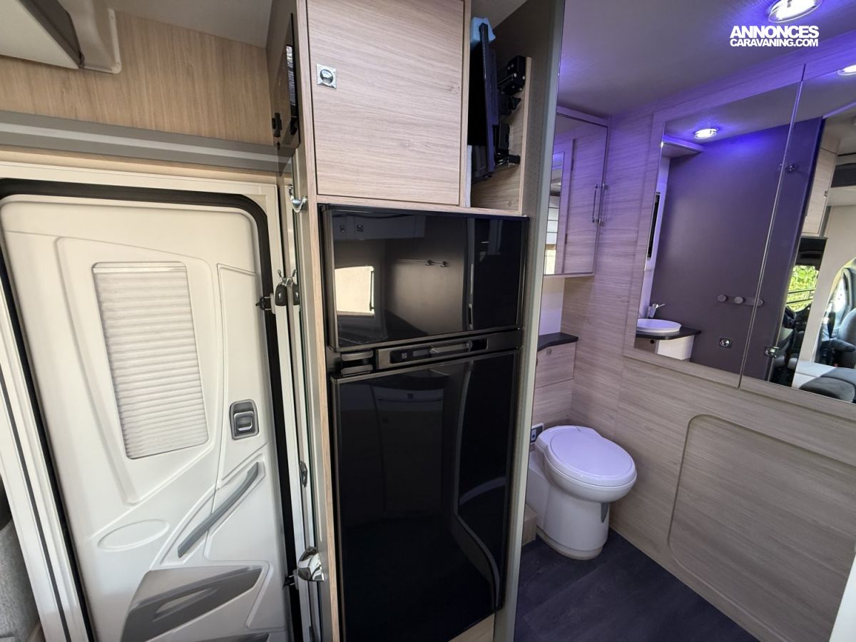 Ce véhicule est également doté d’un store extérieur, d’une TV 24’’ avec antenne satellite automatique, de stores occultants REMIS, et d’un éclairage LED intégral pour une ambiance chaleureuse à bord.