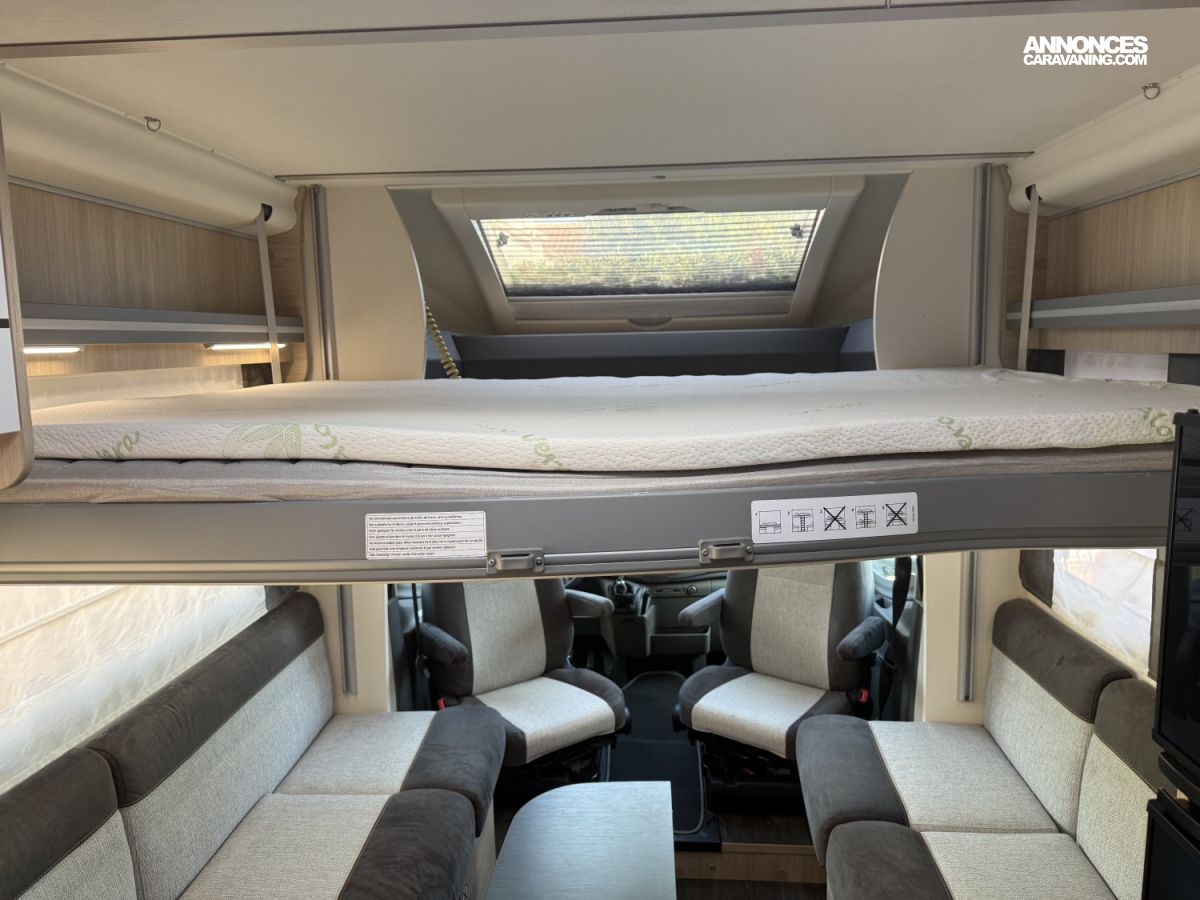 CHAUFFAGE CARBURANT, FRIGO 140L AVEC TIROIR 9BOUTEILLES, STORE EXTERIEUR 4M, GAZINIERE 2 FEUX, ECLAIRAGE LED, MOQUETTE CABINE, MOUSTIQUAIRE DE PORTE CELLULE, REFRIGERATEUR TRI MIX, STORES PLISSES DE CABINE, VOLET ISOTHERME INTERIEUR, SALON FACE A FACE, SUN ROOF OUVRANT, TABLE TELESCOPIQUE ELECTRIQUE