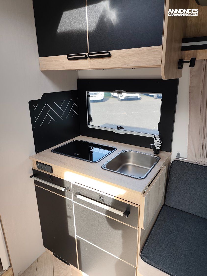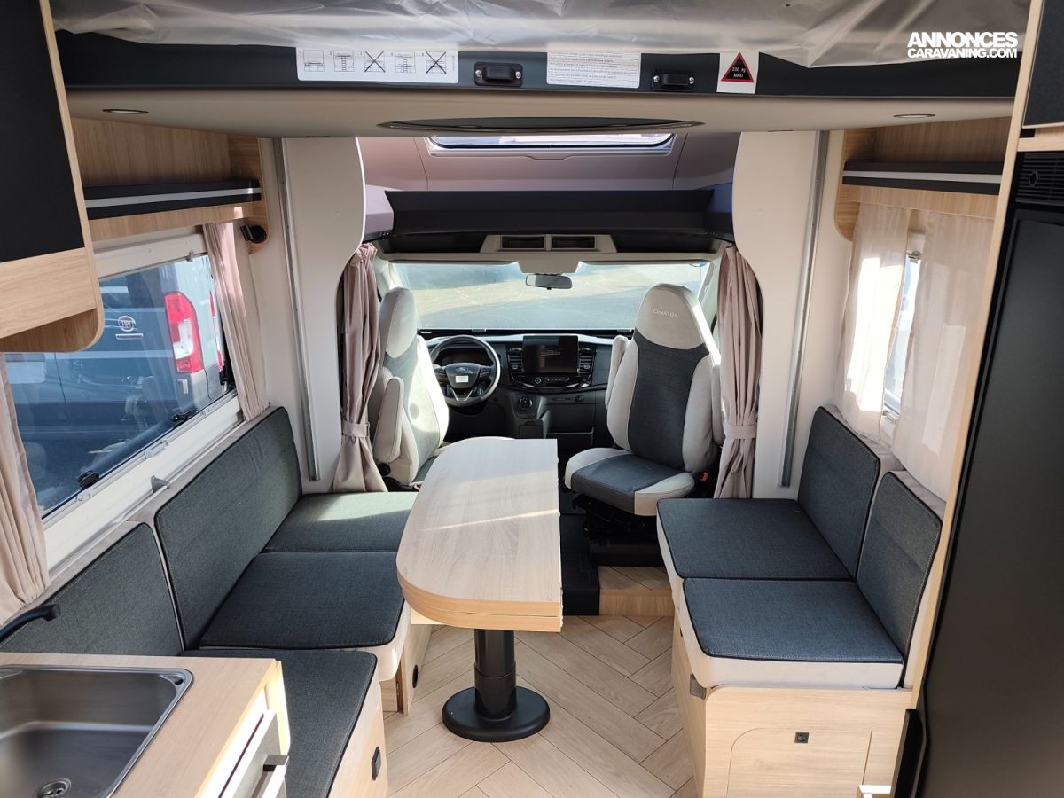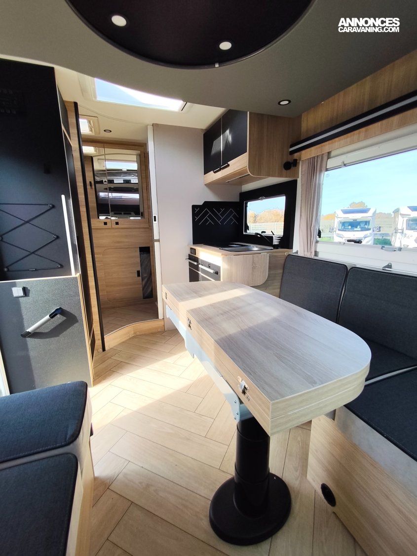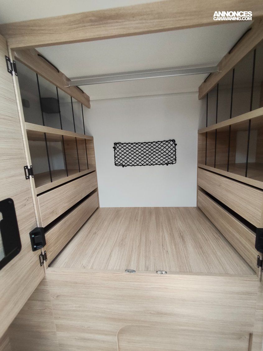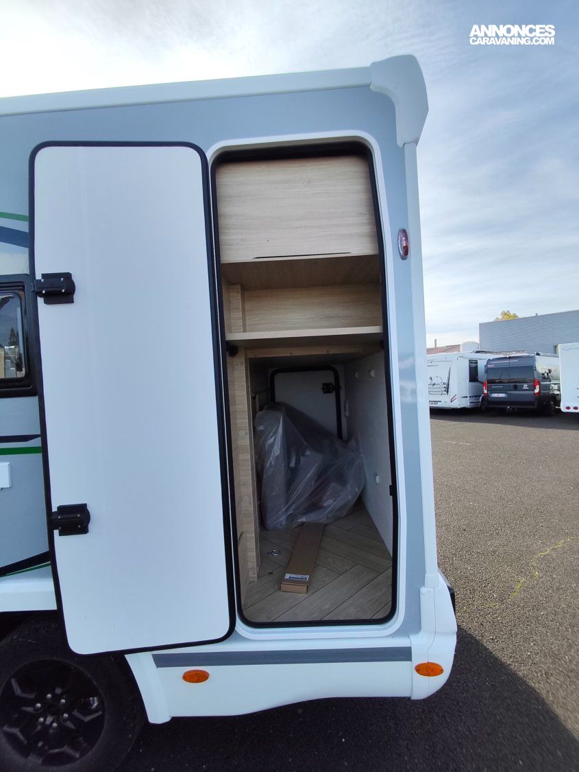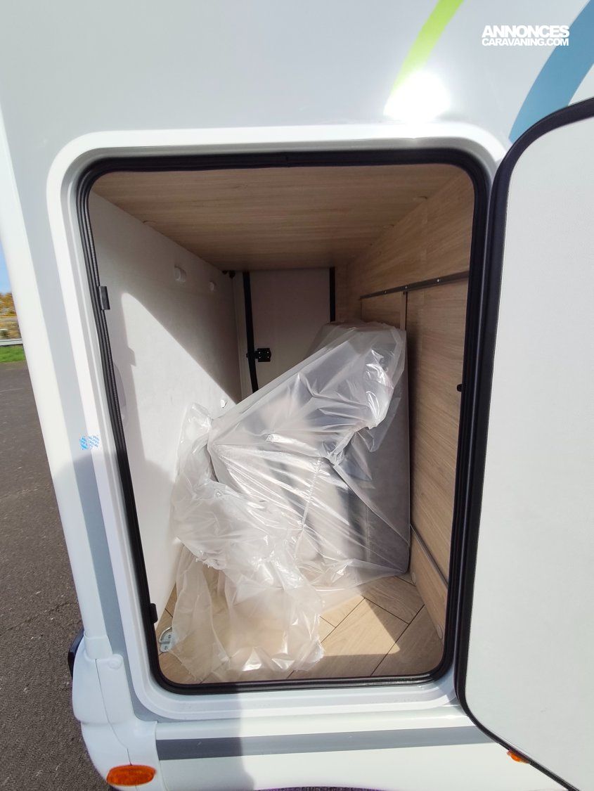 De belles capacités de rangements et de la compacité : Voici le camping-car profilé 650 ! A l'arrière un grand dressing et une soute pour accueillir les vélos, salle d'eau transversale et à l'avant le salon Smart Lounge et un lit de pavillon pour deux. A noter le passage de la porte d'entrée mesure 60 cm de large.
