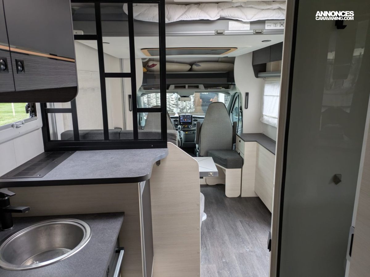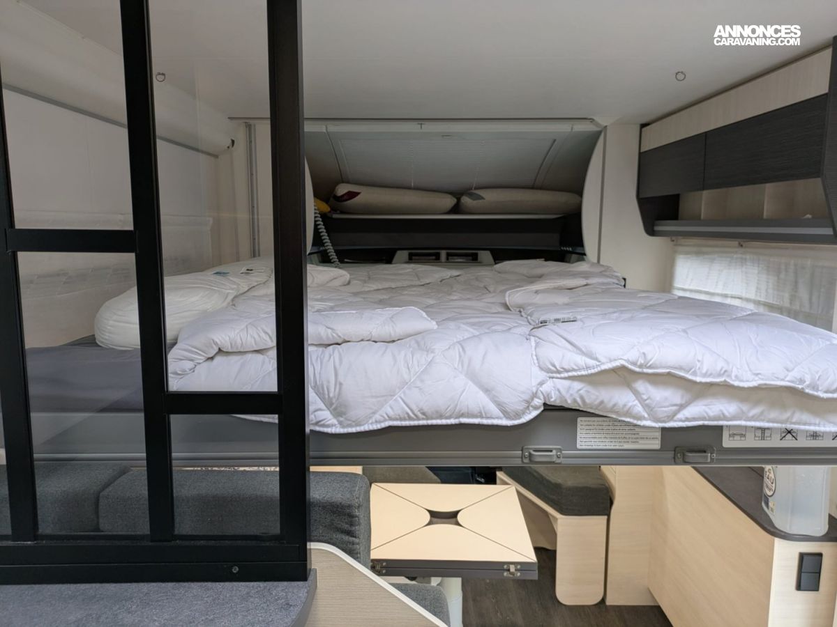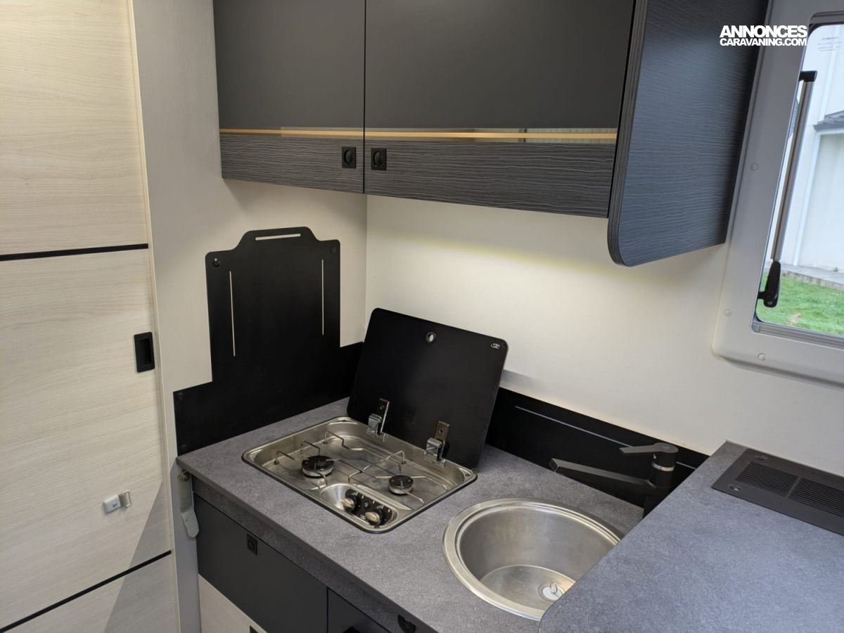 CHAUFFAGE CARBURANT, FRIGO 140L AVEC TIROIR 9BOUTEILLES, STORE EXTERIEUR 4.5M, CLIMATISATION CELLULE 220V, GAZINIERE 2 FEUX, FENETRE SDB, CUISINE EN L, ECLAIRAGE LED, MOUSTIQUAIRE DE PORTE CELLULE, PORTE VELO, RALLONGE DE TABLE, LANTERNEAU PANORAMIQUE, MARCHEPIED INTÉGRÉ, PORTE CELLULE XL (passage 645mm)