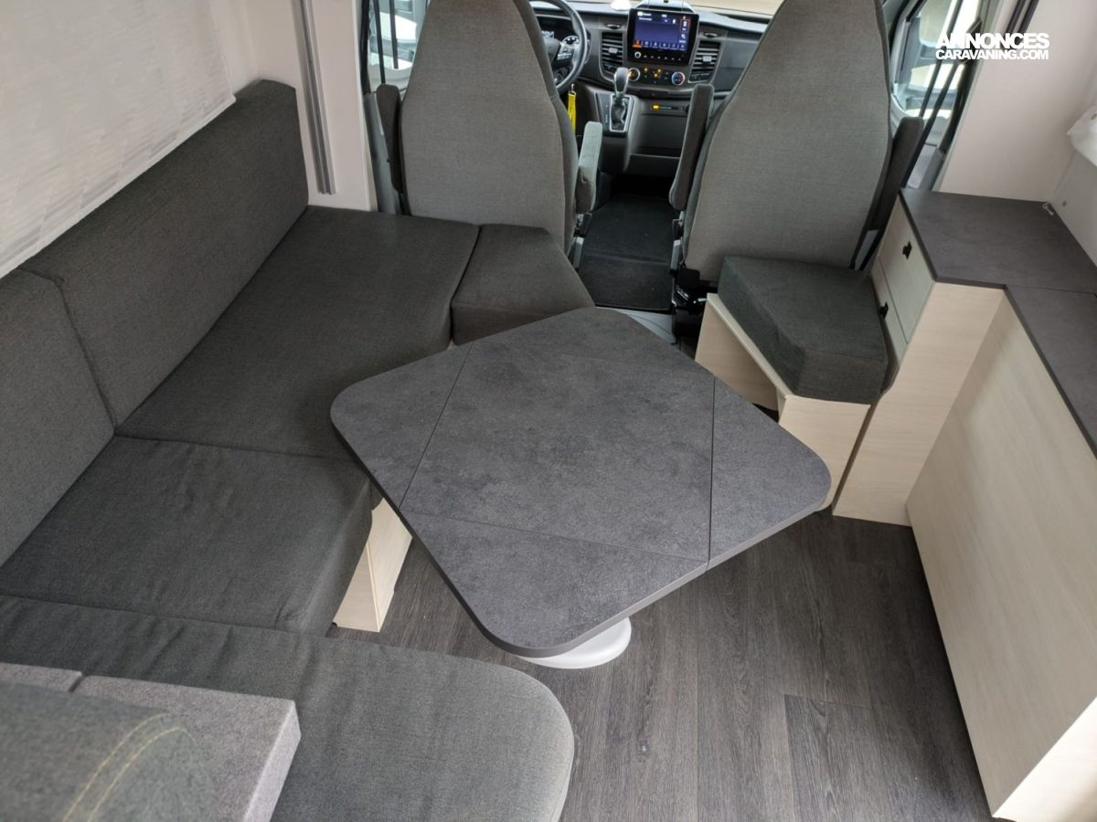 Sur la route, le Ford 170 ch associé à la boîte automatique vous offre une conduite douce, silencieuse, presque intuitive. Les paysages défilent, la cabine reste calme, et la technologie veille : caméra de recul, commandes au volant, multimédia complet, TV et antenne satellite automatique pour vos soirées où que vous soyez.