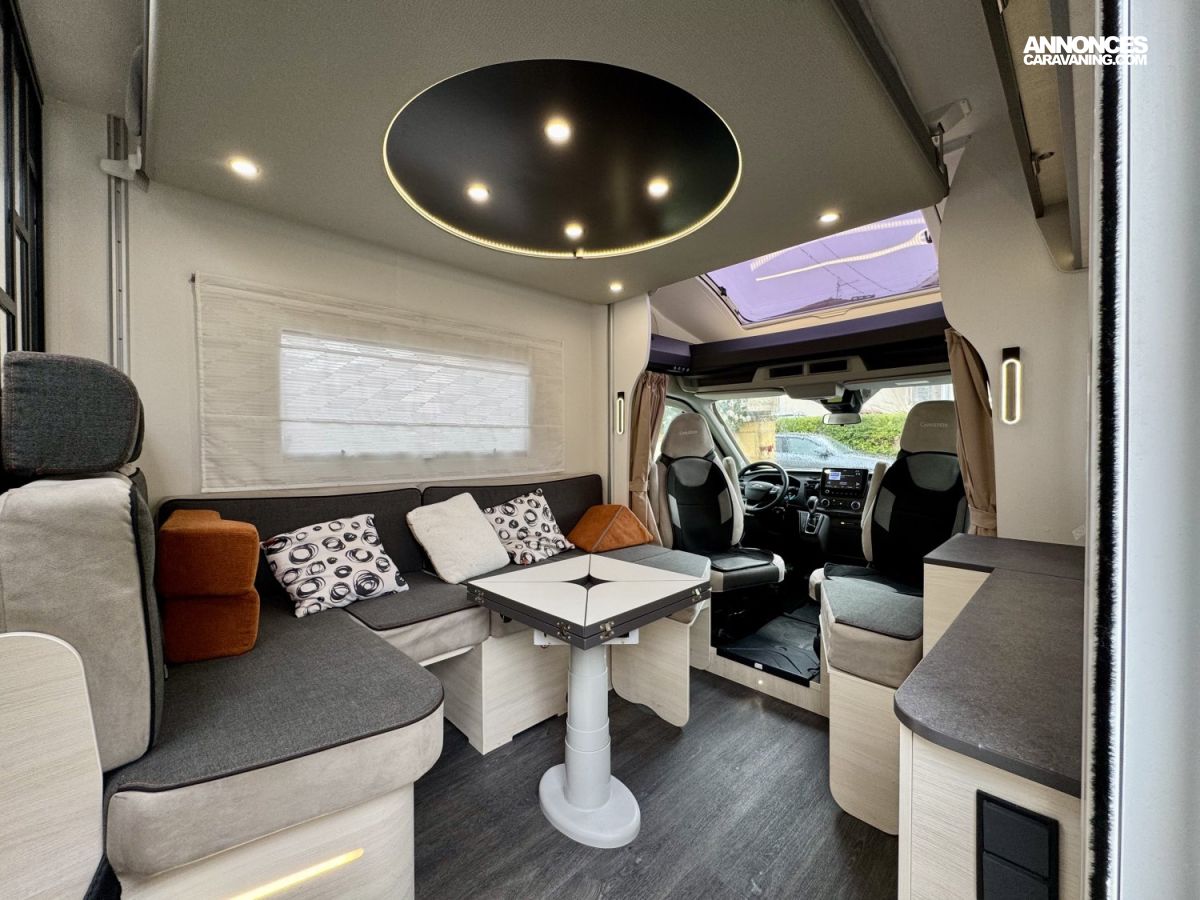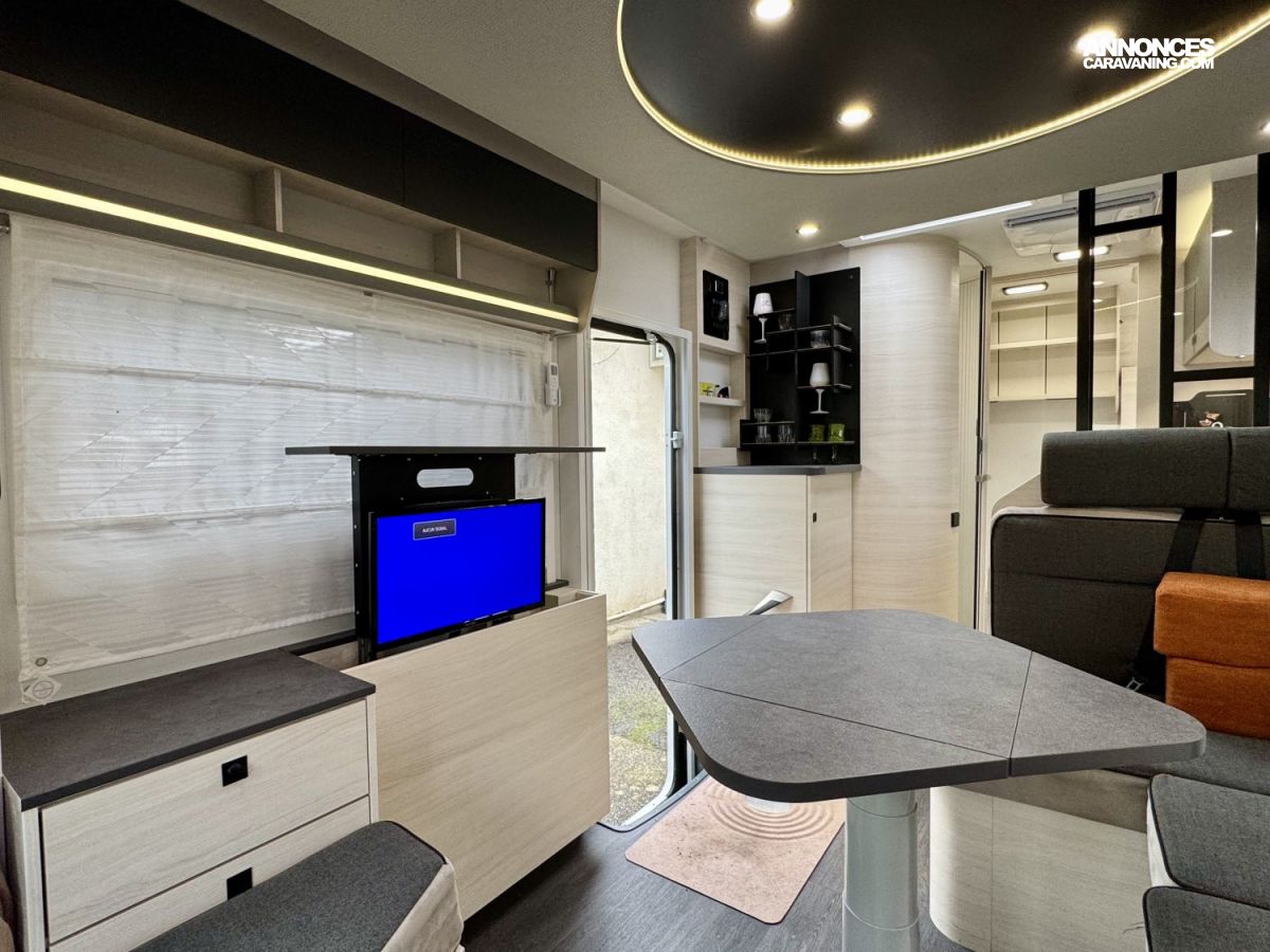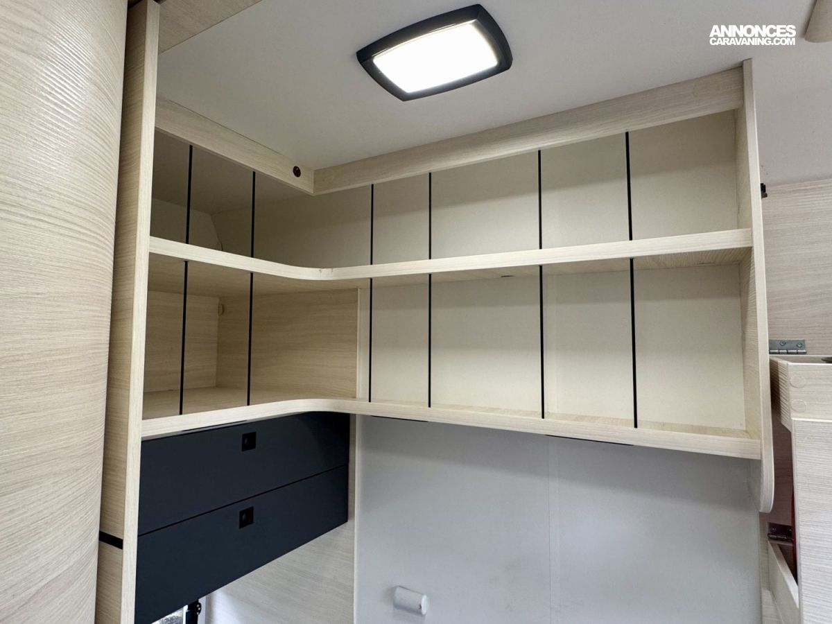 CHAUFFAGE CARBURANT, STORE EXTERIEUR 4M, PRISE GAZ EXTERIEURE, CLIMATISATION CELLULE 220V, FENETRE SDB, DOUCHETTE EXTERIEURE, ECLAIRAGE LED, MOUSTIQUAIRE DE PORTE CELLULE, PORTE VELO, RALLONGE DE TABLE, STORES PLISSES DE CABINE, VOLET ISOTHERME INTERIEUR, REFRIGERATEUR 12V A COMPRESSION, LANTERNEAU PANORAMIQUE, PORTE CELLULE XL (passage 645mm), SUN ROOF OUVRANT, SALLE D'EAU PIVOTANTE, EASY CHEF, TABLE TELESCOPIQUE ELECTRIQUE, CHAUFFE-EAU GAZ