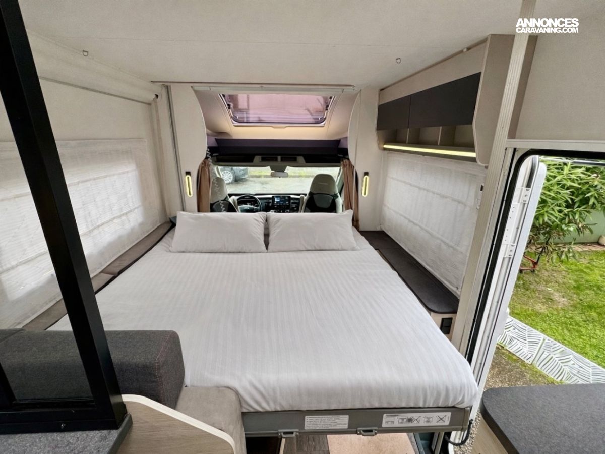 Facile à utiliser, le lit descend électriquement en quelques secondes et garantit un excellent confort pour vos nuits en voyage.