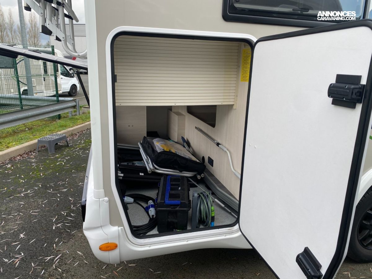 Prise de gaz extérieure, START & STOP, Feux et essuie-glaces automatiques, Frein à main électrique, Boite automatique 6 rapports, Feux antibrouillards, Housses de siège cabine assorties à l’ambiance cellule, Jantes alliage 16’’ noires, Porte d’entrée avec fermeture centralisée porteur cellule, Fenêtres double-vitrage avec combiné stores moustiquaire, Prises USB, Réfrigératuer gaz 12v/230v 141L AES, Rétroviseurs électriques dégivrants, Balisage LED au sol, Caillebotis de douche, Chauffage sur carburant utilisable en roulant, Climatisation manuelle de cabine, ESP, Lanterneau panoramique (ou double lanterneau), Miroir entrée rétro-éclairé, Douchette extérieure, Dressing avec tiroirs, Eclairage marche d'entrée, Sièges de cabine pivotants réglables en hauteur, Support TV, Toit panoramique cabine ouvrant