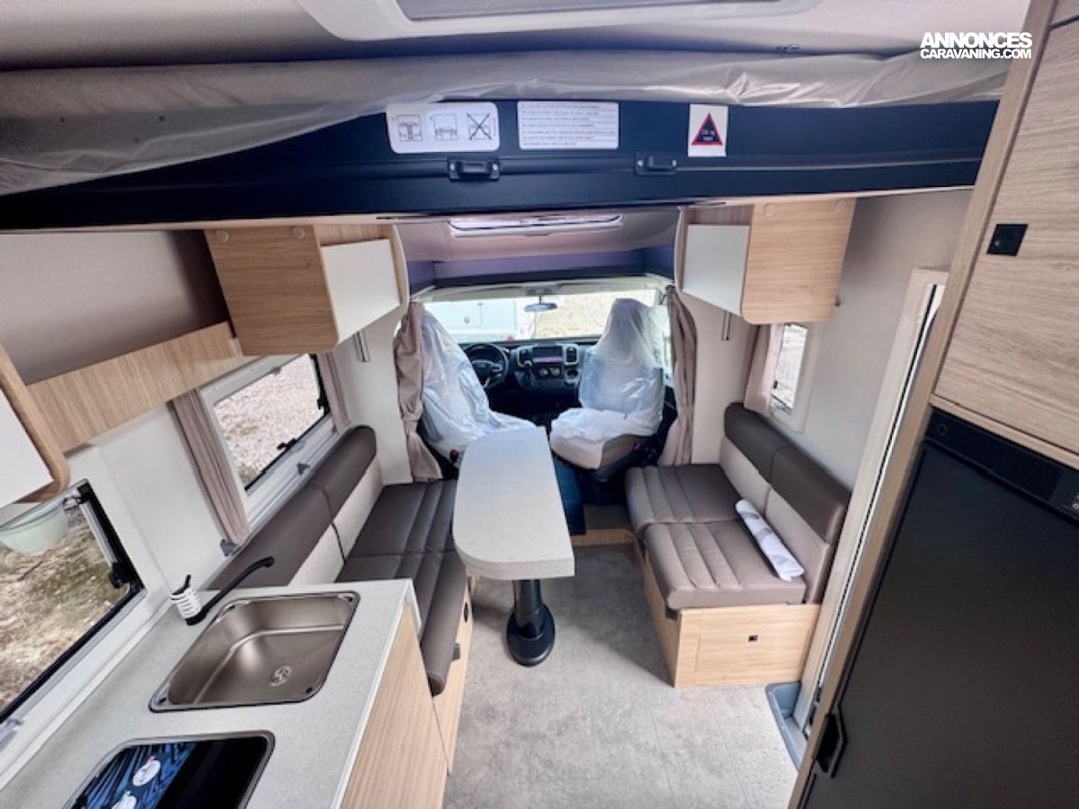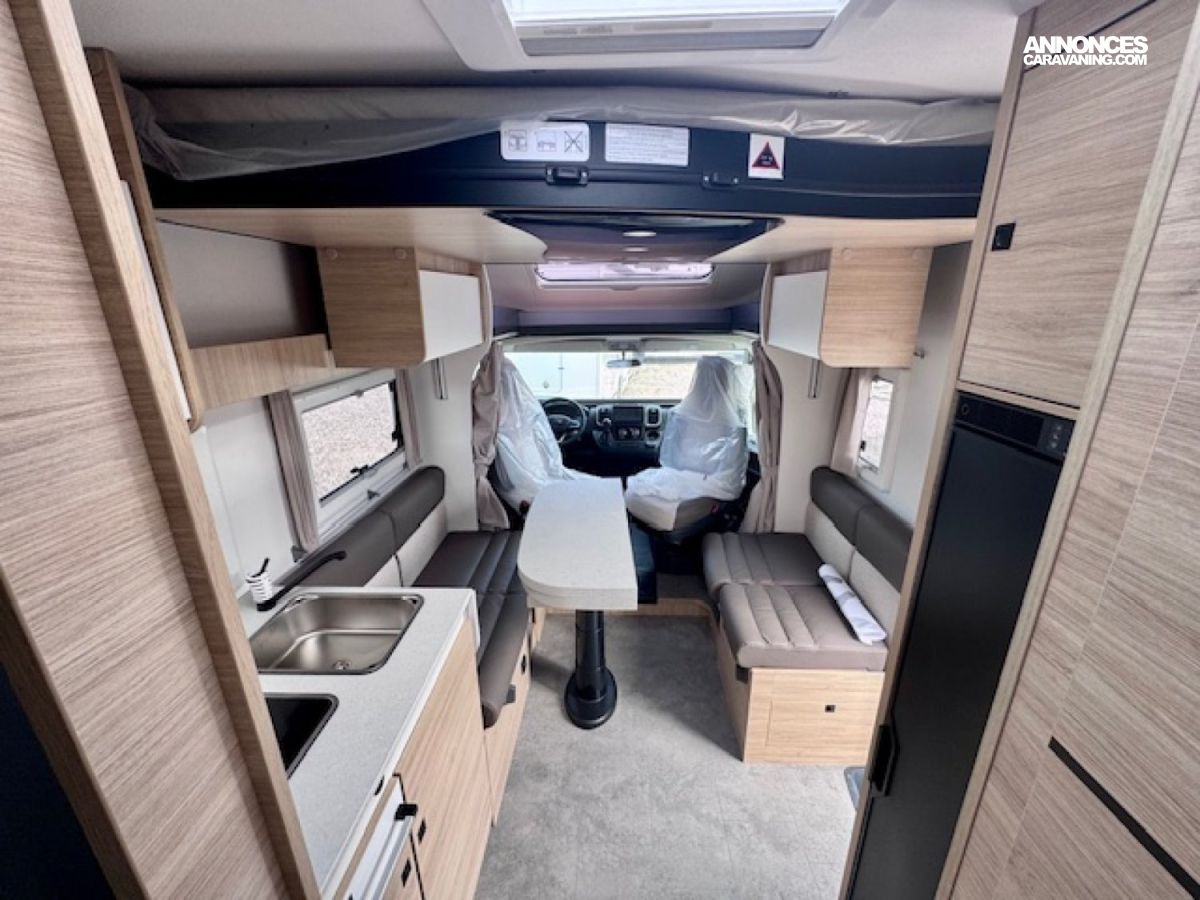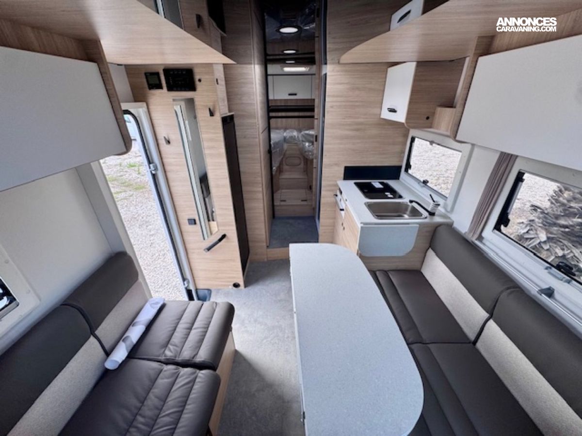 Sans dépasser les 7.40m, vous découvrirez l élégance française avec des lits jumeaux (90 par 196) sur garage, un salon face-à-face Smartlounge rappelant la convivialité des repas partagés et une salle de bain avec double cloisonnement et astucieusement conçue, à la fois pratique et raffinée. Chaque détail a été pensé pour simplifier et rendre vos pauses inoubliables. Notre modèle expo possede aussi un lit pavillon de 140 par 190.