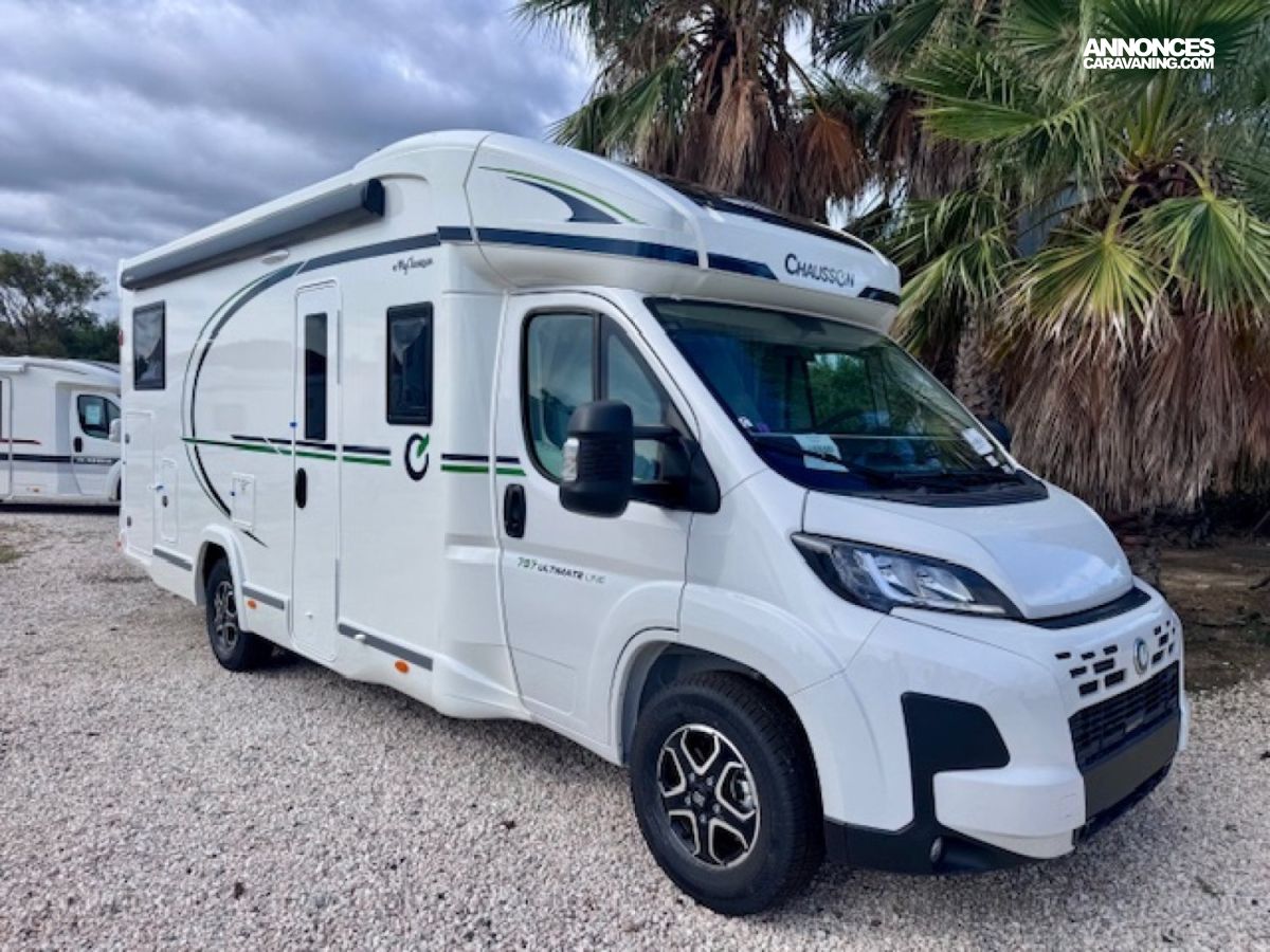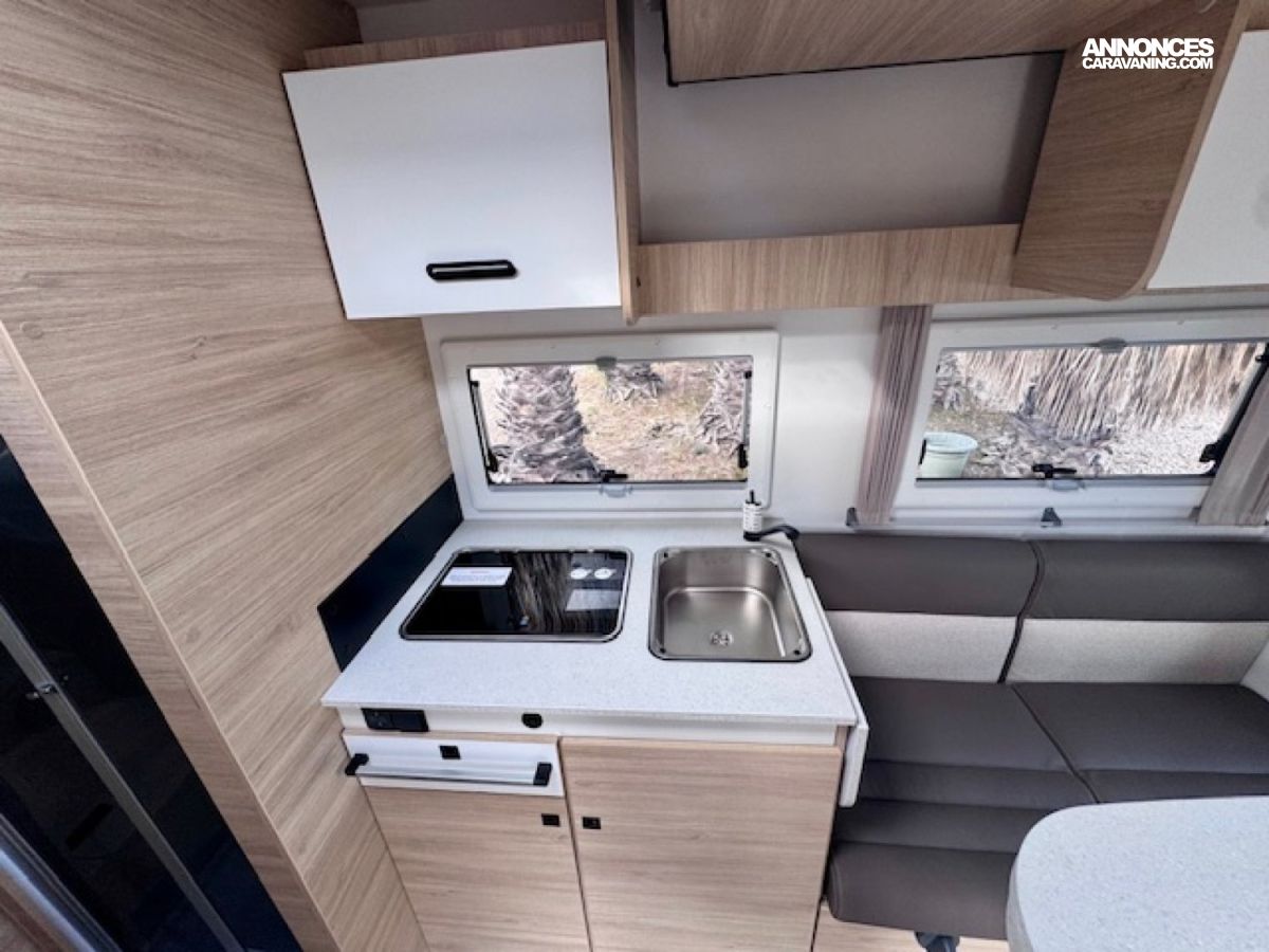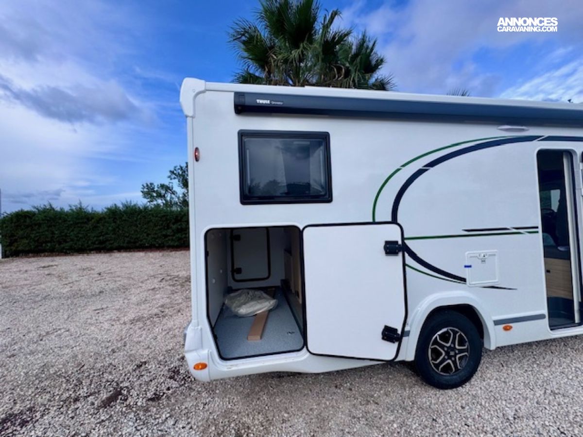 Sans dépasser les 7.40m, vous découvrirez l élégance française avec des lits jumeaux (90 par 196) sur garage, un salon face-à-face Smartlounge rappelant la convivialité des repas partagés et une salle de bain avec double cloisonnement et astucieusement conçue, à la fois pratique et raffinée. Chaque détail a été pensé pour simplifier et rendre vos pauses inoubliables. Notre modèle expo possede aussi un lit pavillon de 140 par 190.