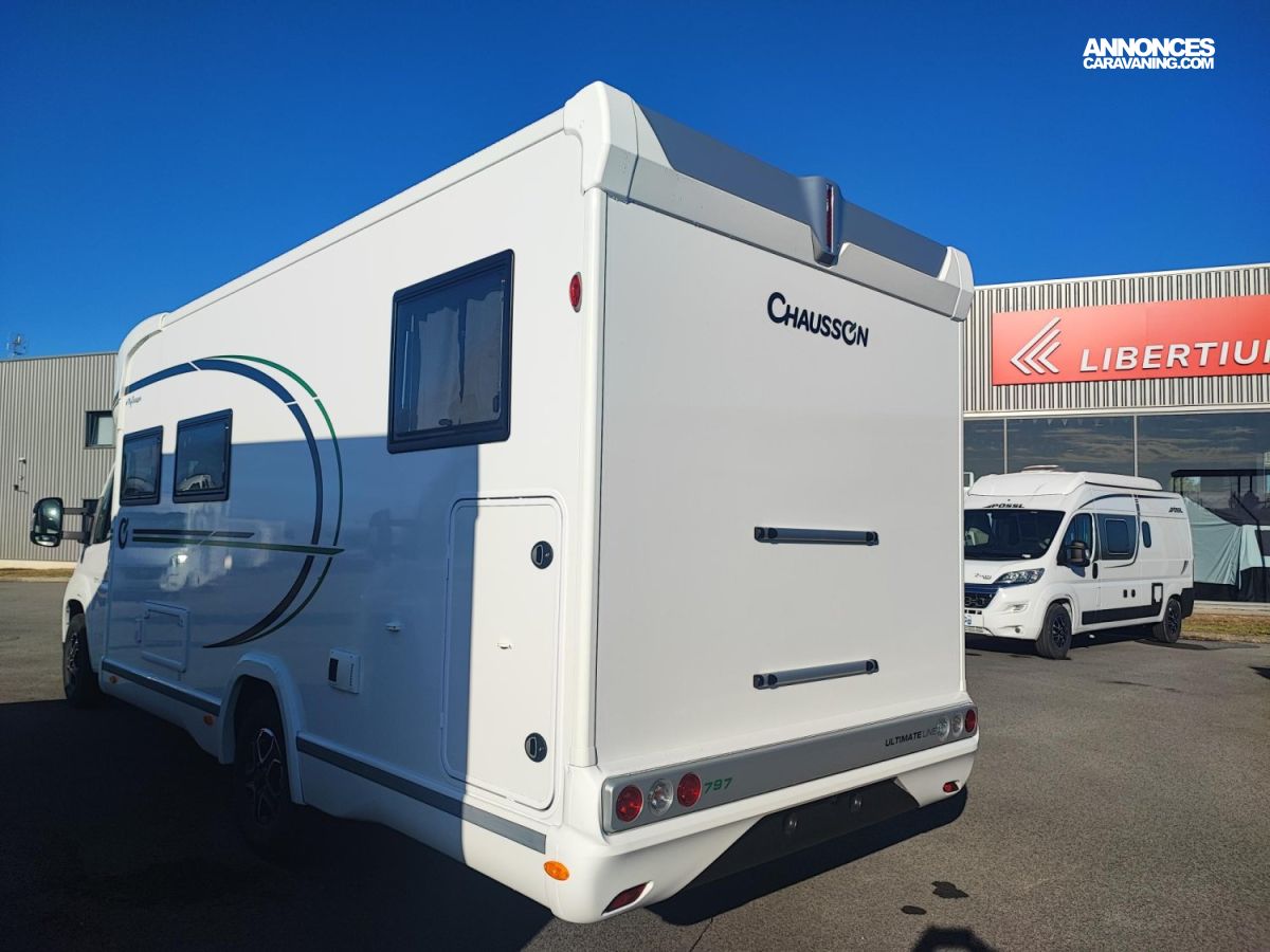 Envie de liberté en famille?? Le camping-car CHAUSSON 797 ULTIMATE LINE est fait pour vous?! Imaginez-vous sur la route, sans contrainte, à la recherche de nouveaux horizons, avec tout le confort à bord. Ce modèle vous offre un grand couchage ultra confortable, parfait pour des nuits paisibles après une journée d’aventure. Fini les disputes pour savoir qui dort où?! En plus, la boîte de vitesse automatique rend la conduite fluide et agréable, même sur les longs trajets ou les routes sinueuses. Plus besoin de stresser, tout le monde profite du voyage, que vous soyez en montagne, à la plage ou en pleine campagne. Avec le 797 ULTIMATE LINE, chaque étape devient un plaisir, chaque détour une découverte. Laissez-vous porter par l’envie de bouger, de changer de décor, de vivre à votre rythme. La liberté, c’est maintenant, et elle commence avec CHAUSSON?!