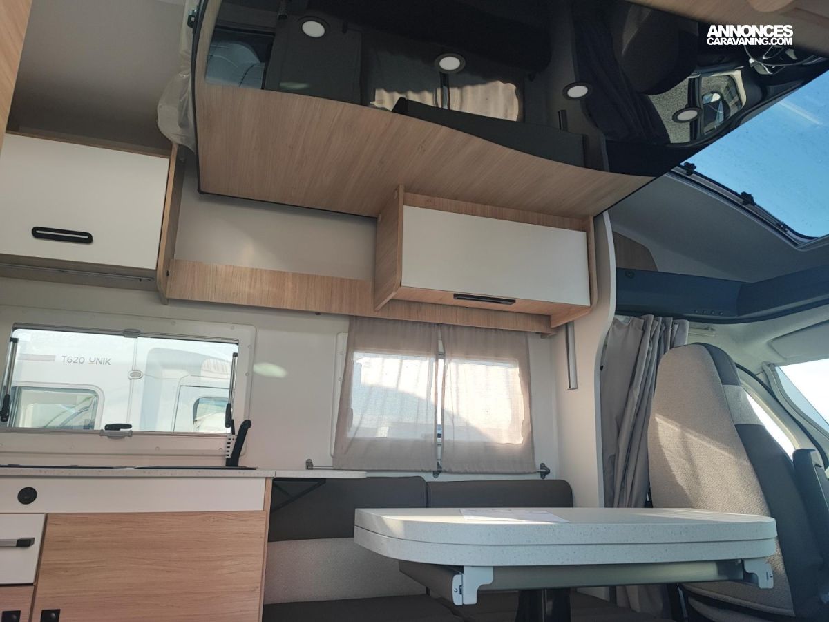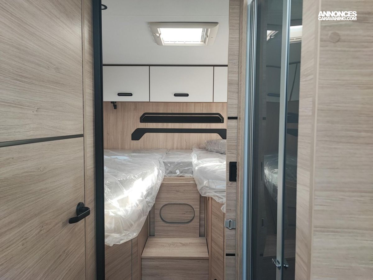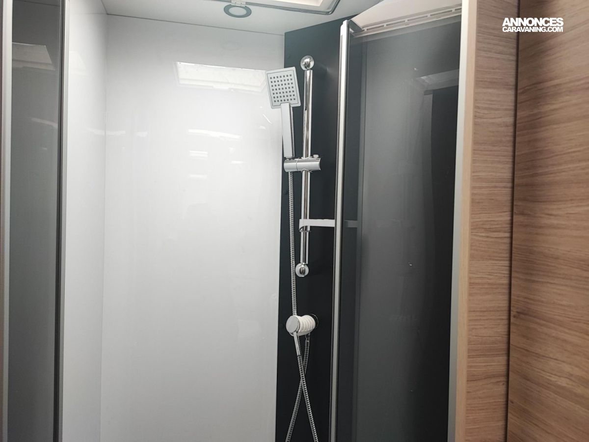 Chassis blanc, Chauffage sur carburant utilisable en roulant, Climatisation manuelle, Double airg bag, Feux antibrouillard, Hill descent control, Housses sièges cabine, Isolation marche d entrée, Pack connect, Pneus 4 saisons, Prises USB/USB-C, Rideaux de sépatration chambre, Réfrigérateur 140 L, Régulateur / limiteur de vitesse, Rétroviseurs électriques dégivrants, Sièges pivotants réglables en hauteur, Toit panoramique cabine ouvrant, Traction + / ESP / ECO PACK FIAT, Tête de lit