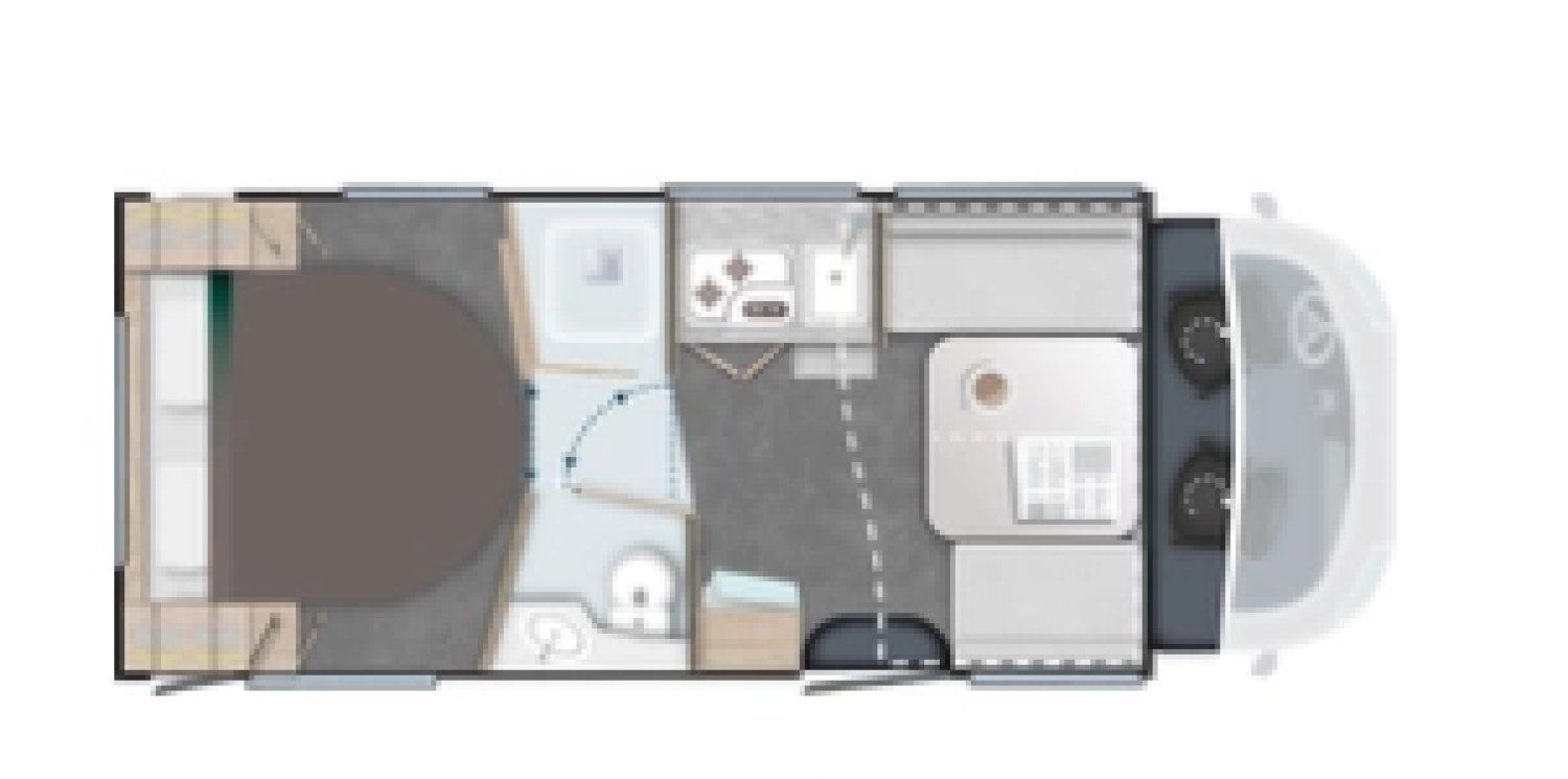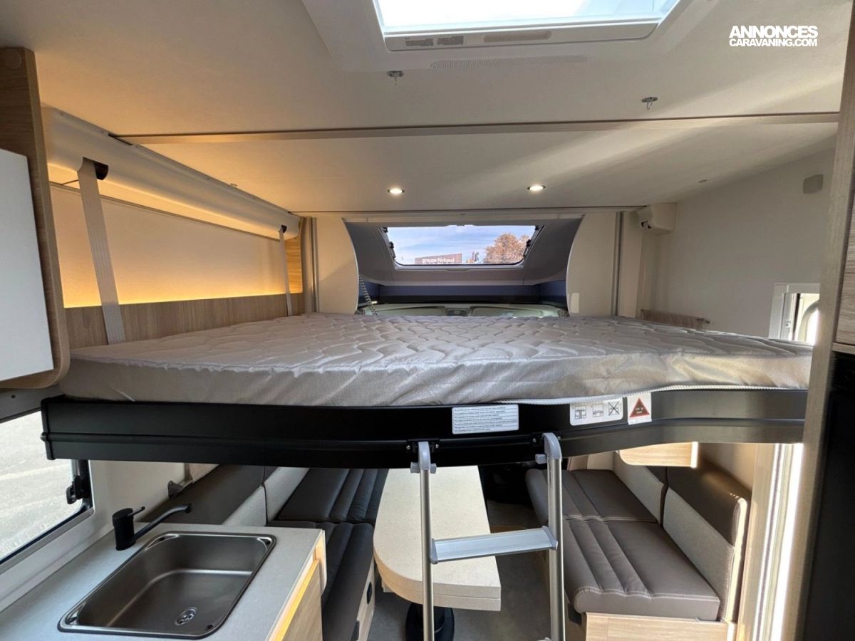 Le profilé 798 allie élégance et fonctionnalité pour des voyages tout confort. Son salon face-face crée un bel espace convivial, idéal pour partager les repas ou se détendre. À l’arrière, un lit central 160 cm garantit des nuits douces, tandis que la salle de bain à double cloisonnement permet une séparation parfaite des espaces. Un choix premium pour ceux qui veulent voyager sans compromis, à deux ou en duo d’amis.