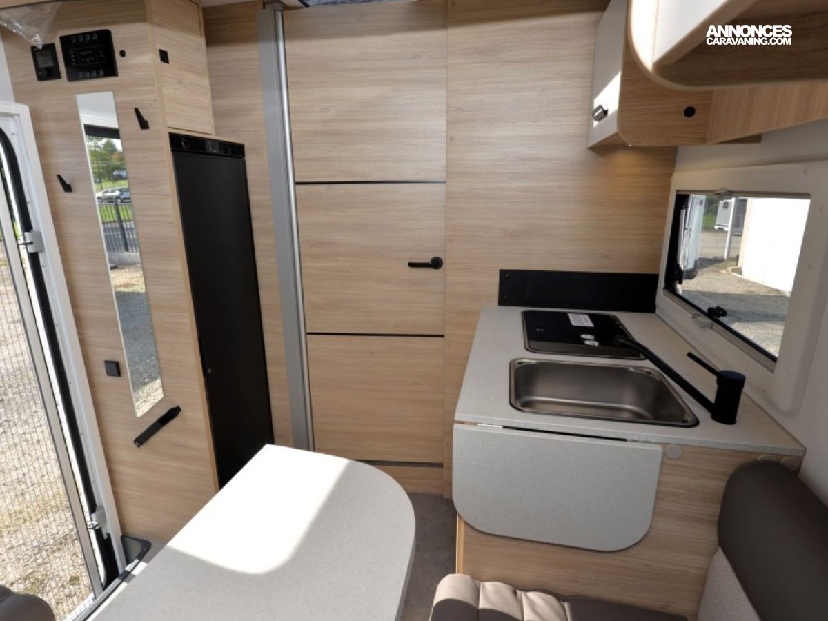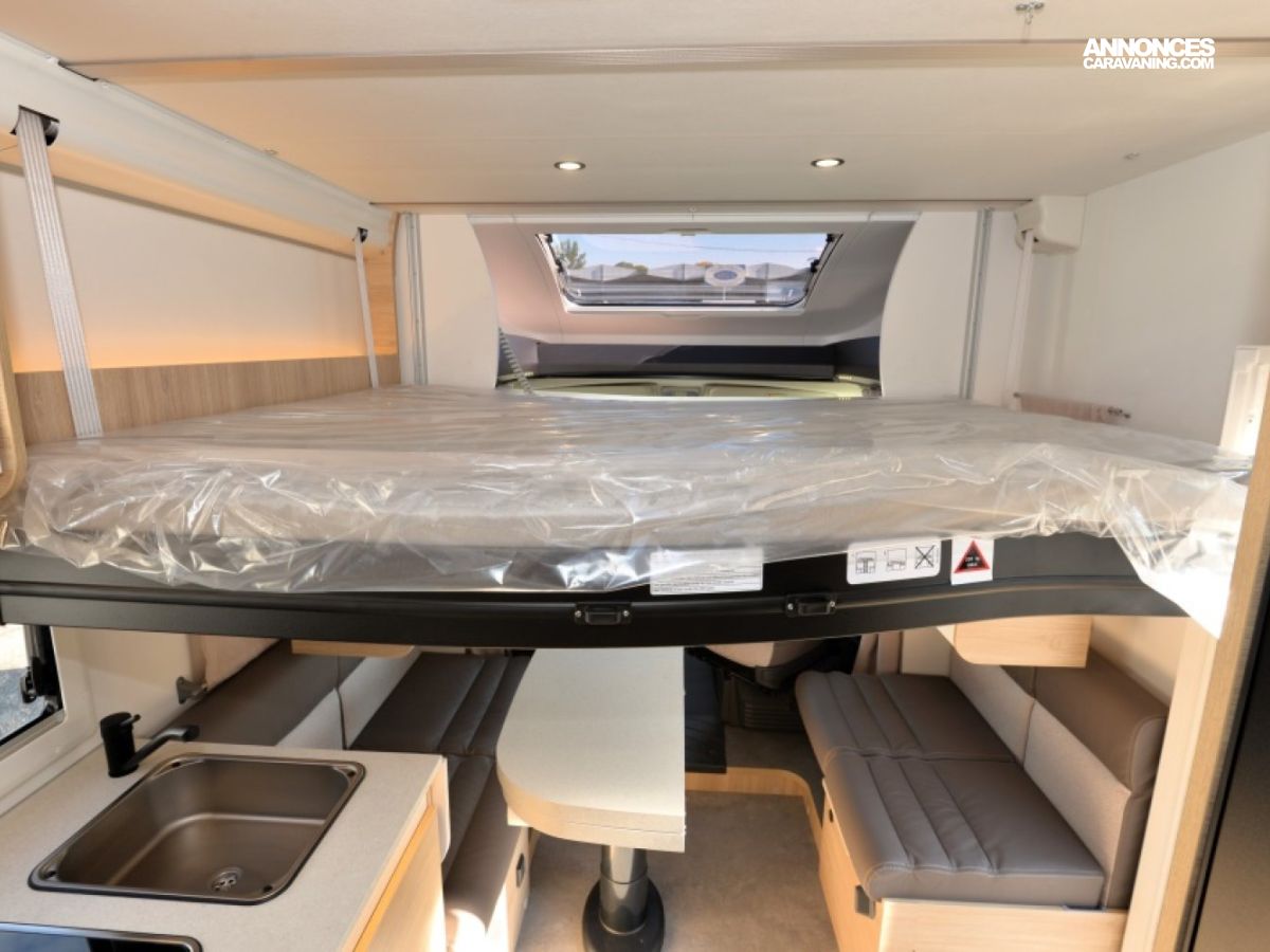 Le profilé 798 allie élégance et fonctionnalité pour des voyages tout confort. Son salon face-face crée un bel espace convivial, idéal pour partager les repas ou se détendre. À l’arrière, un lit central 160 cm garantit des nuits douces, tandis que la salle de bain à double cloisonnement permet une séparation parfaite des espaces. Un choix premium pour ceux qui veulent voyager sans compromis, à deux ou en duo d’amis.