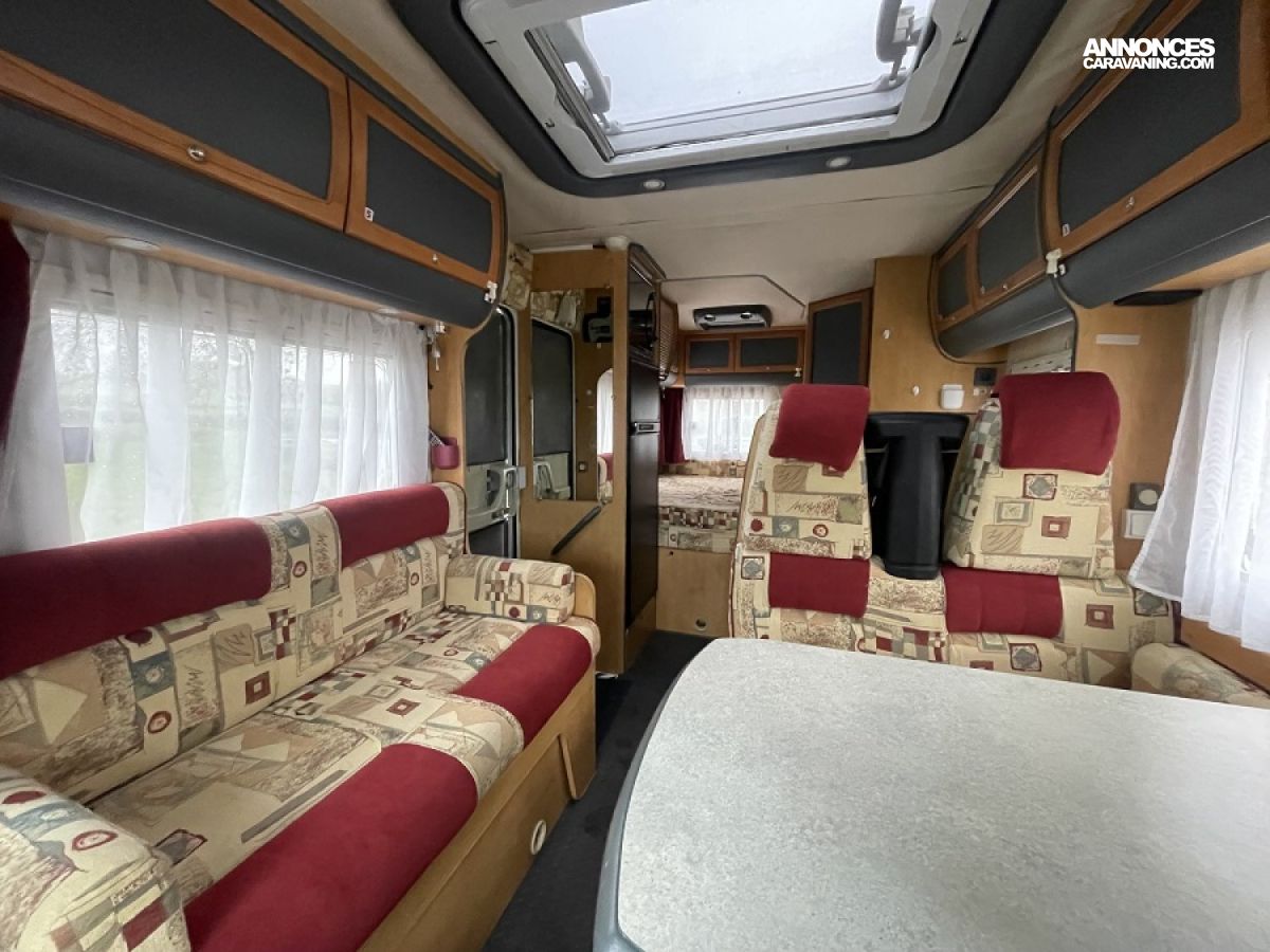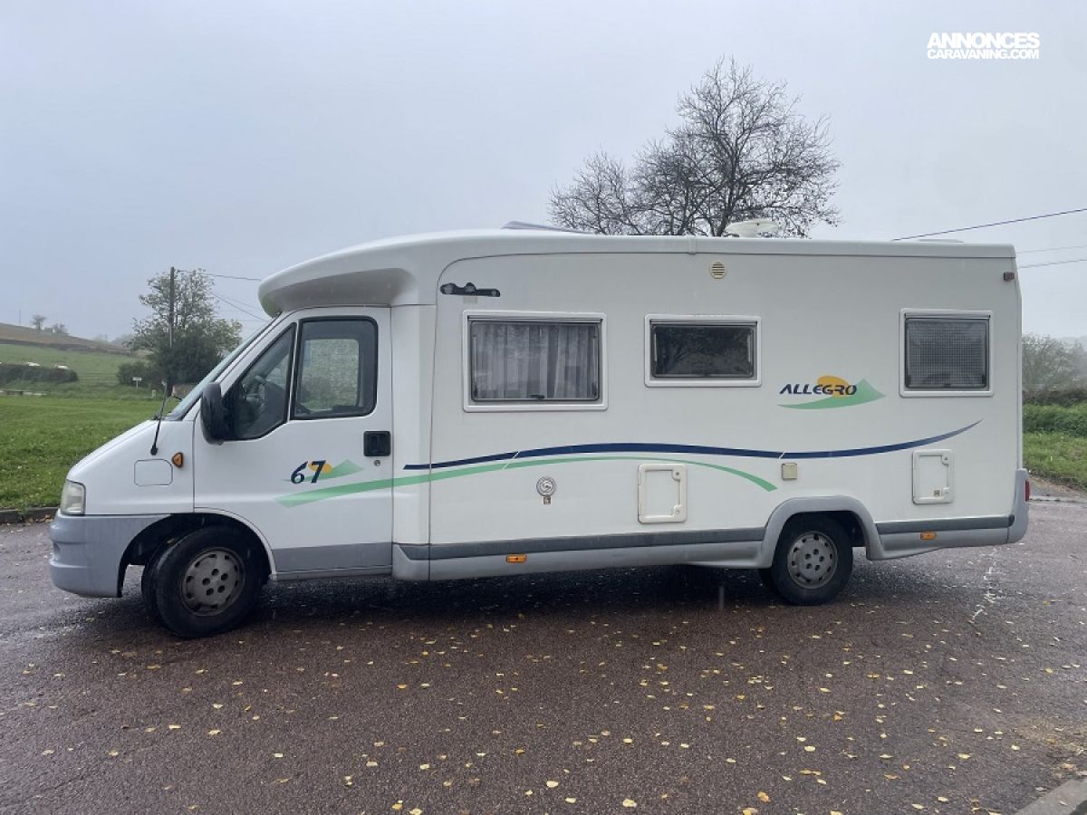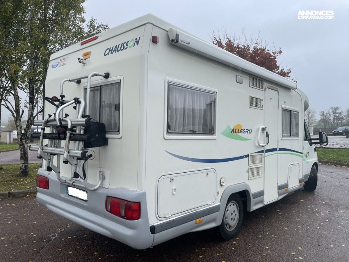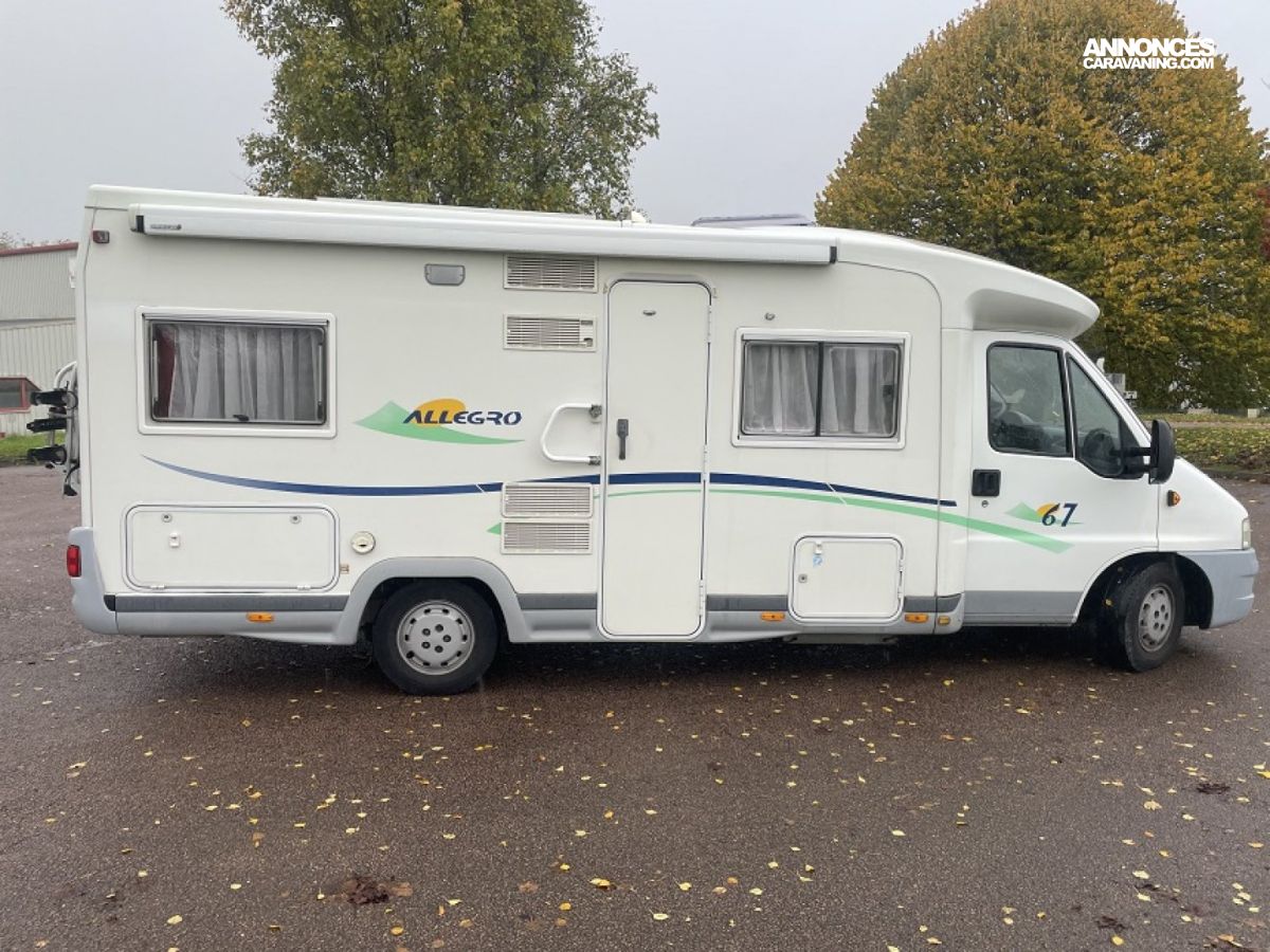 Joli camping-car profilé CHAUSSON Allegro 67 sur Fiat Ducato 2.8L, 5 places carte grise, moins de 7m, bien équipé (Porte 3 vélos, Store, Panneau solaire, caméra de recul…) avec lit à la française.