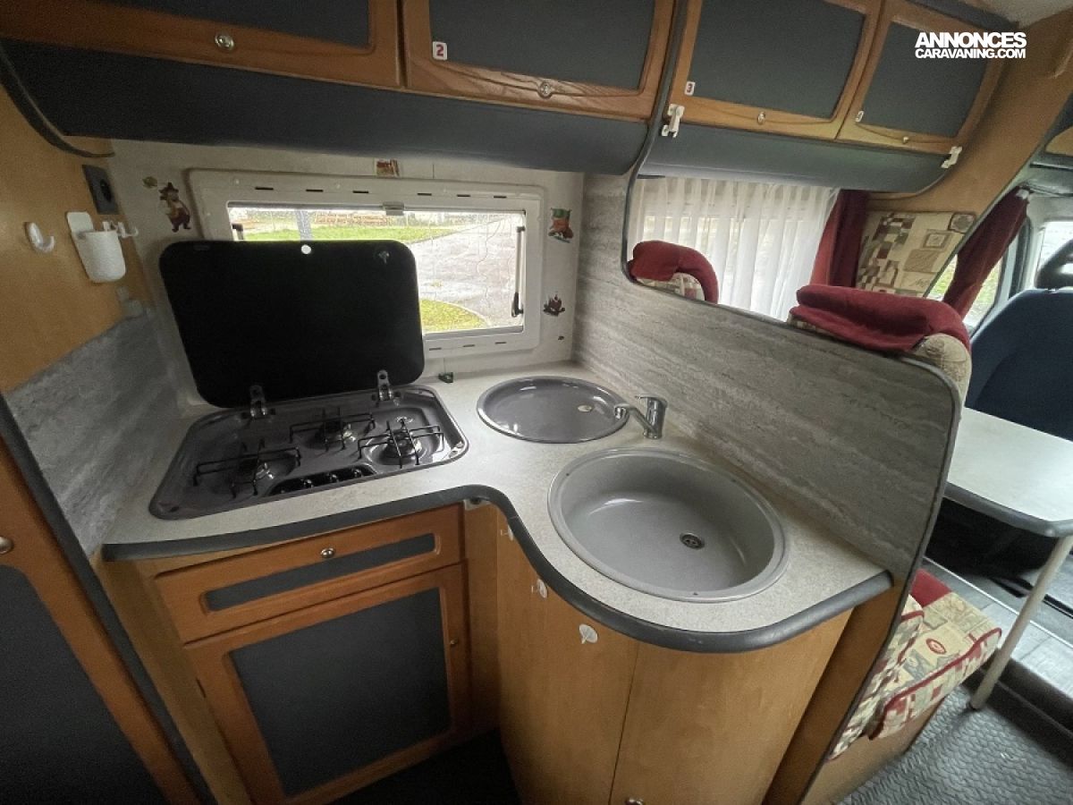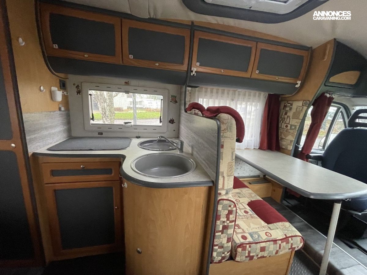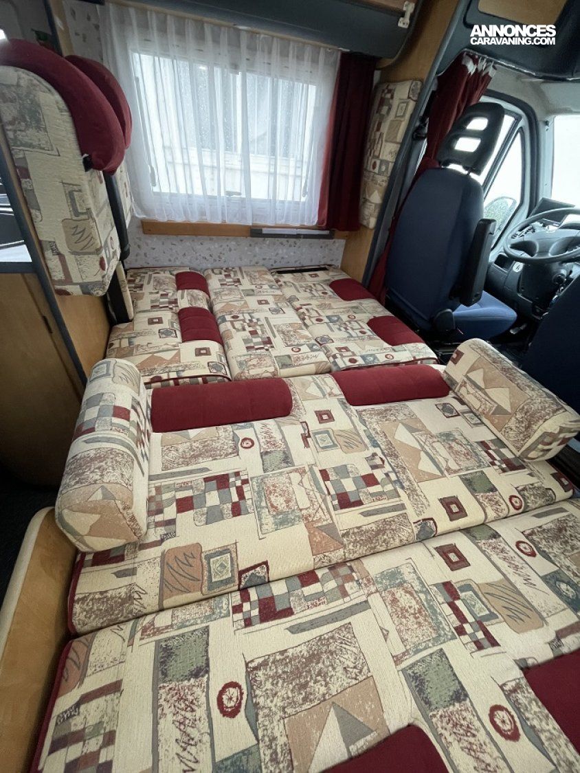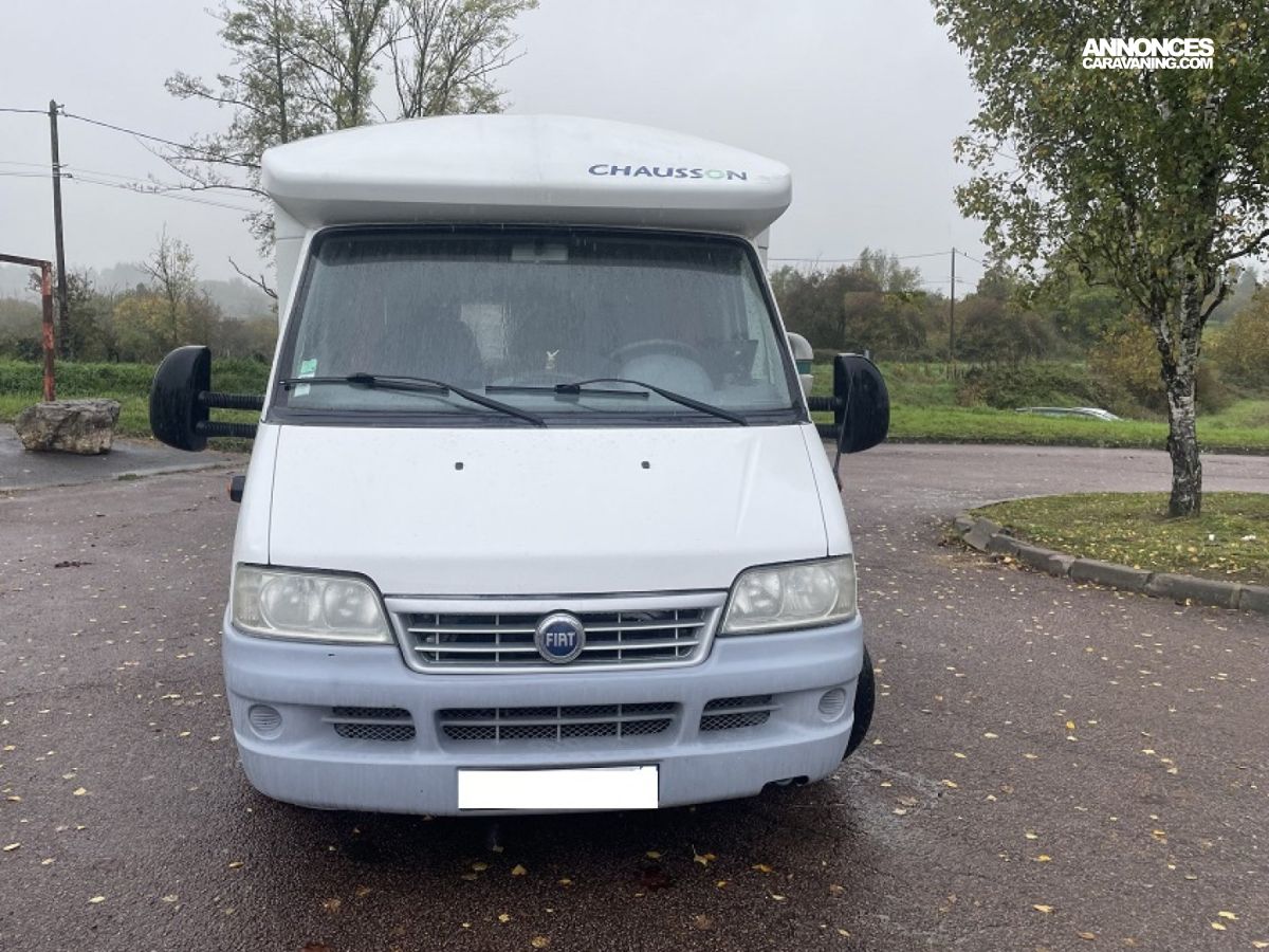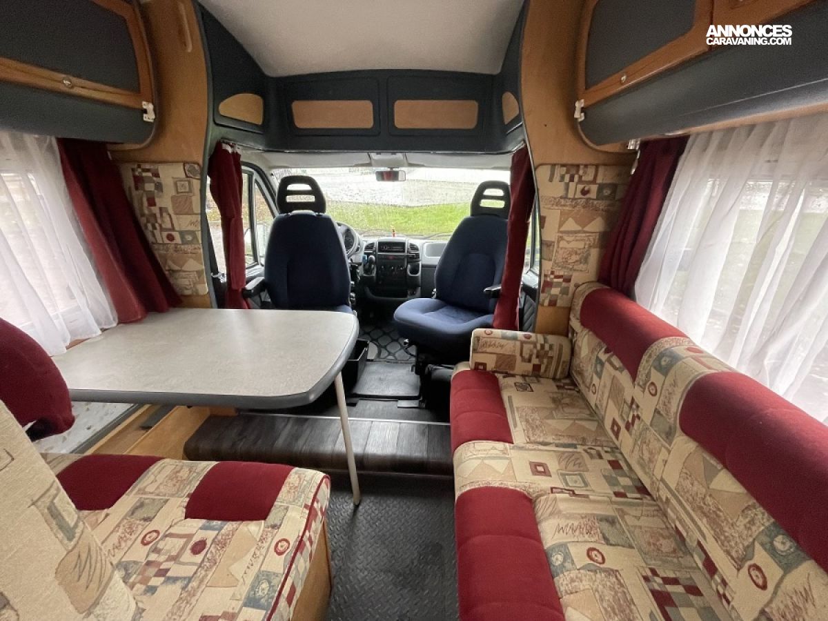 Joli camping-car profilé CHAUSSON Allegro 67 sur Fiat Ducato 2.8L, 5 places carte grise, moins de 7m, bien équipé (Porte 3 vélos, Store, Panneau solaire, caméra de recul…) avec lit à la française.