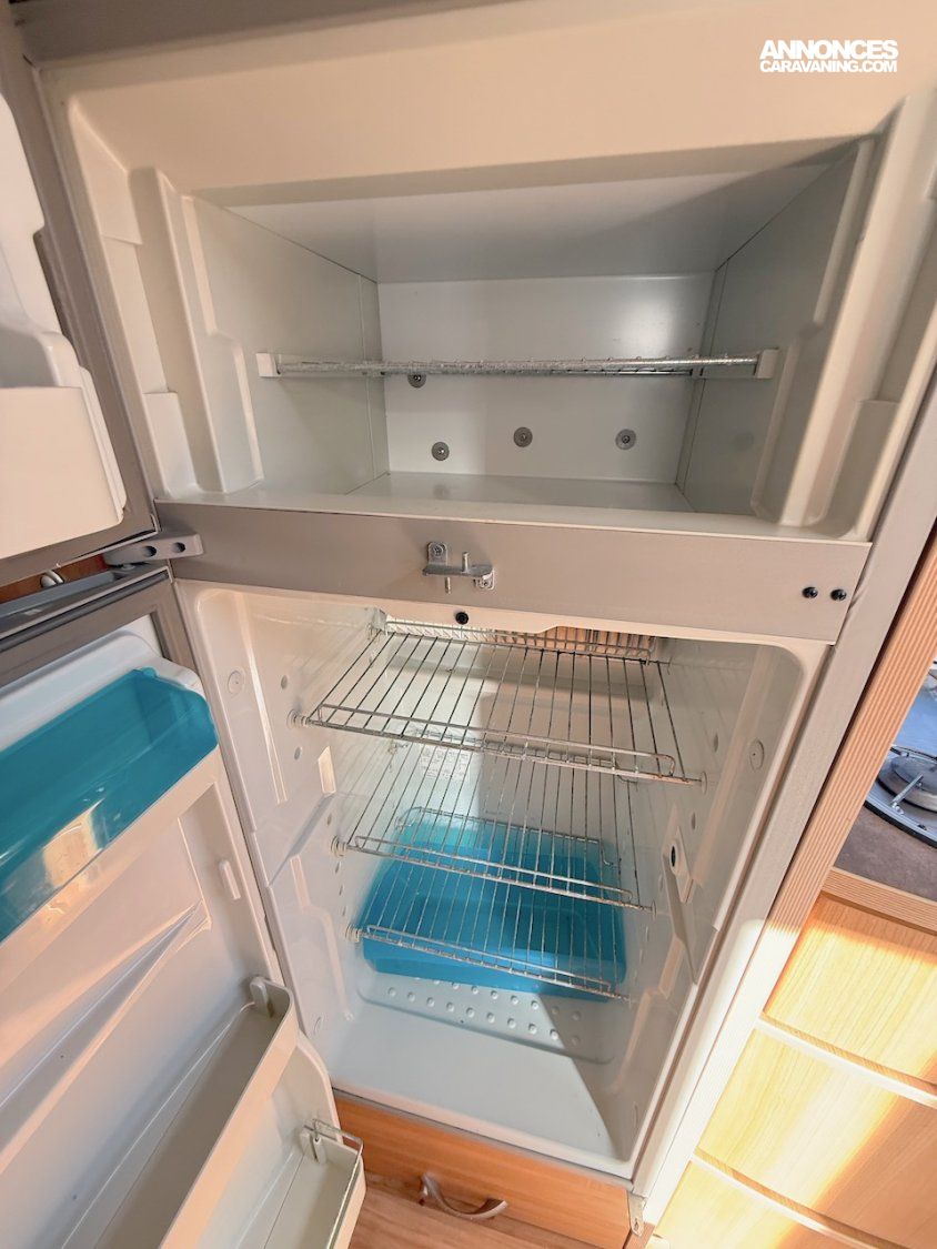 La cuisine en L est fonctionnelle et équipée d’un grand réfrigérateur de 145 L, d'une hotte, ainsi que d'un four.