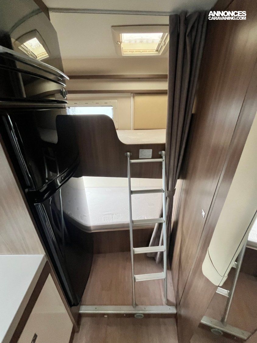 A l’arrière se trouve des Lits superposés dans le sens de la largeur pour un gain de place maximal