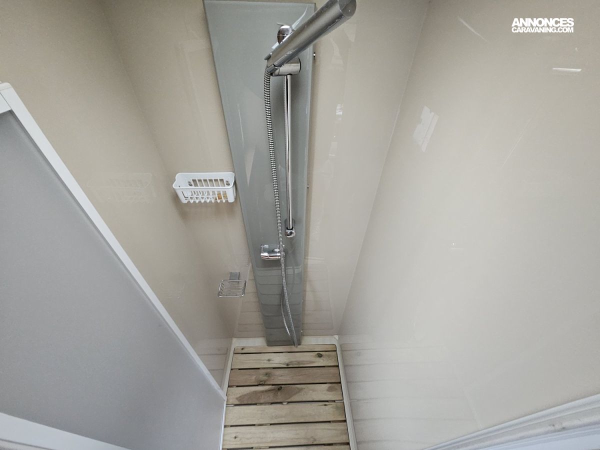 La salle de bain transversale arrière propose une maxi douche séparée.