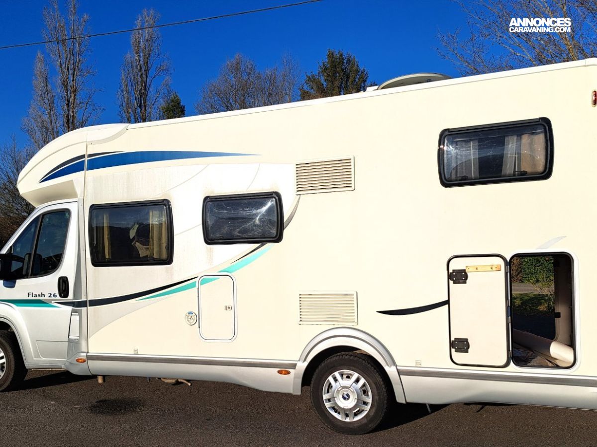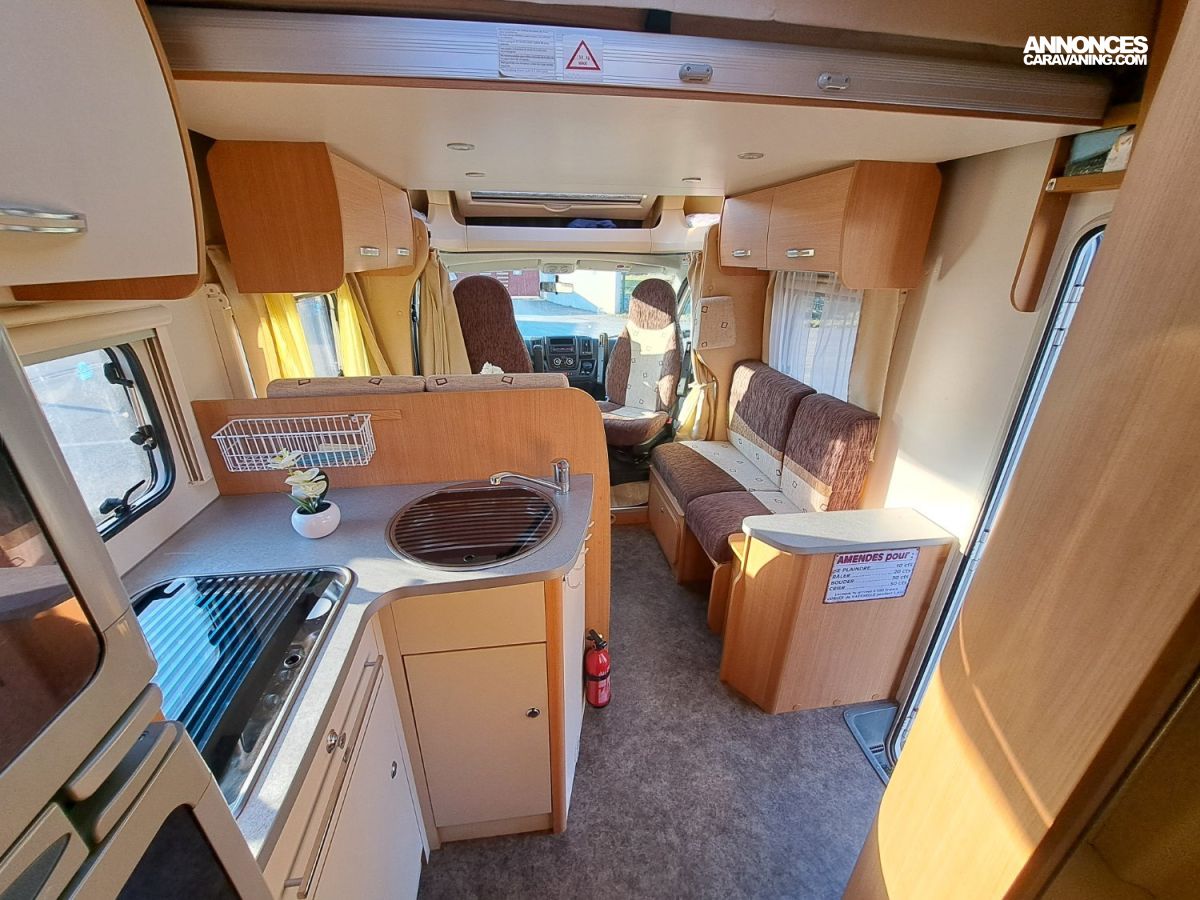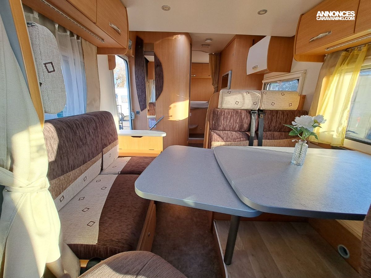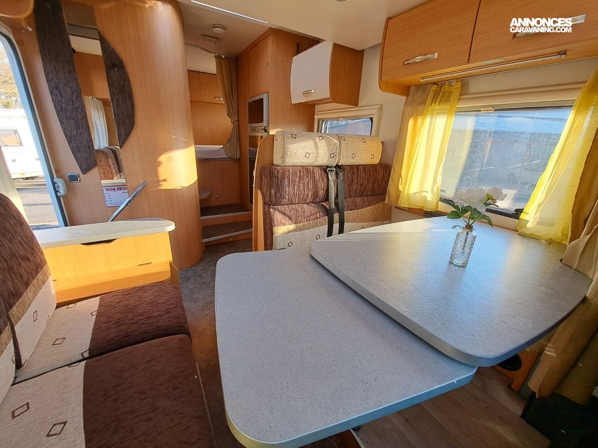 Couchage : Lit dinette (215 x 110 cm et x cm), Lit permanent arrière transversal (204 x 138 cm), Lit de pavillon (191 x 140 cm)