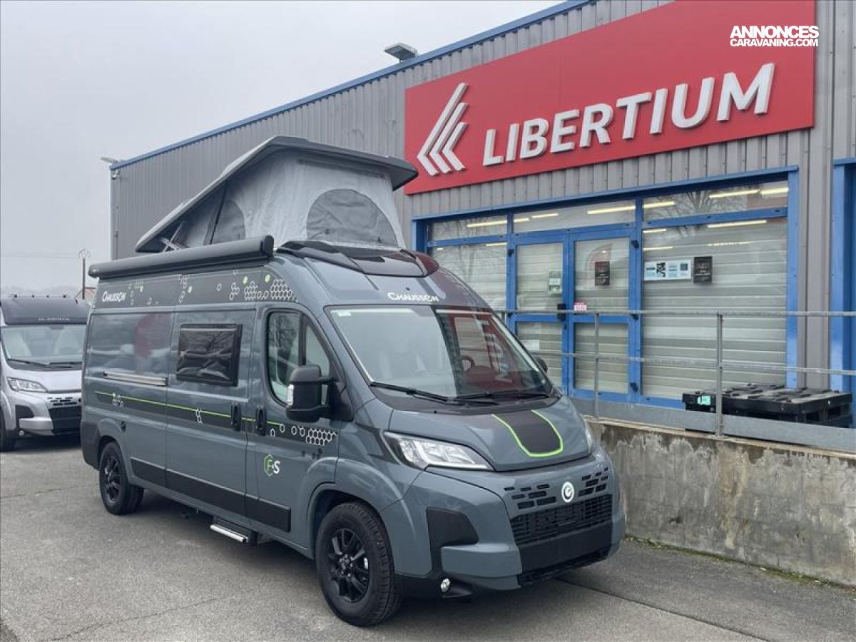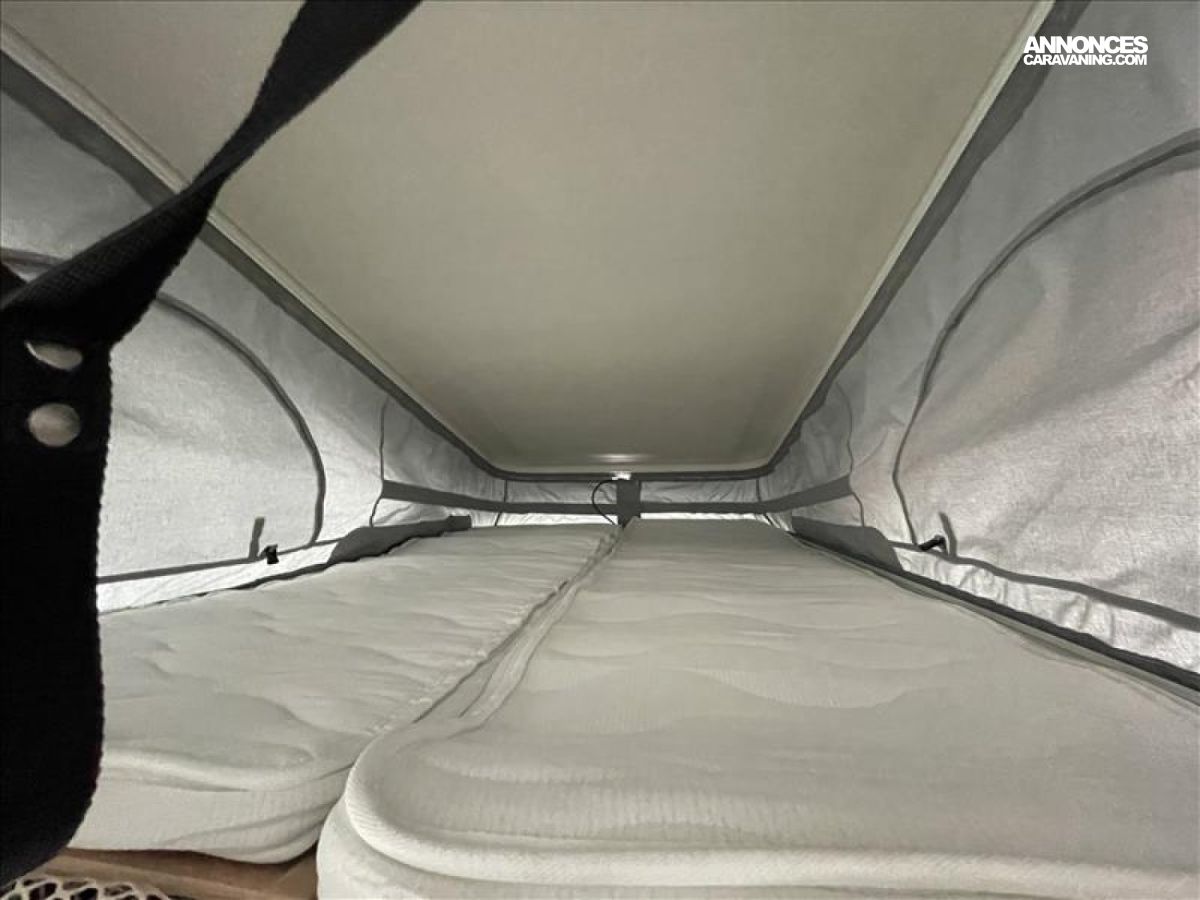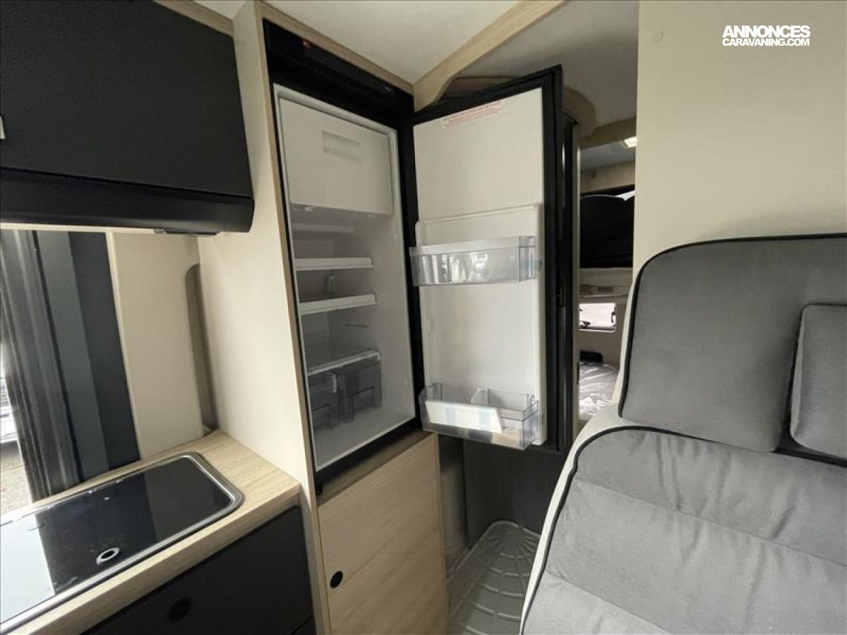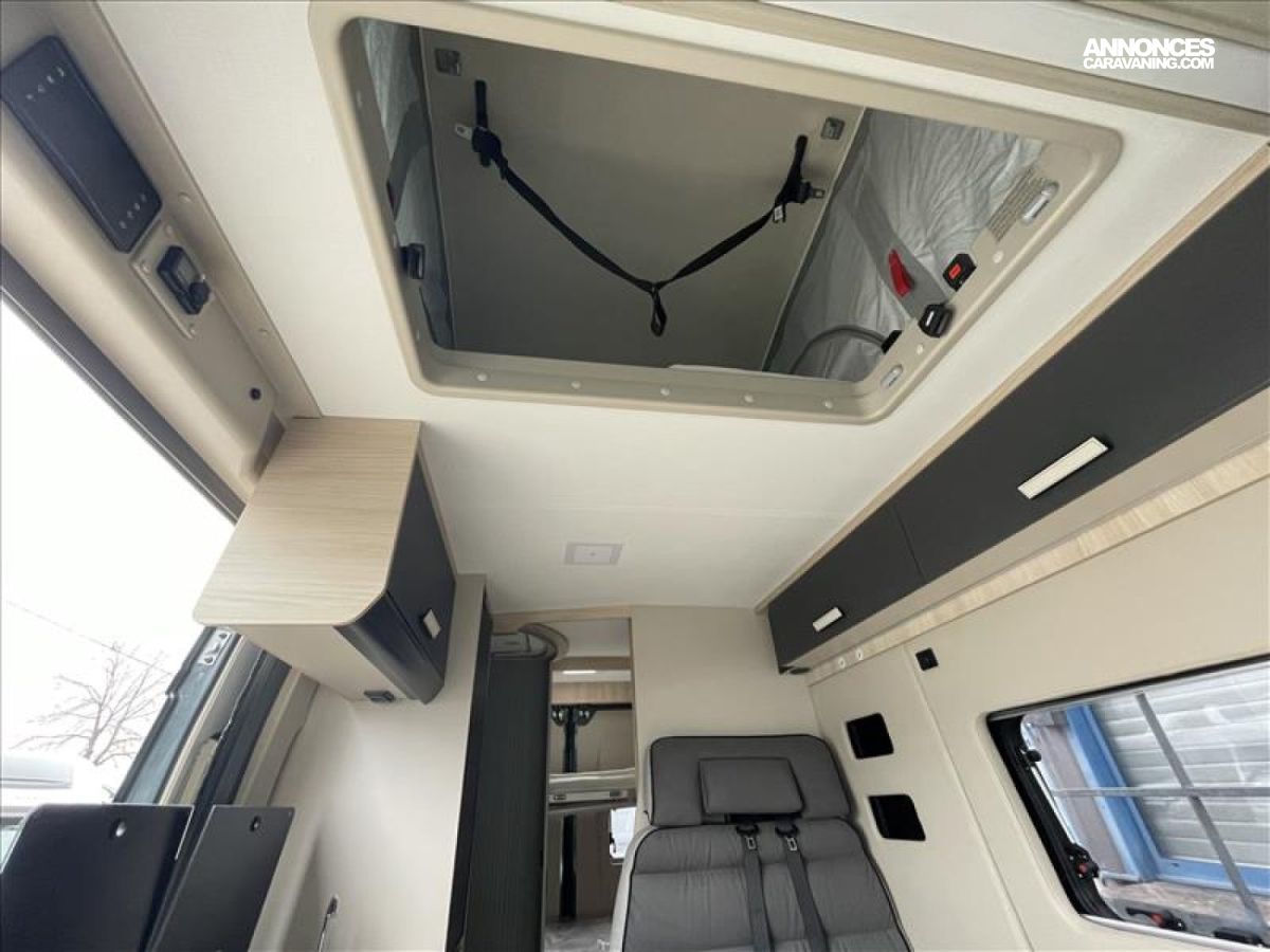 Gris Lanzarote, Climatisation manuelle de cabine, Sièges de cabine pivotants réglables en hauteur avec double, Housses de siège cabine assorties à l’ambiance cellule, TOIT RELEVABLE POP UP, Rétroviseurs électriques dégivrants, Régulateur / limiteur de vitesse, Traction +, Hill Descent control, Eco pack FIAT : Stop&Start, alternateur intelligent, pompe à, Fenêtres double-vitrage avec combiné stores moustiquaire, Prises USB/USB-C, Pare-chocs avant peint, Jantes alliage 16’’ noires, Feux antibrouillard, Pré-équipement TV, Chauffage sur carburant utilisable en roulant, Baies arrières ouvrantes, Extension table dinette, Marchepied électrique, Isolation renforcée "VPS", Pack look :, - Volant en cuir, bouches d'aération chromées+ JA16 pouces, Chauffe eau GAZ